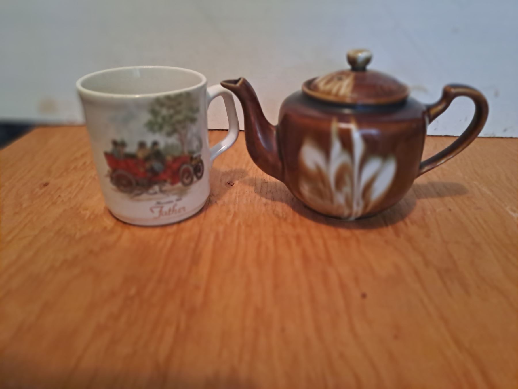 Vintage Cream Swirl Brown Glazed Tea Pot and Vintage Coffee Mug