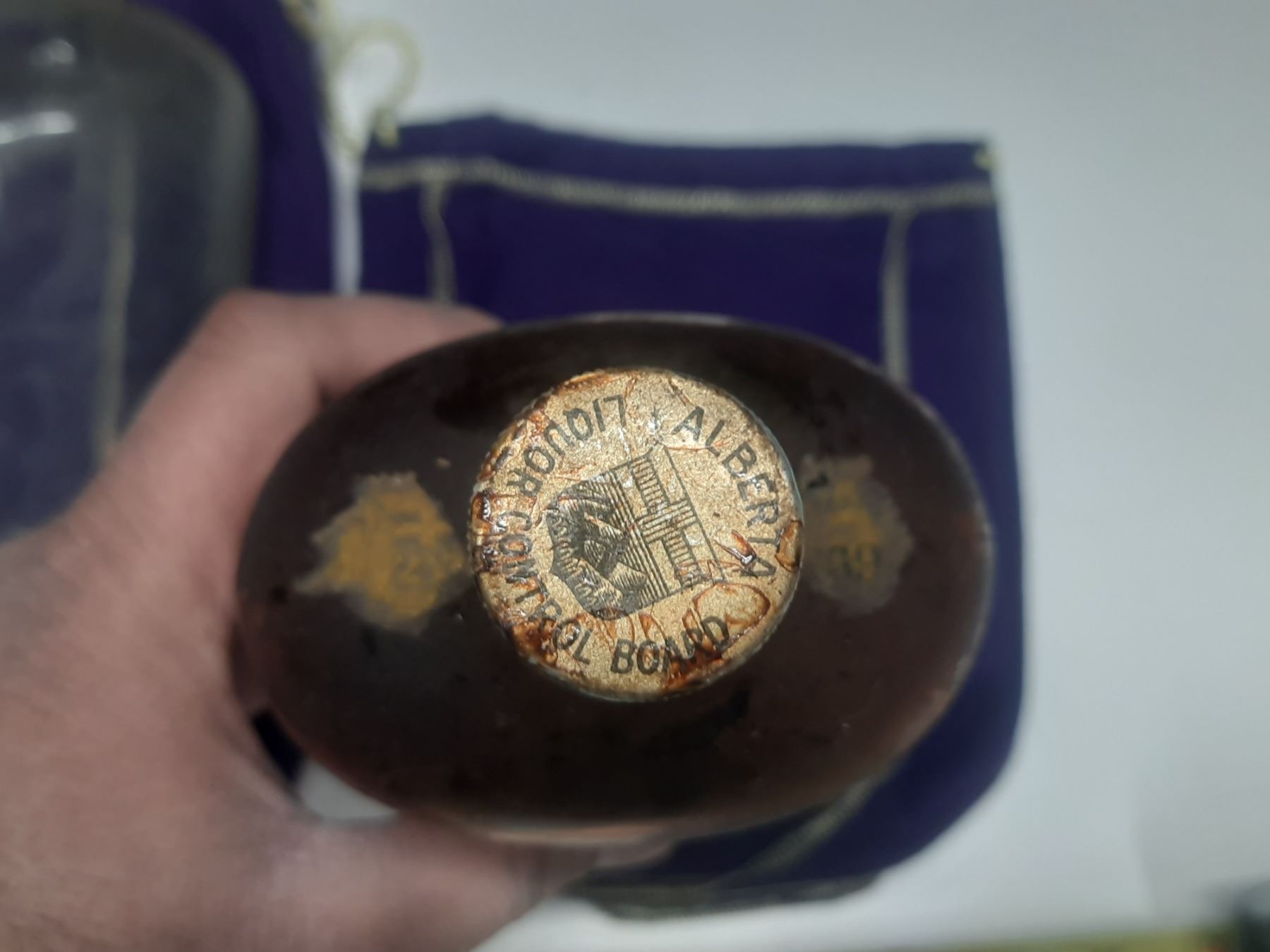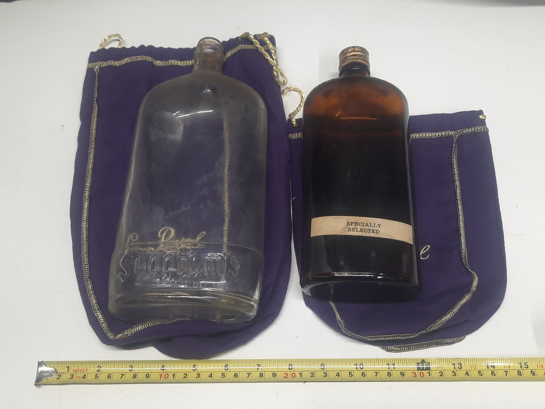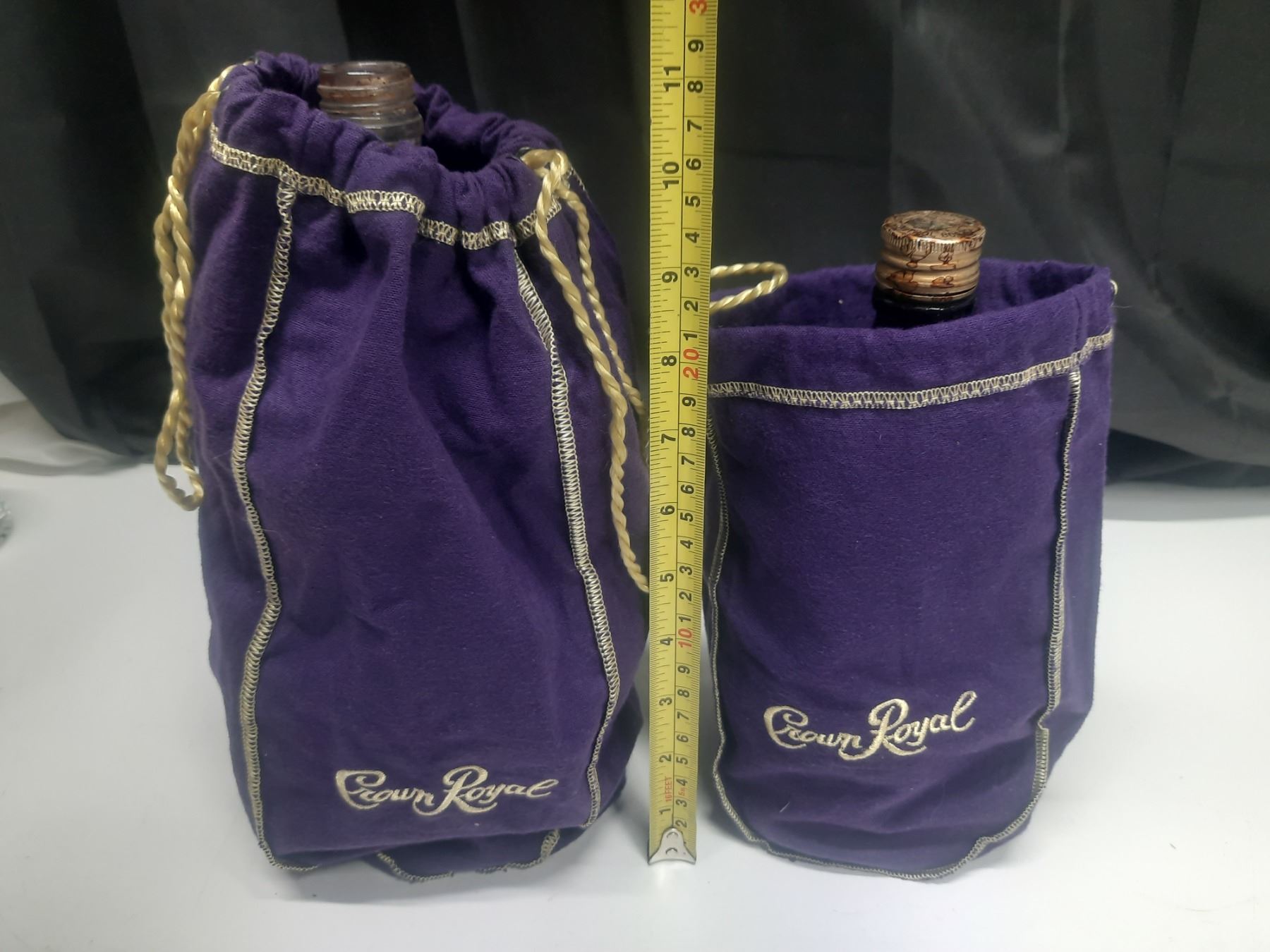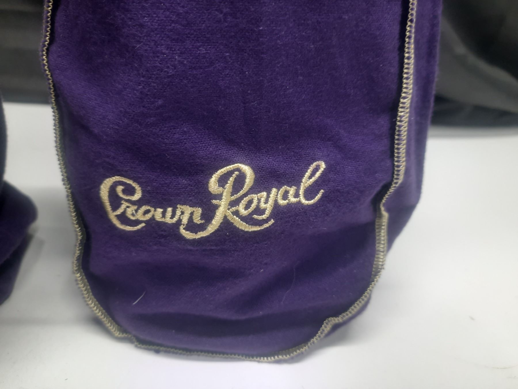 Vintage Crown Royal Whisky Bottle In Purple Crown Royal Bags.