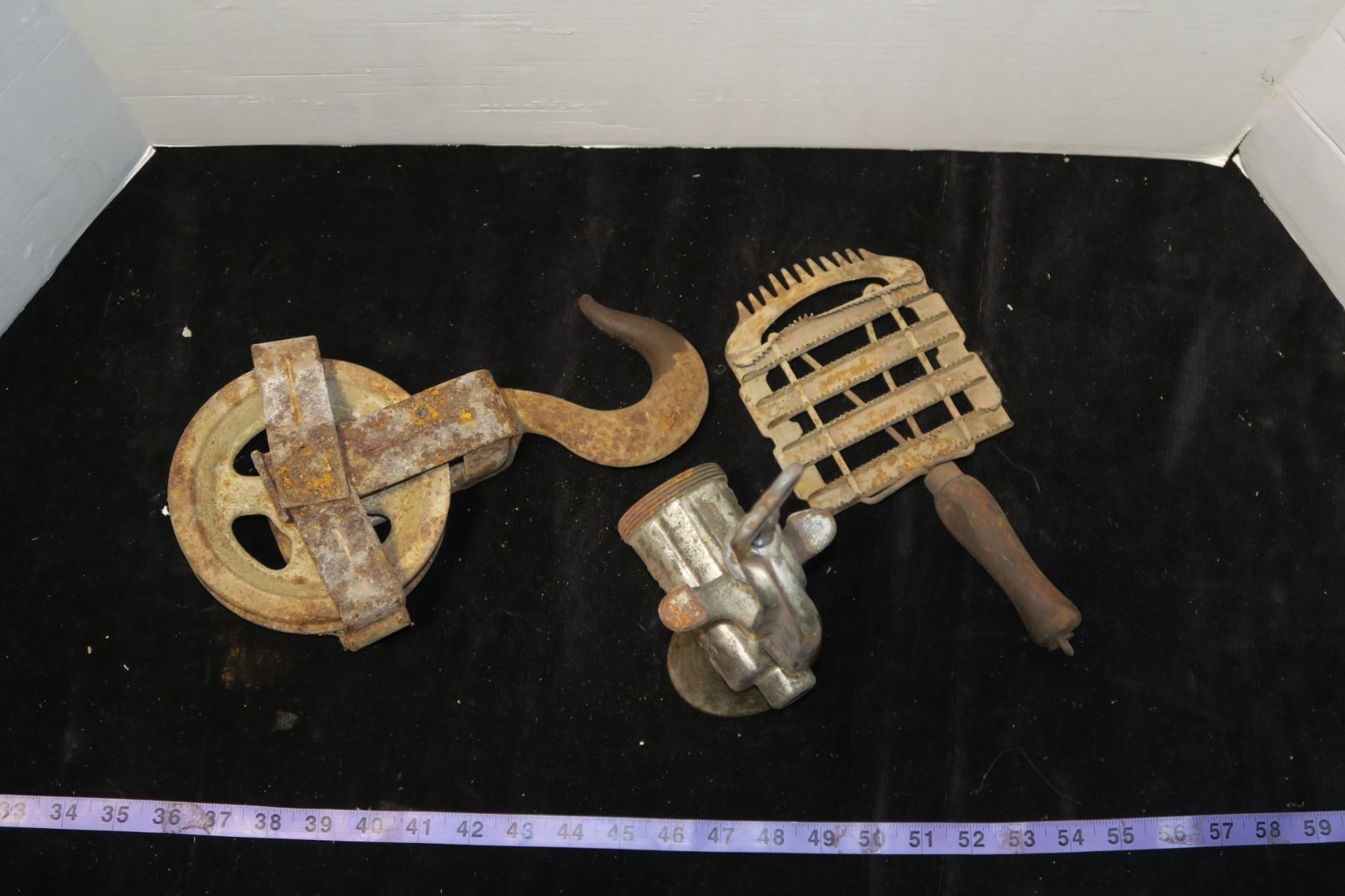 Vintage Curry Comb, Pulley, Meat Grinder Piece