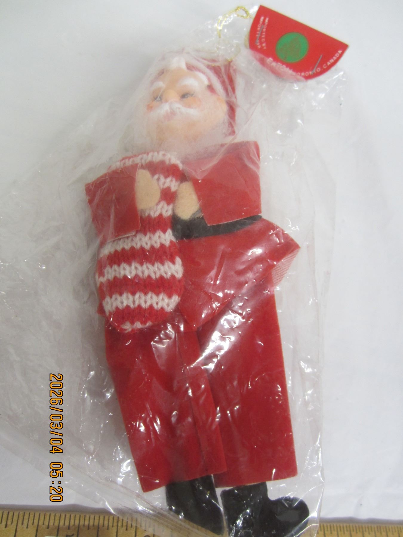 Vintage Eaton's Santa Christmas Tree Ornament Sealed in Original Package
