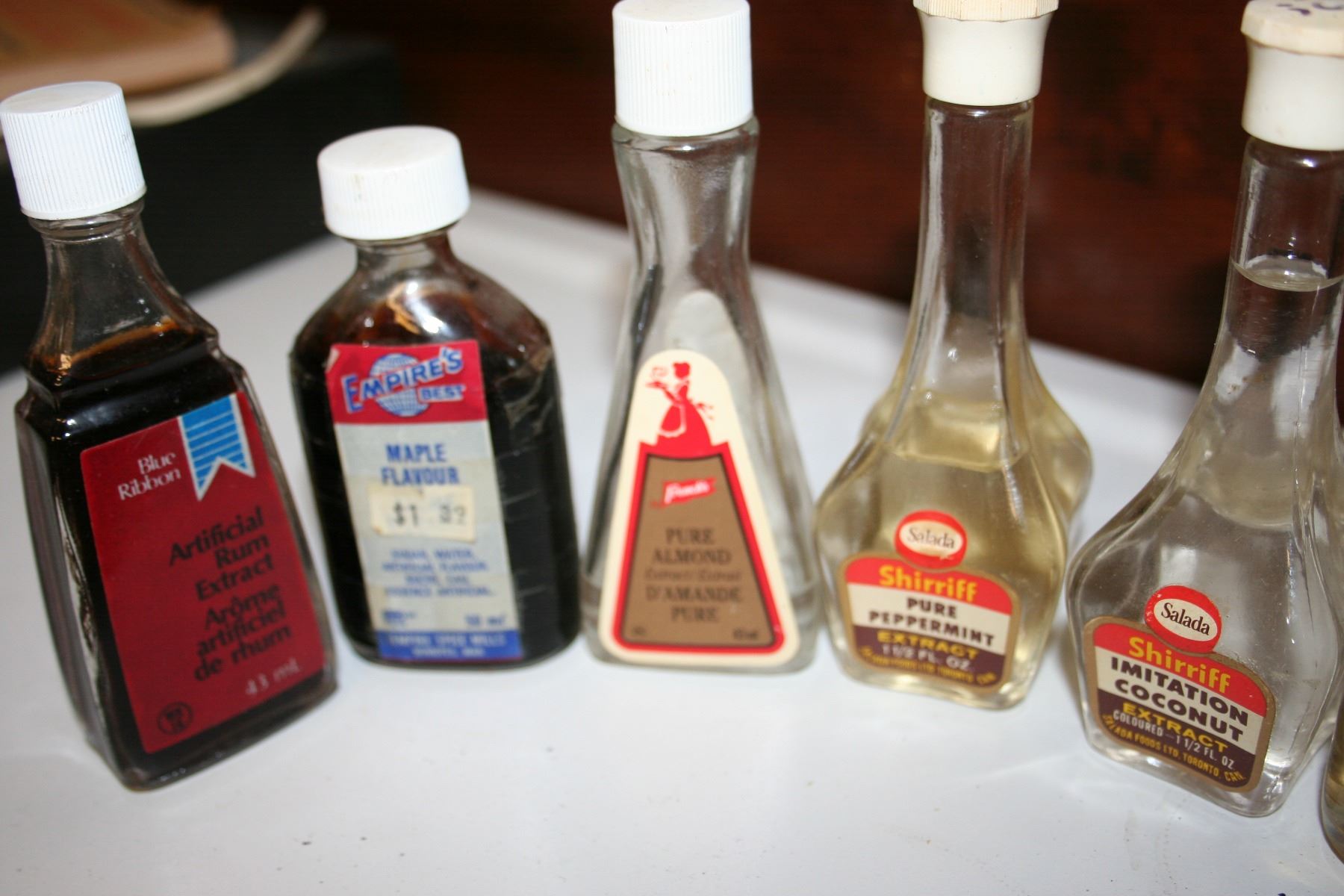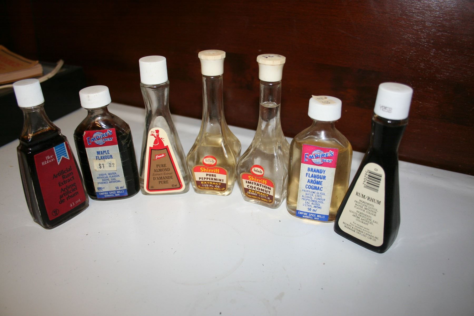 Vintage Empire's Brandy and Maple Flavour, Blue Ribbon Rum, French's Almond Extract, Salada Pepperm