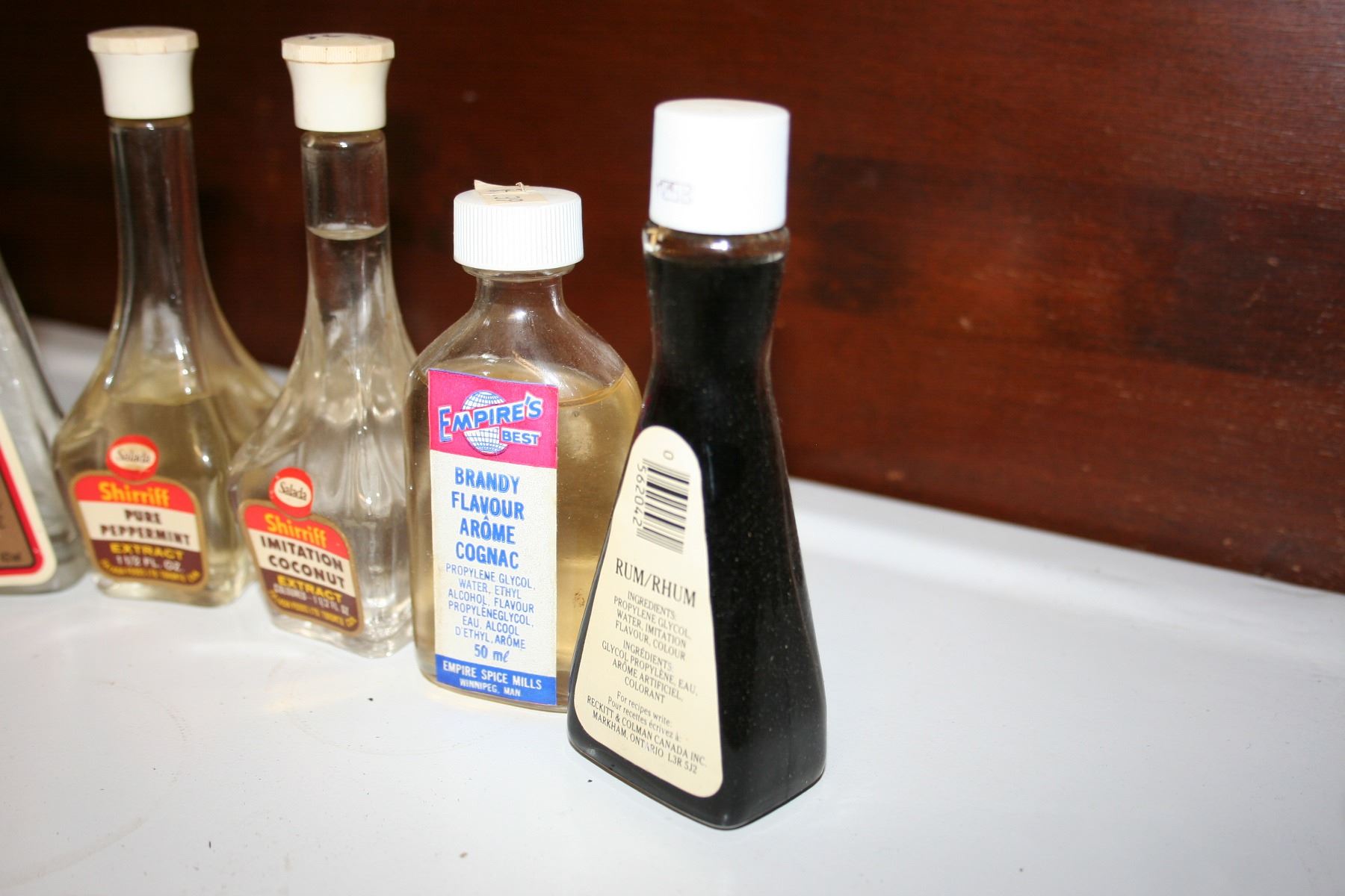 Vintage Empire's Brandy and Maple Flavour, Blue Ribbon Rum, French's Almond Extract, Salada Peppermint and coconut flavours