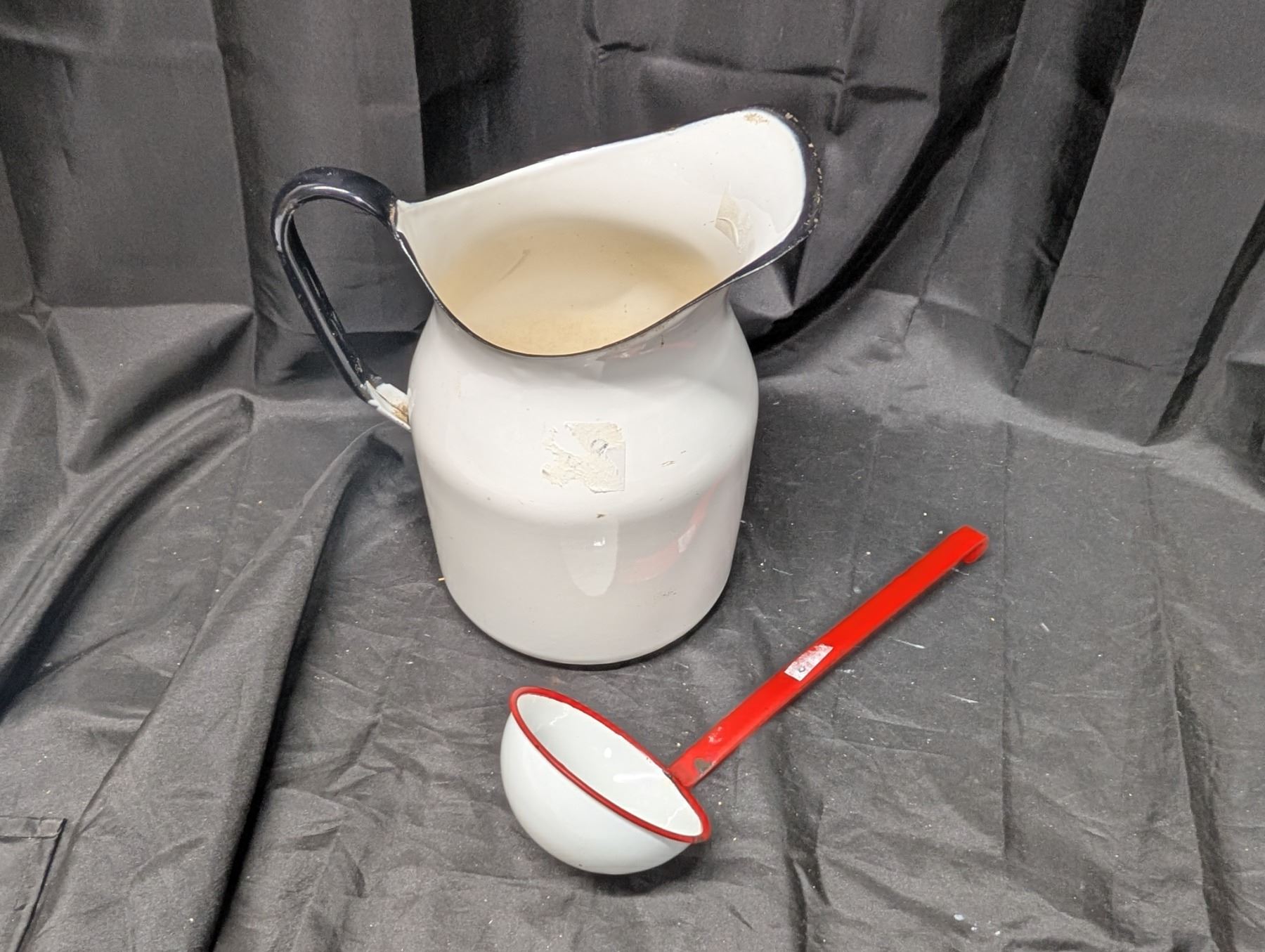 Vintage Enamel Jug ad ladle
