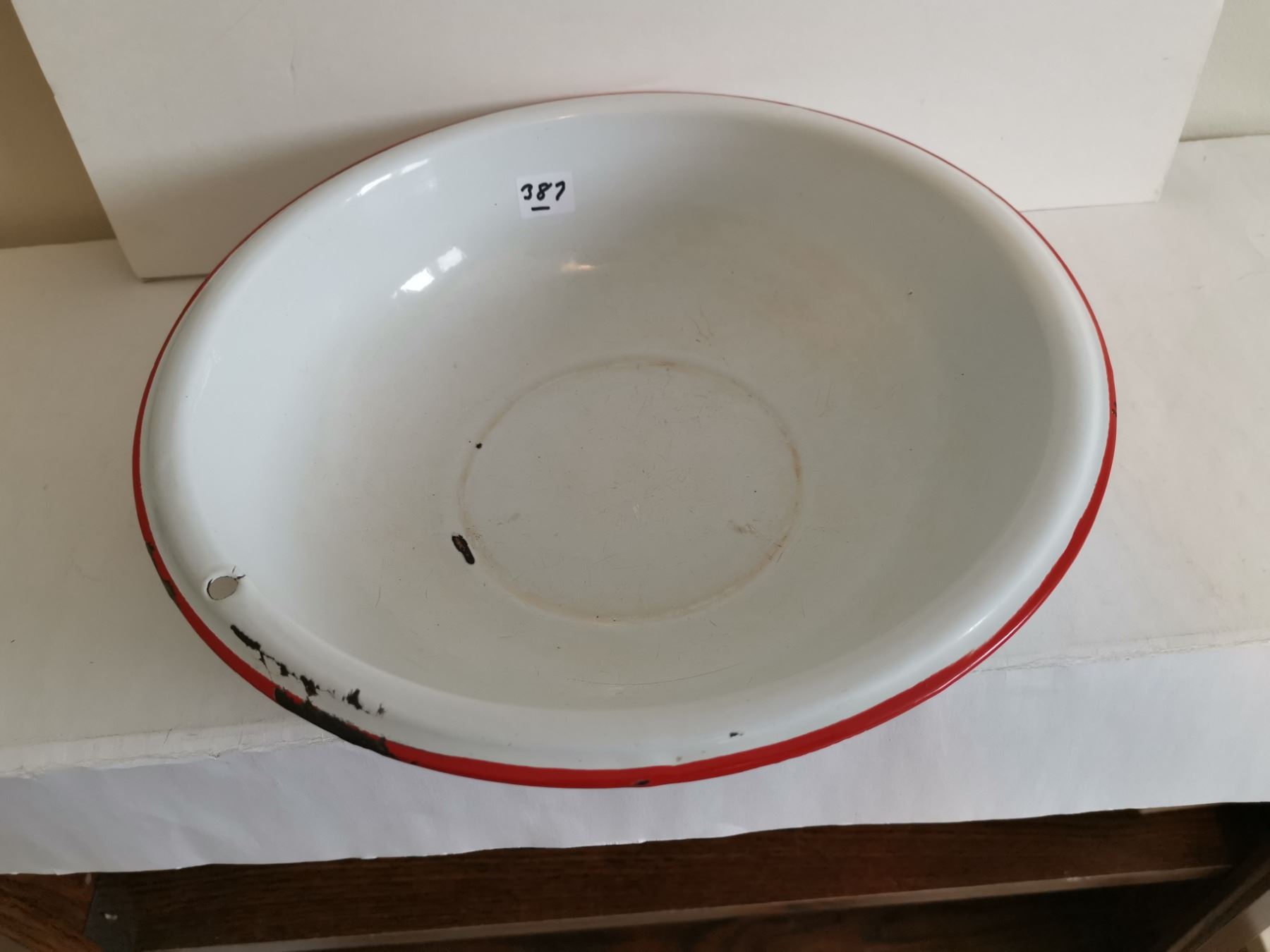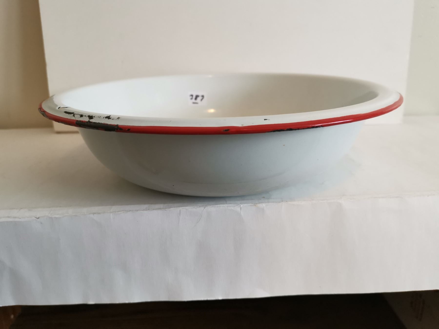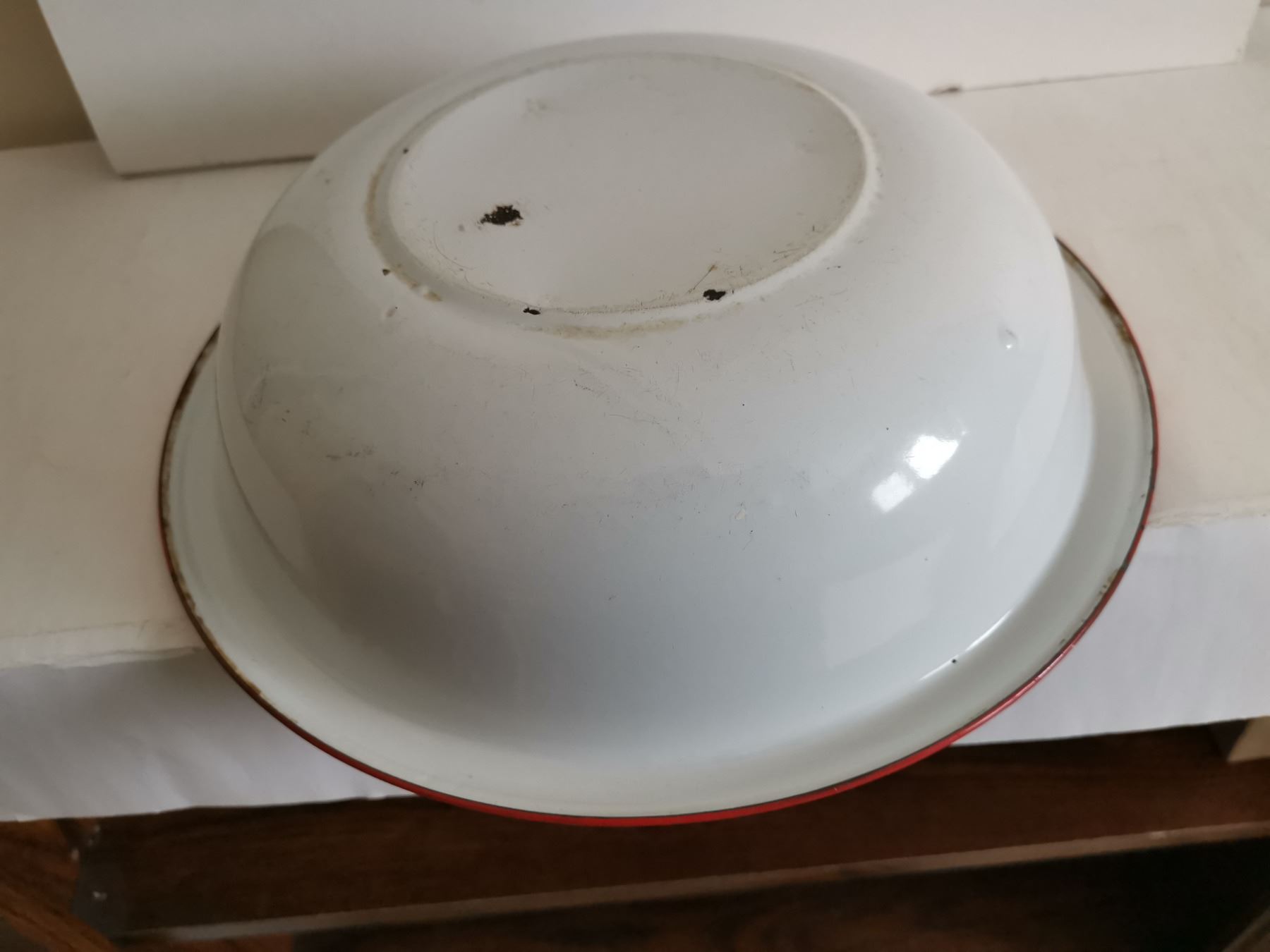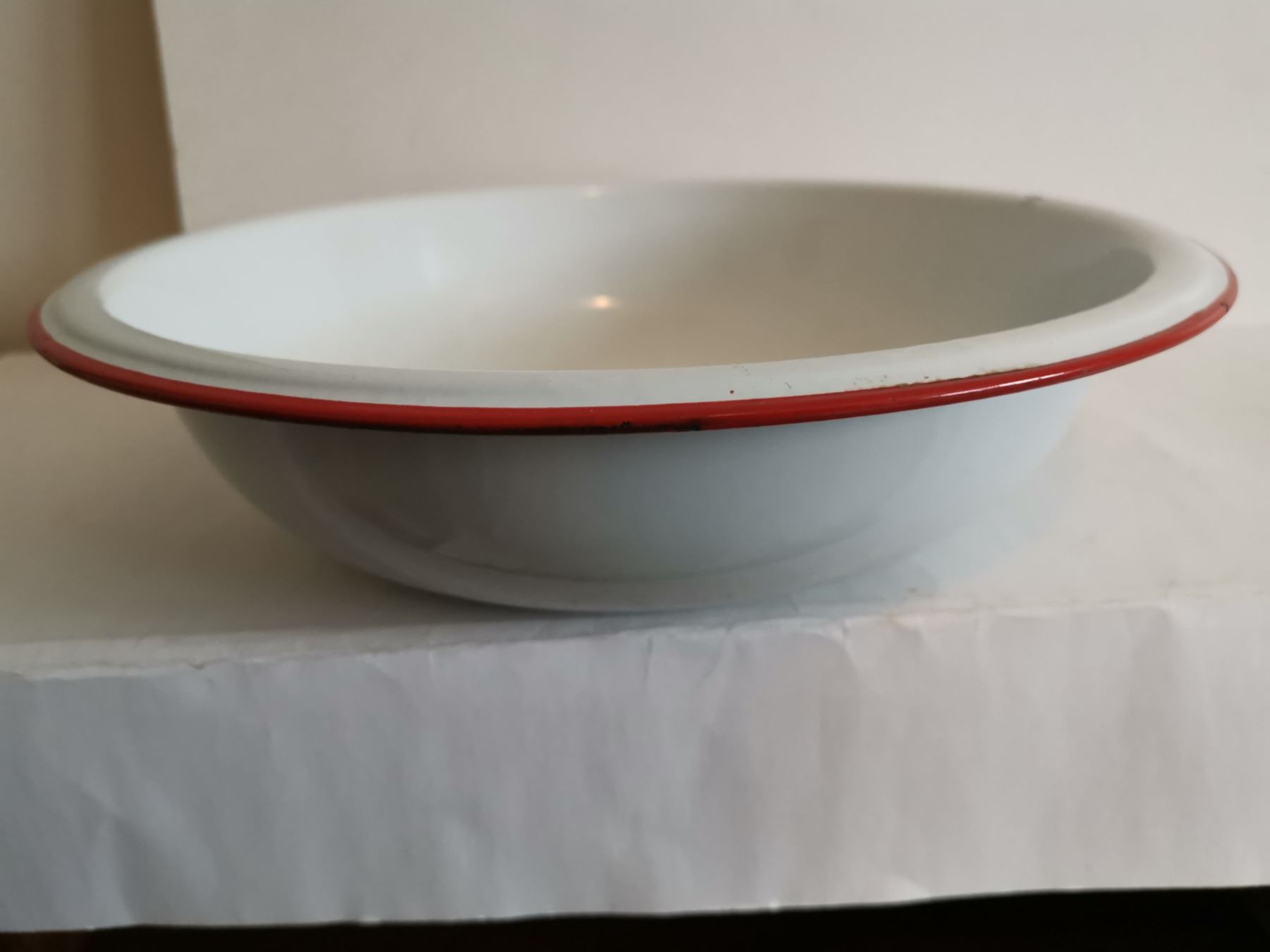 Vintage Enamelware Basin w/ Red Trim, 12.5”