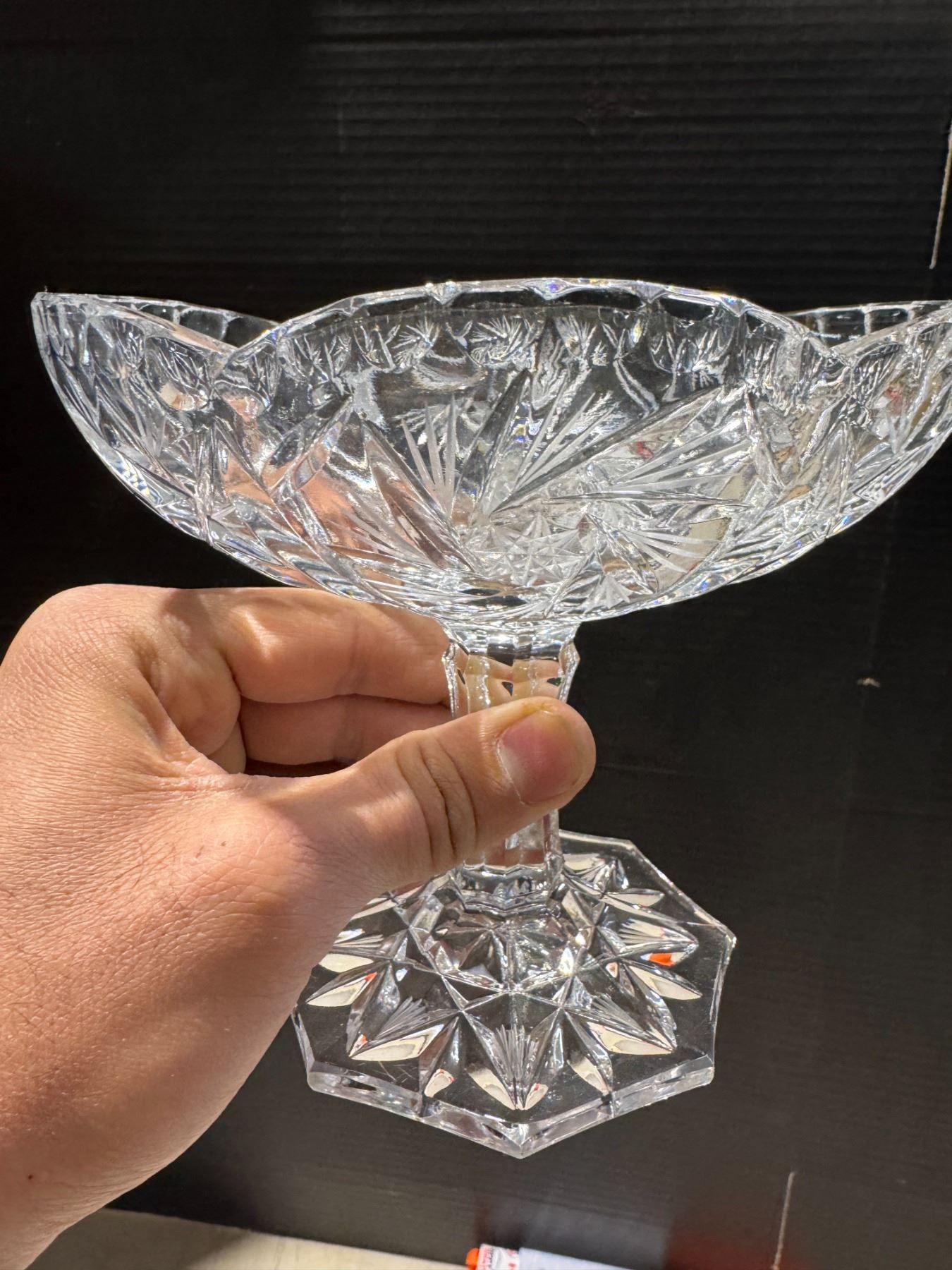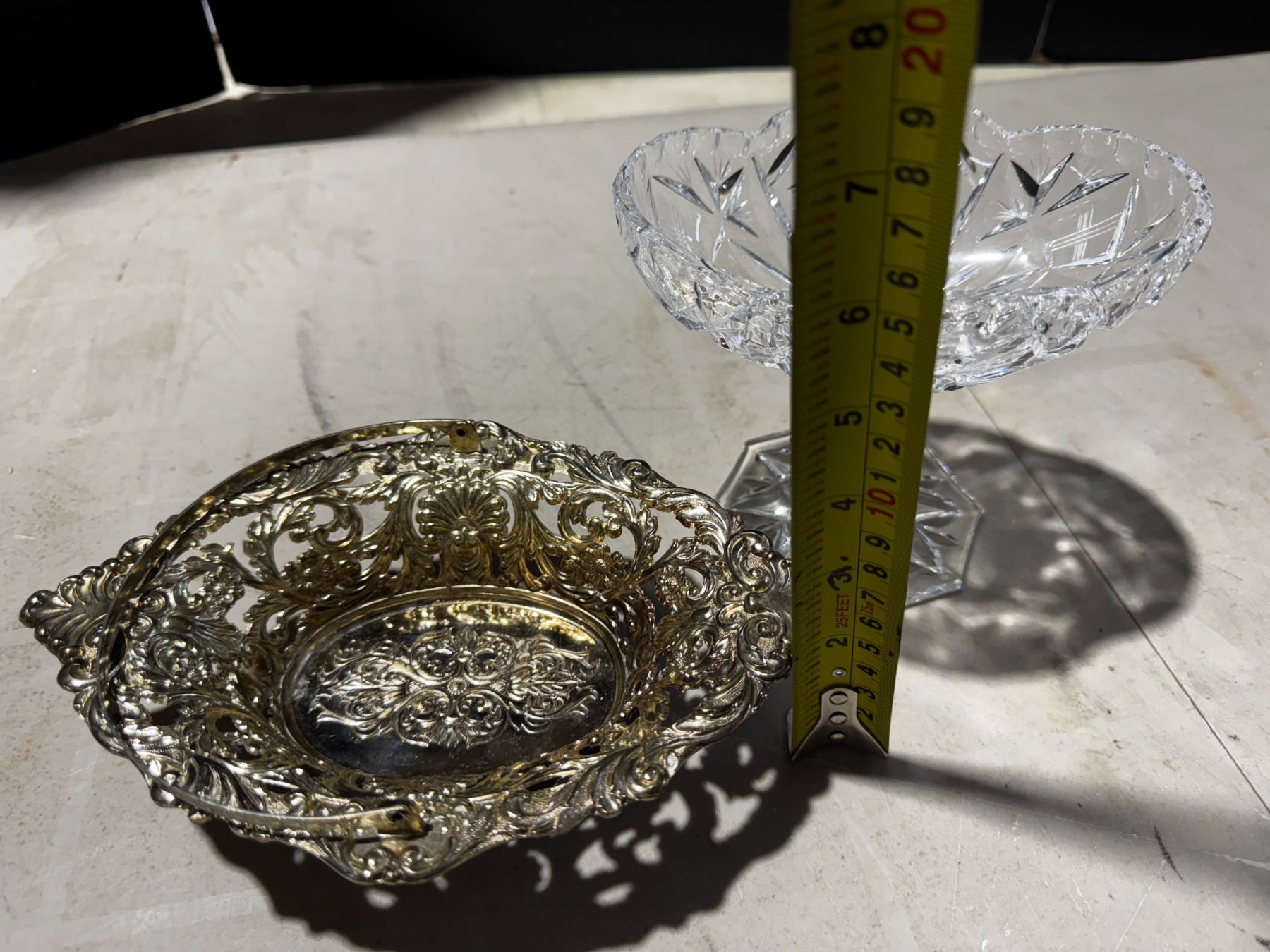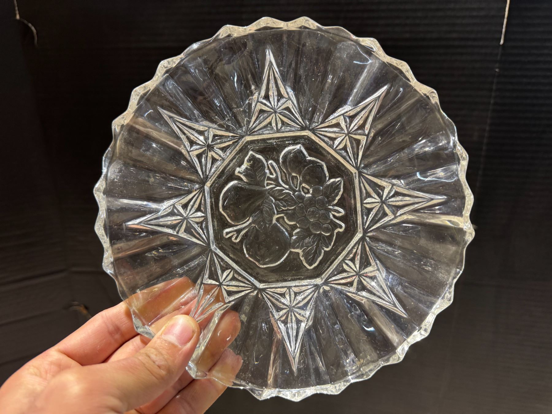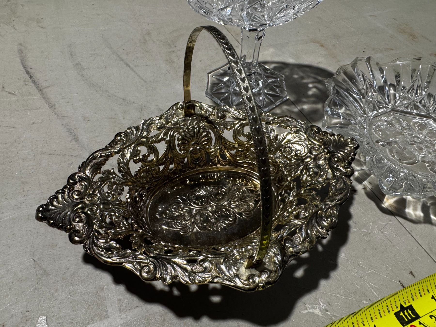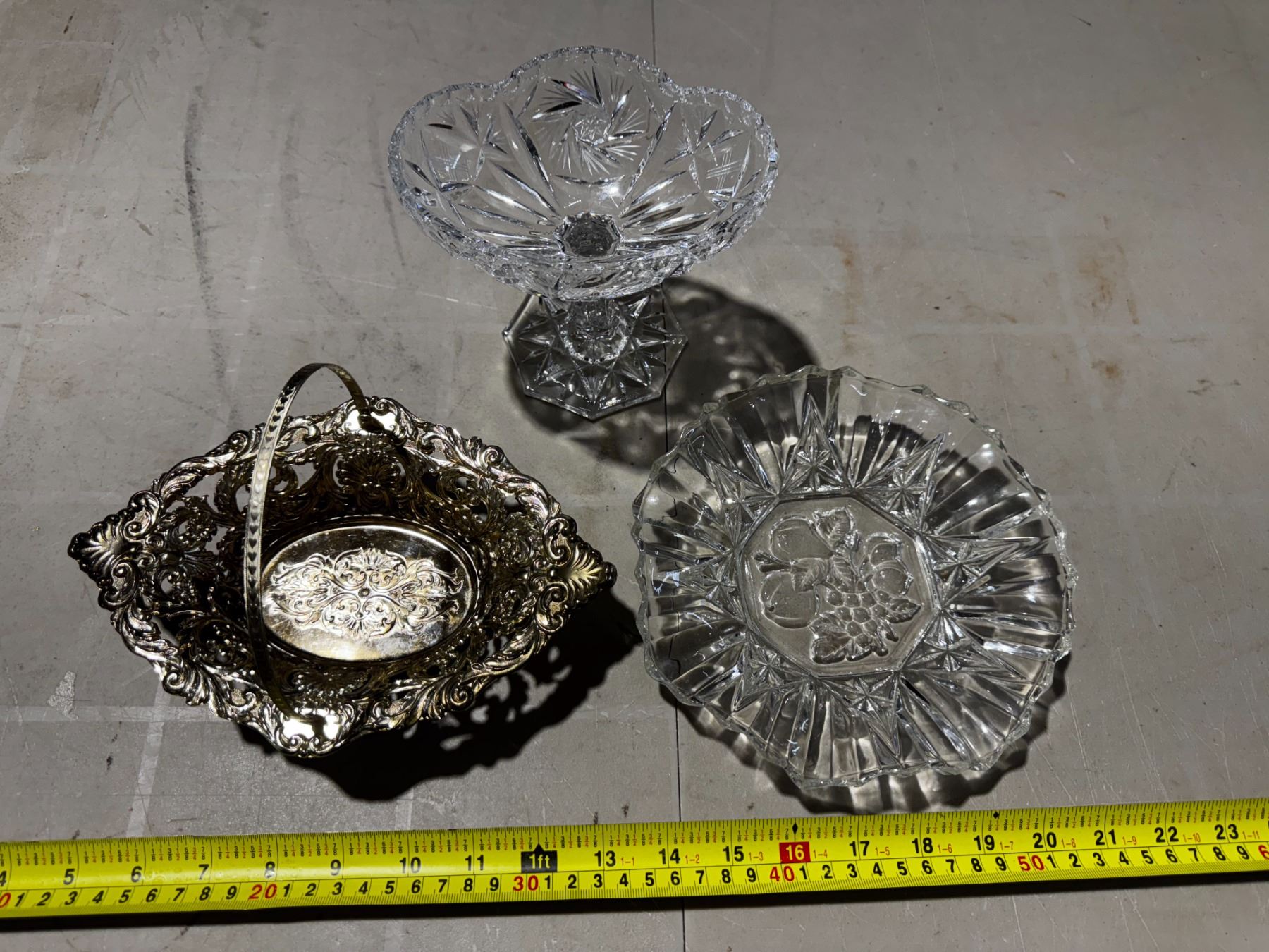 Vintage Federal Glass Pioneer Pattern Clear Glass Bowl, Pinwheel Crystal Candy Dish/Bowl and Silver Plated Small Basket (Non- Magnetic Property).