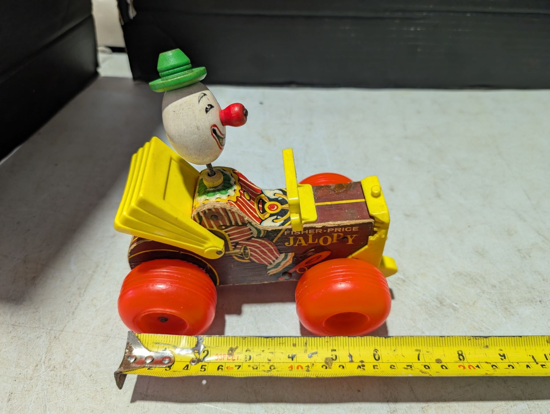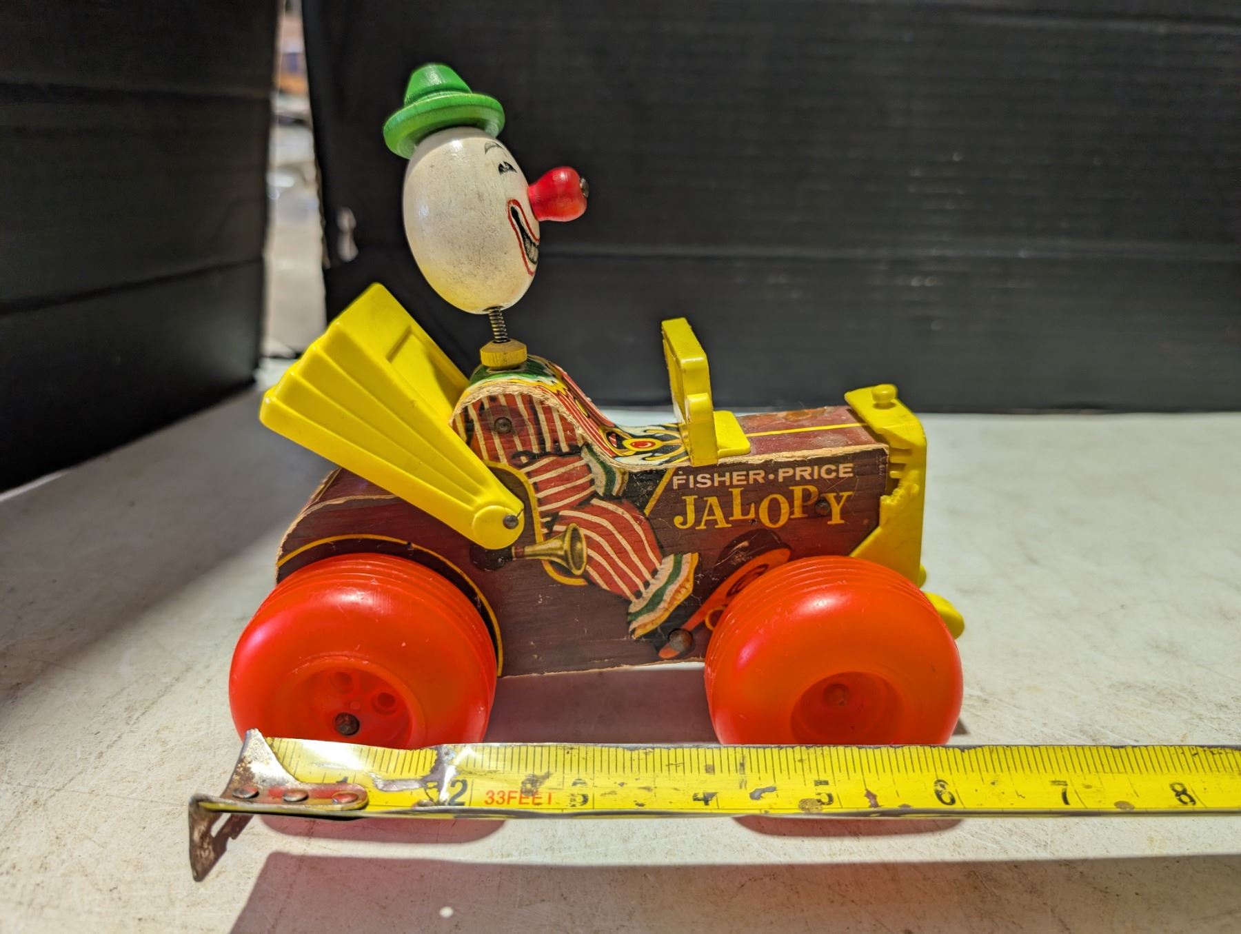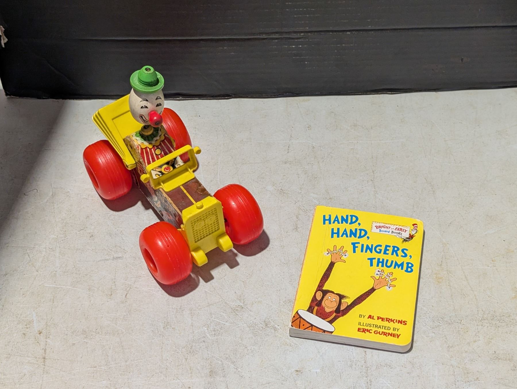 Vintage Fisher Price Wooden Bobble head car toy w/ Vintage Dr. Seuss Hard Cover Book
