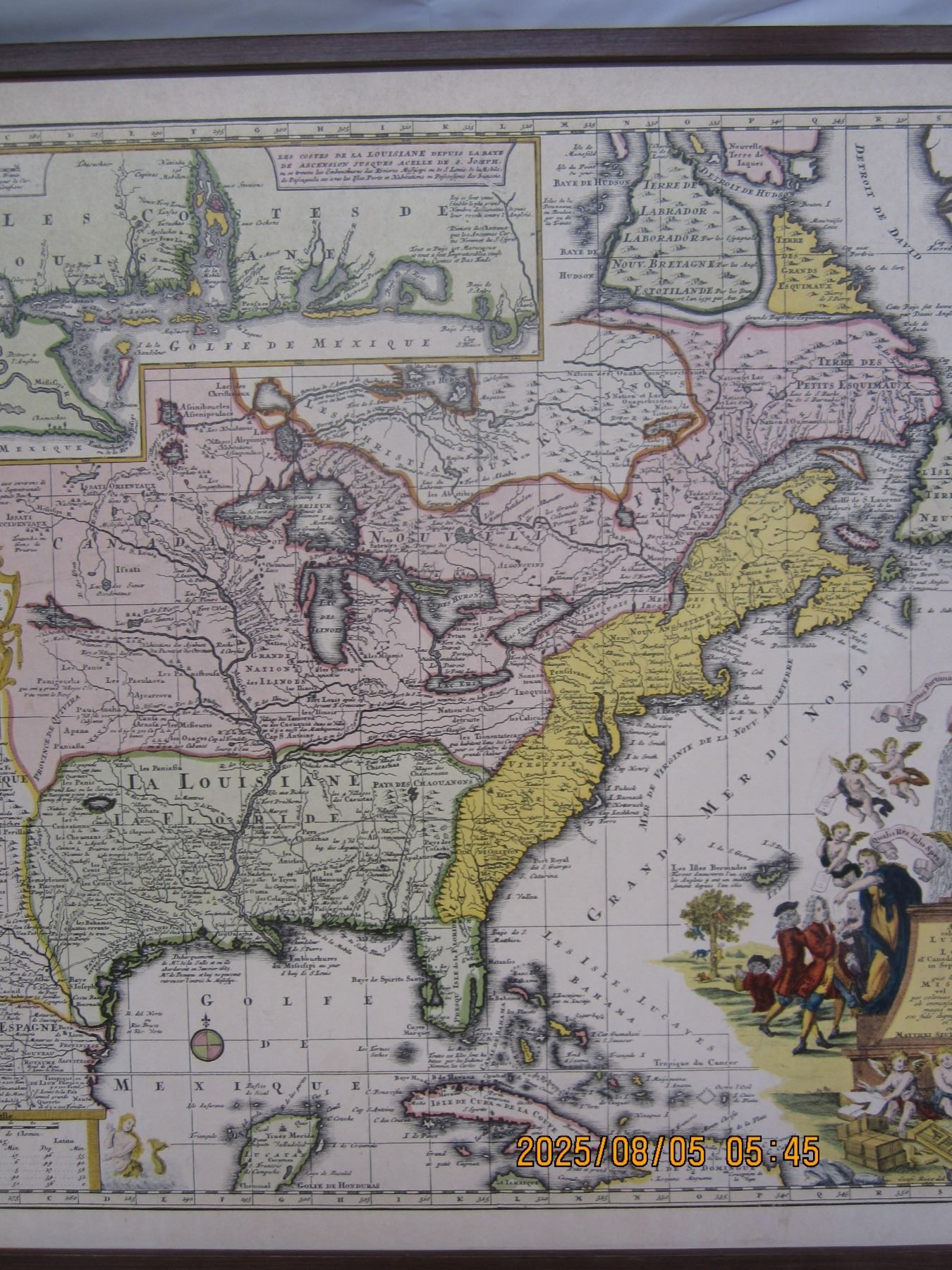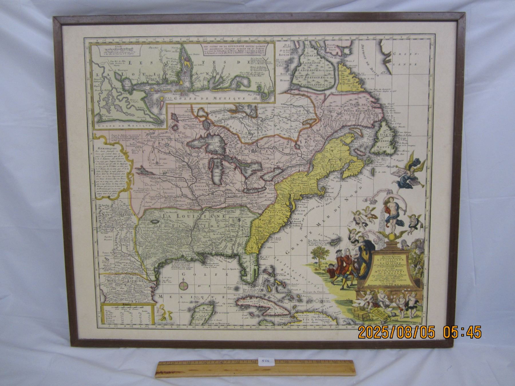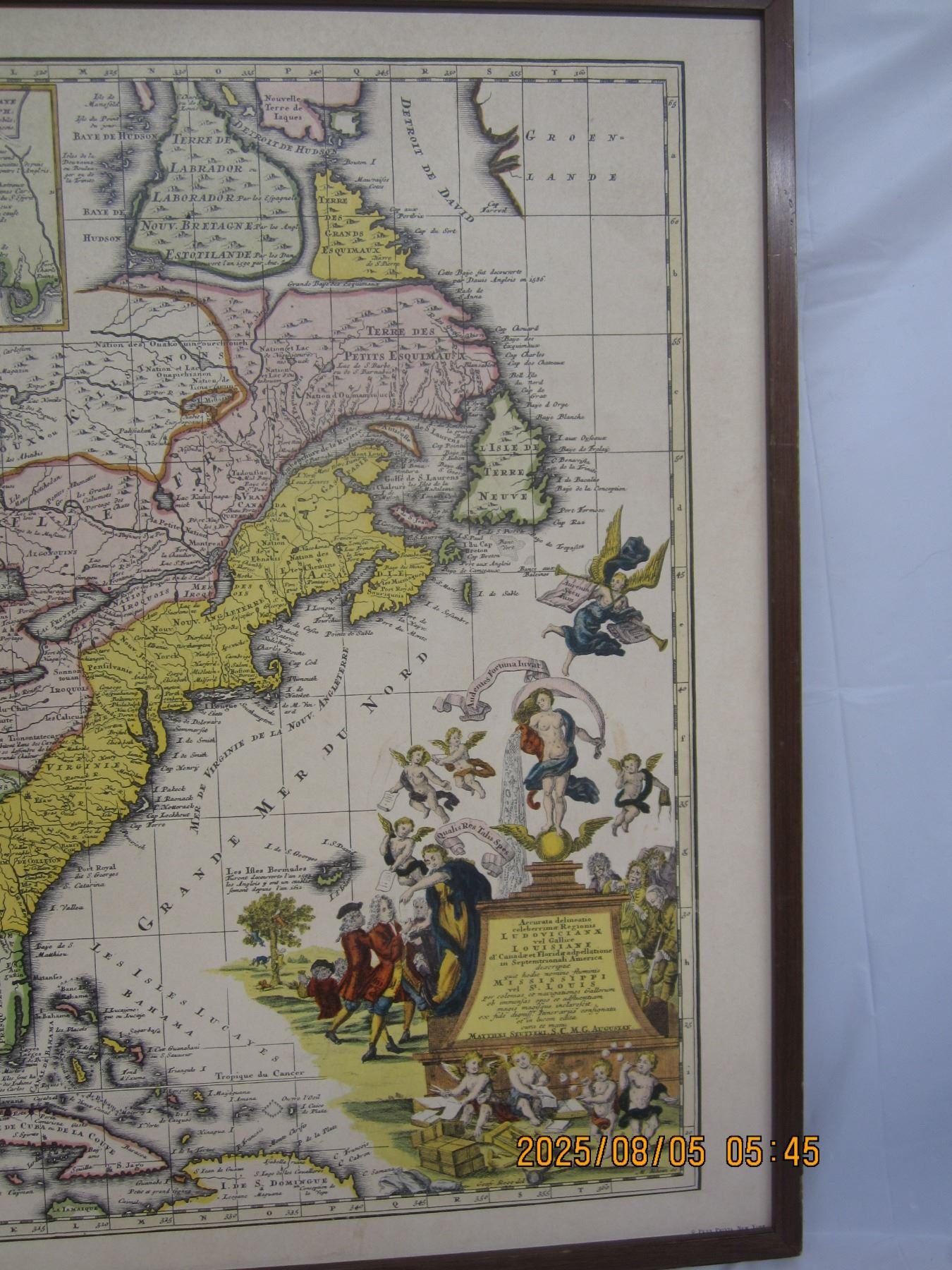 Vintage Framed Map of North America 1735 24 inches by 21 inches