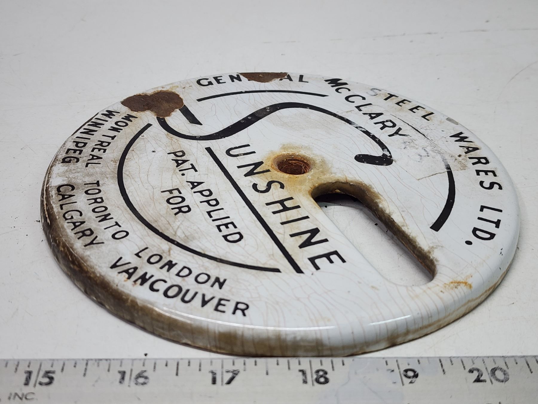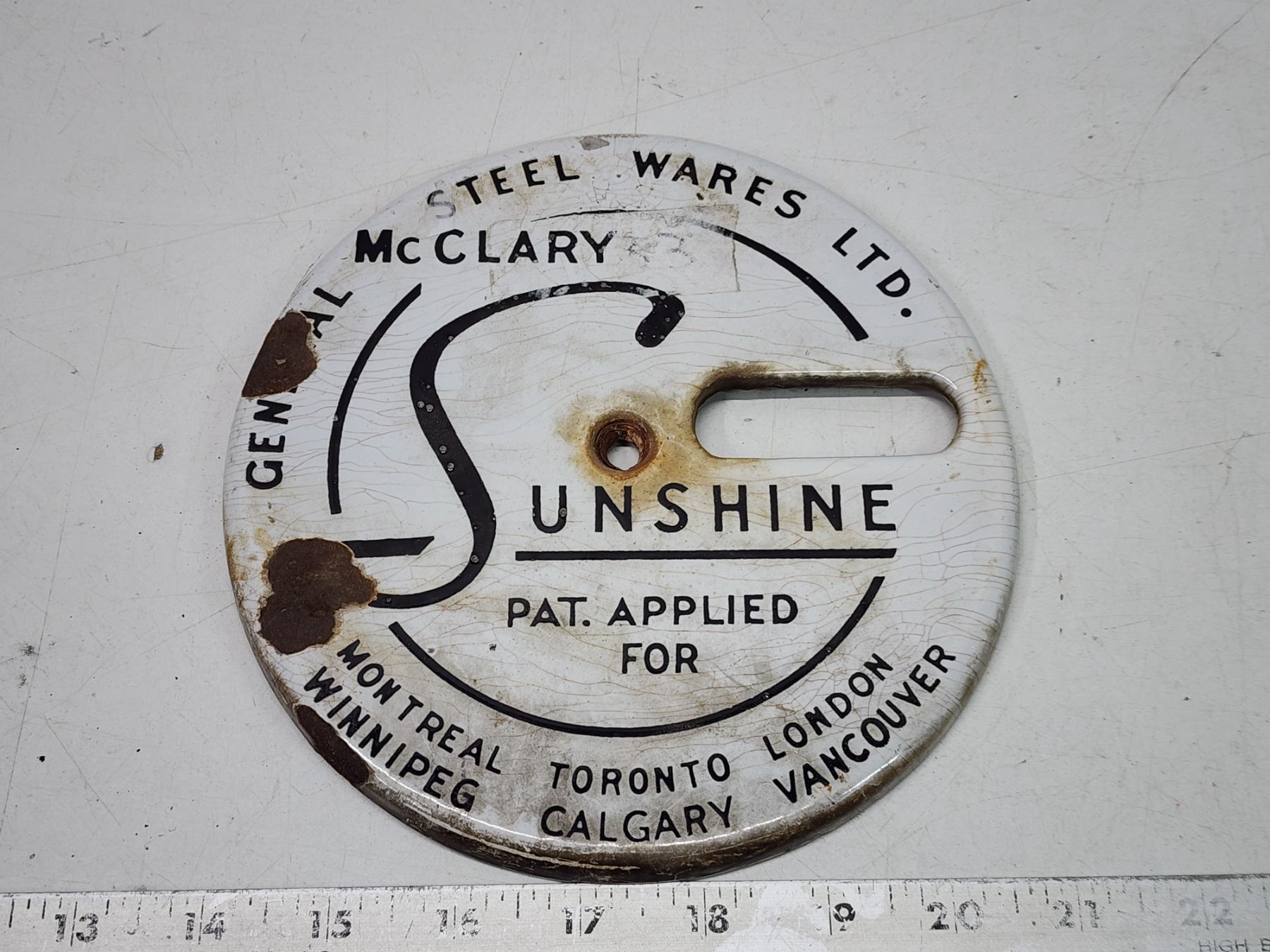 Vintage "General Steel wares - McClary Sunshine" stove builder plate
