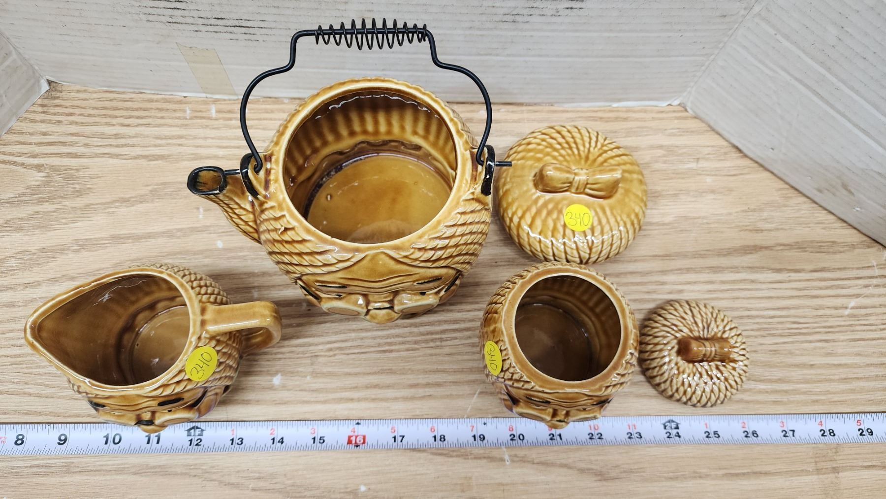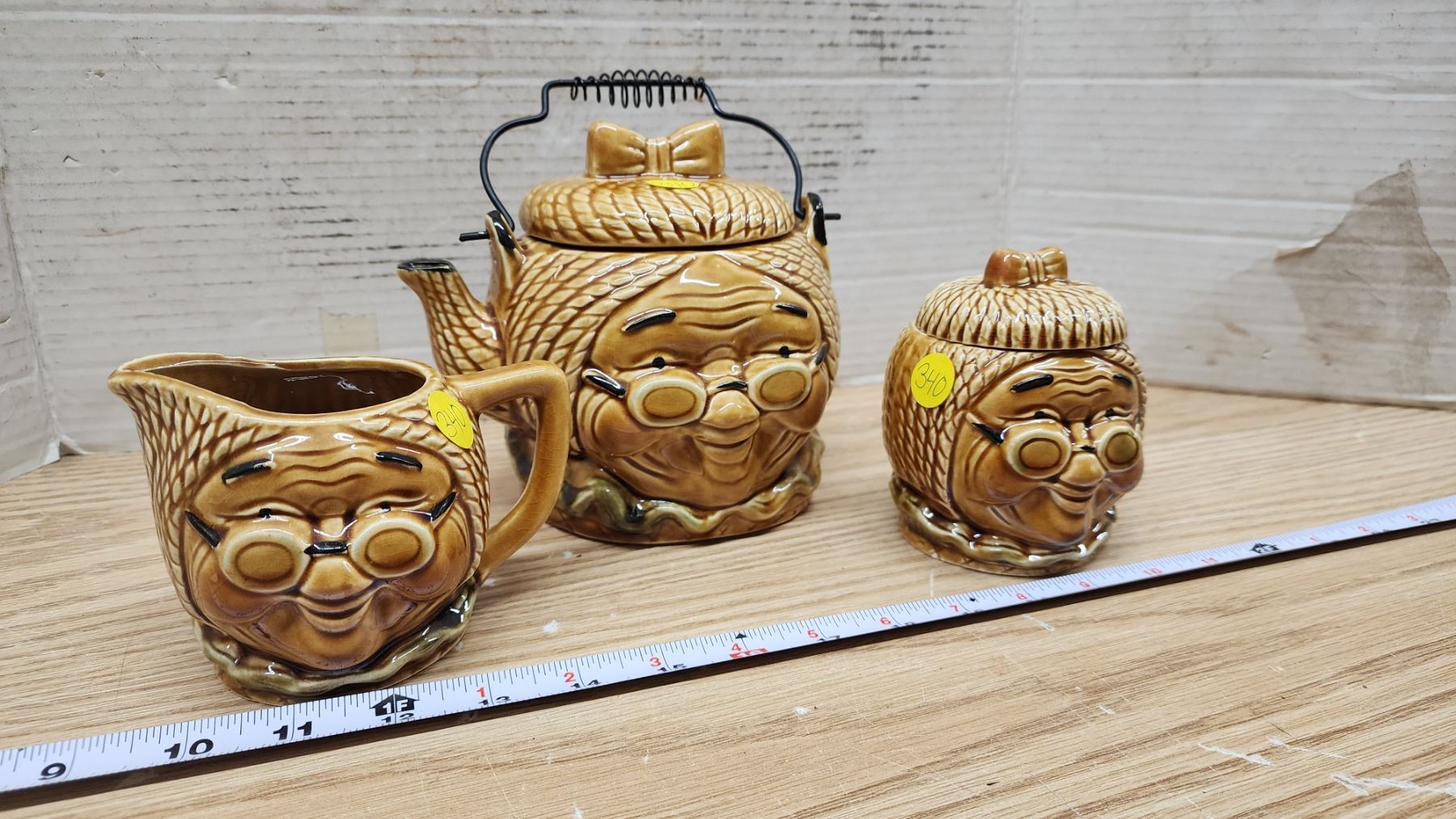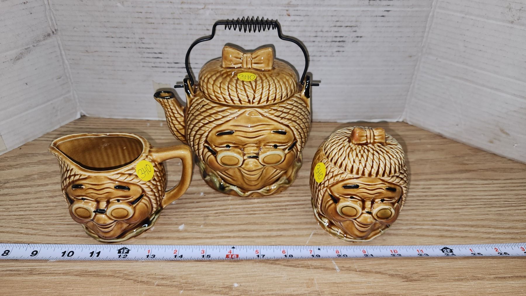 Vintage "Granny" face tea pot, matching cream & sugar