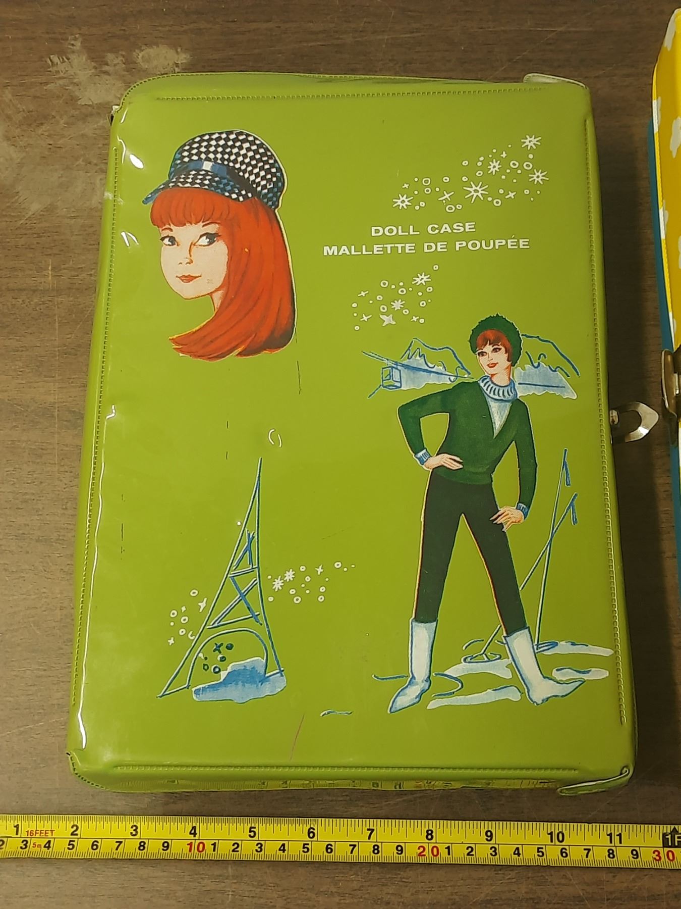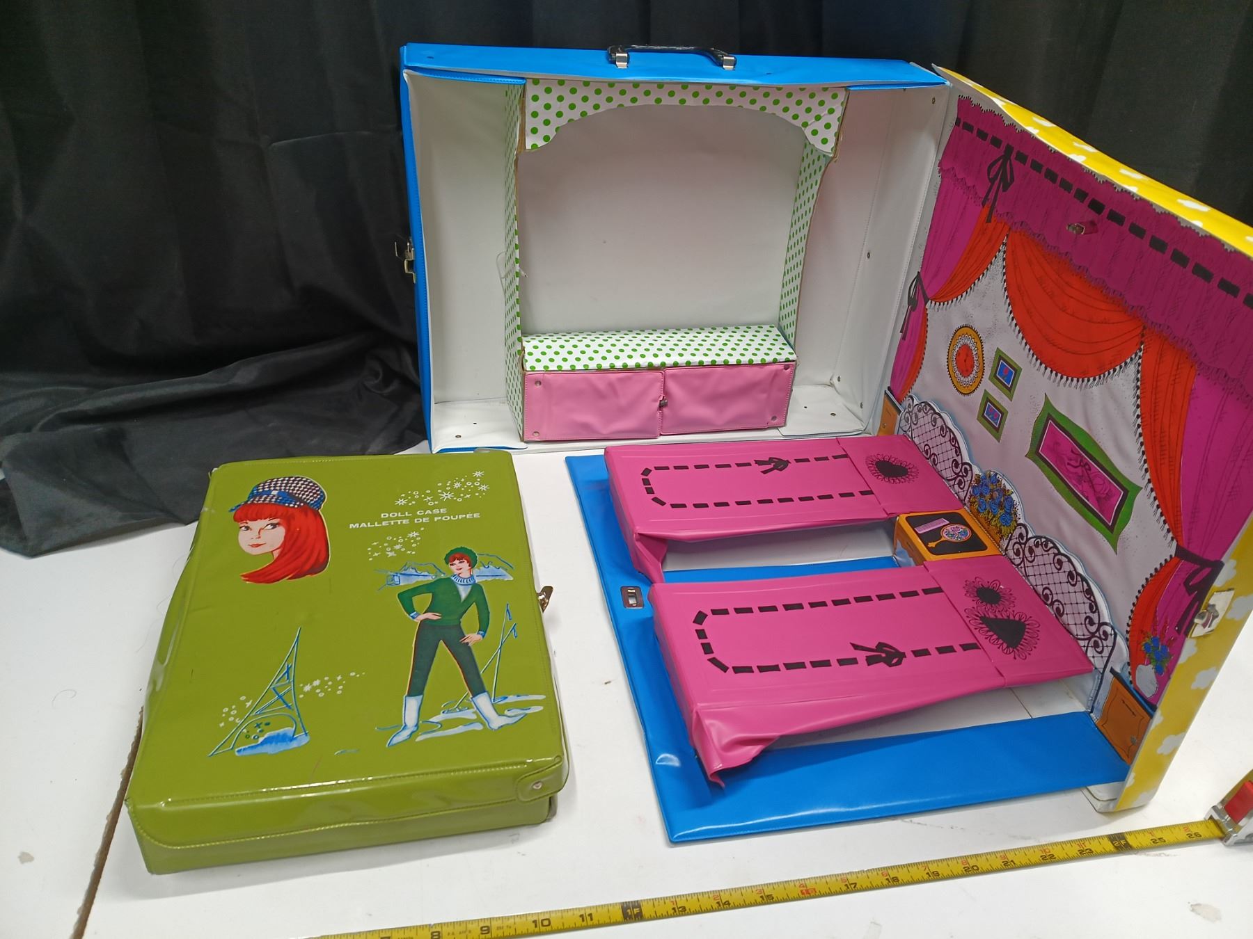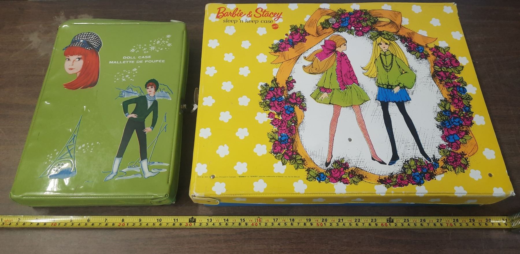 Vintage Green Doll Case and Barbie & Stacey Sleep 'n Keep Doll Case.