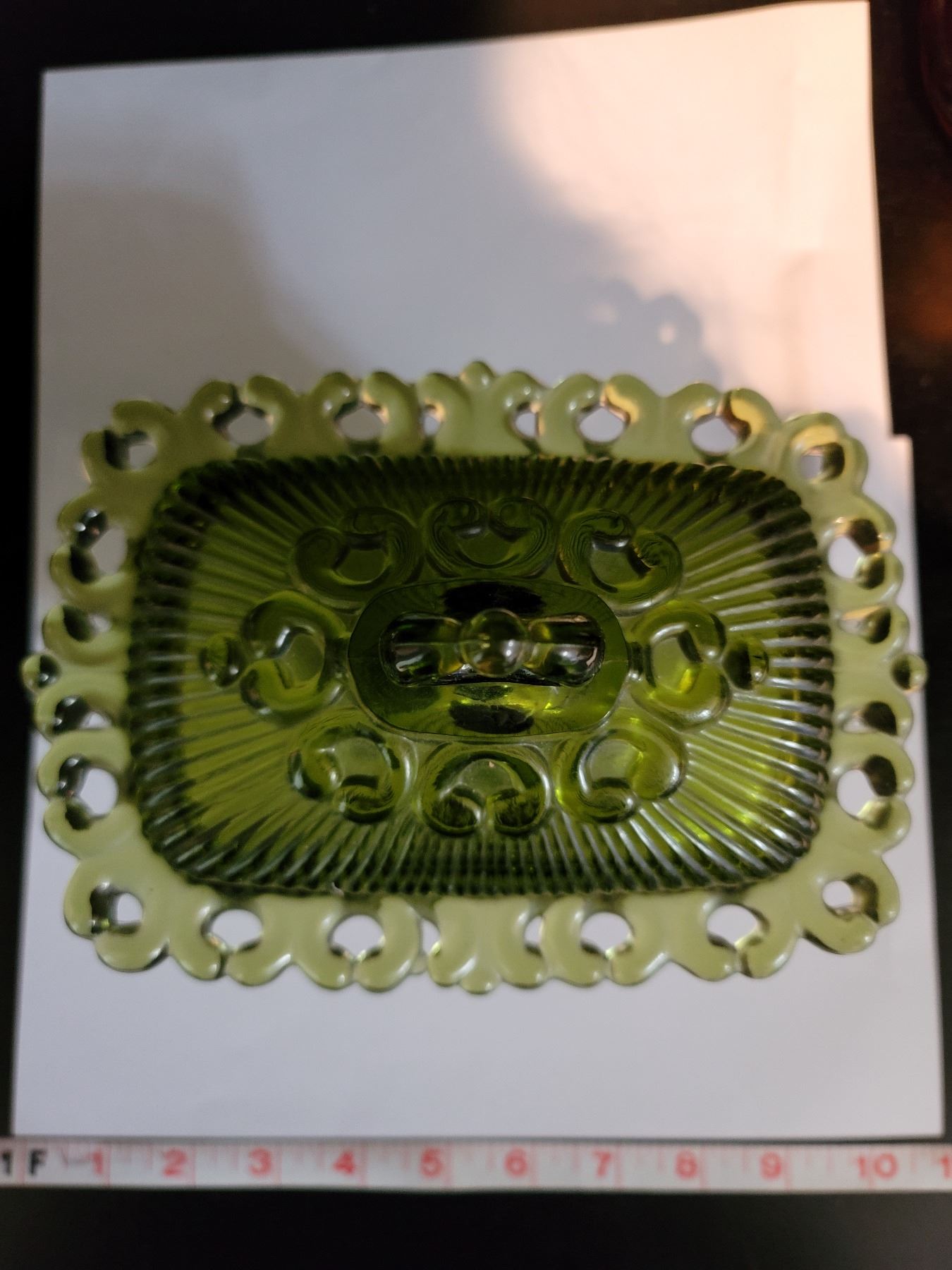 Vintage Green Indiana Glass Pedestal Covered Candy Dish
