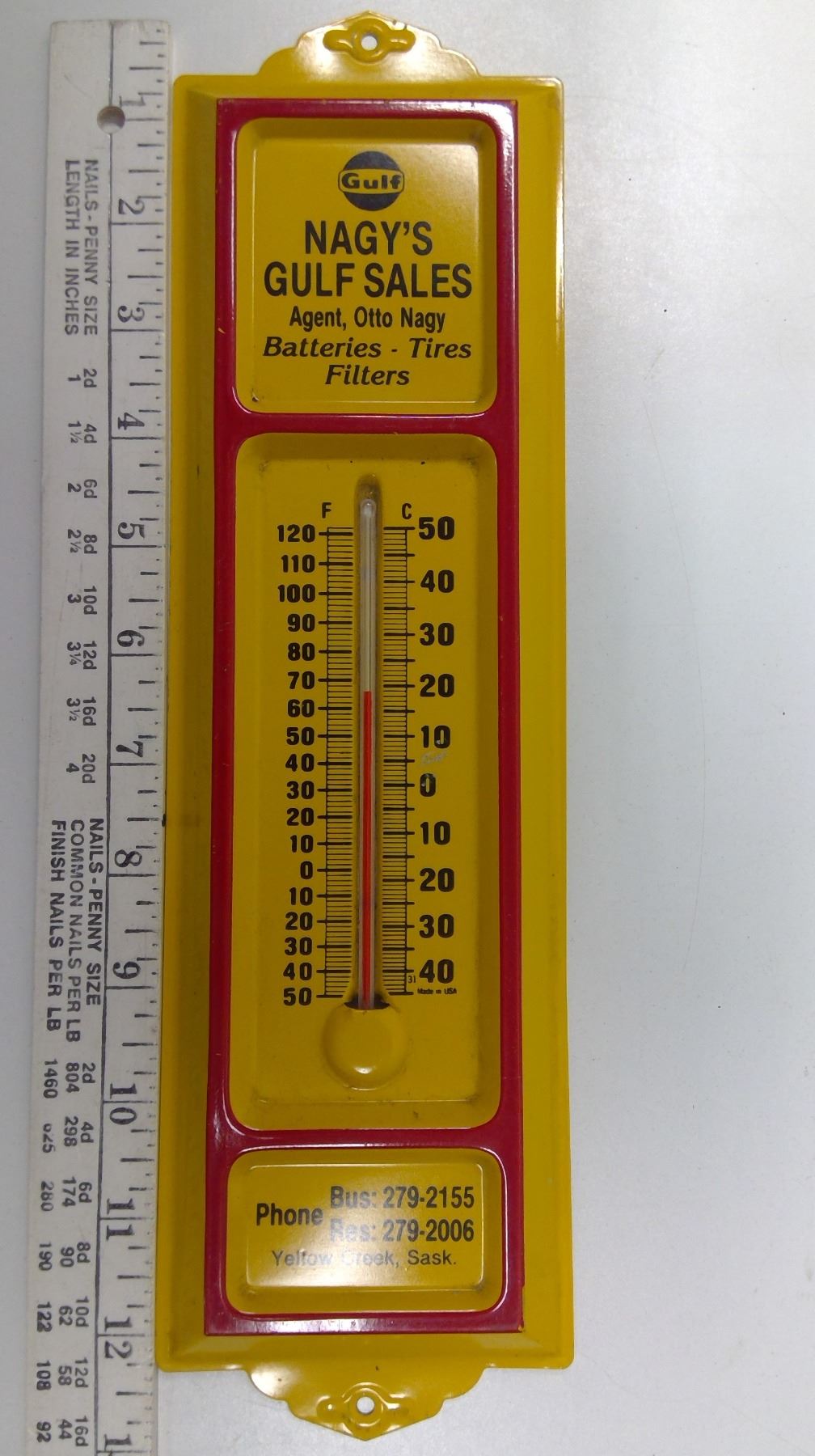 Vintage Gulf Nagy's gulf sales thermometer metal 13 1/8 x 3 3/4