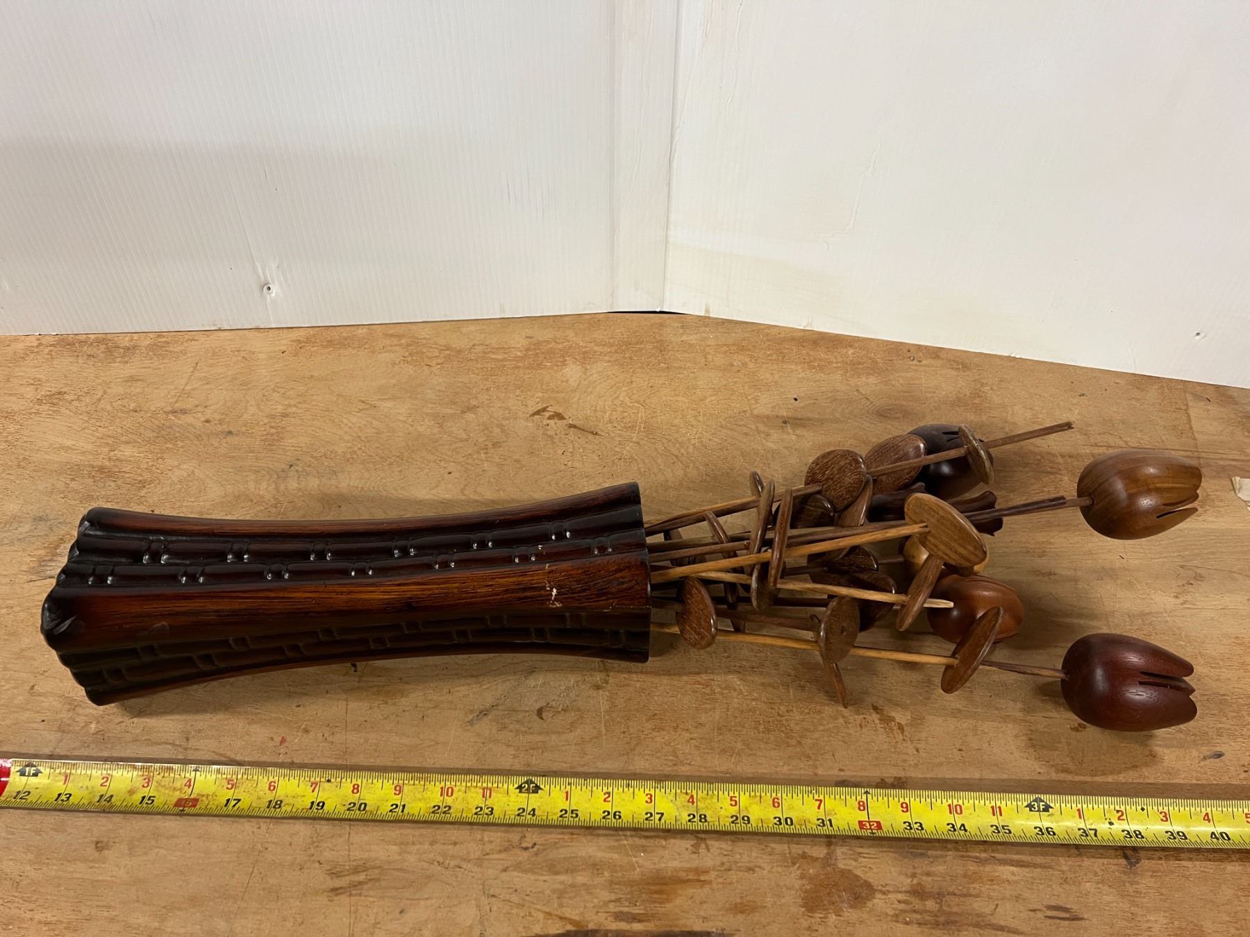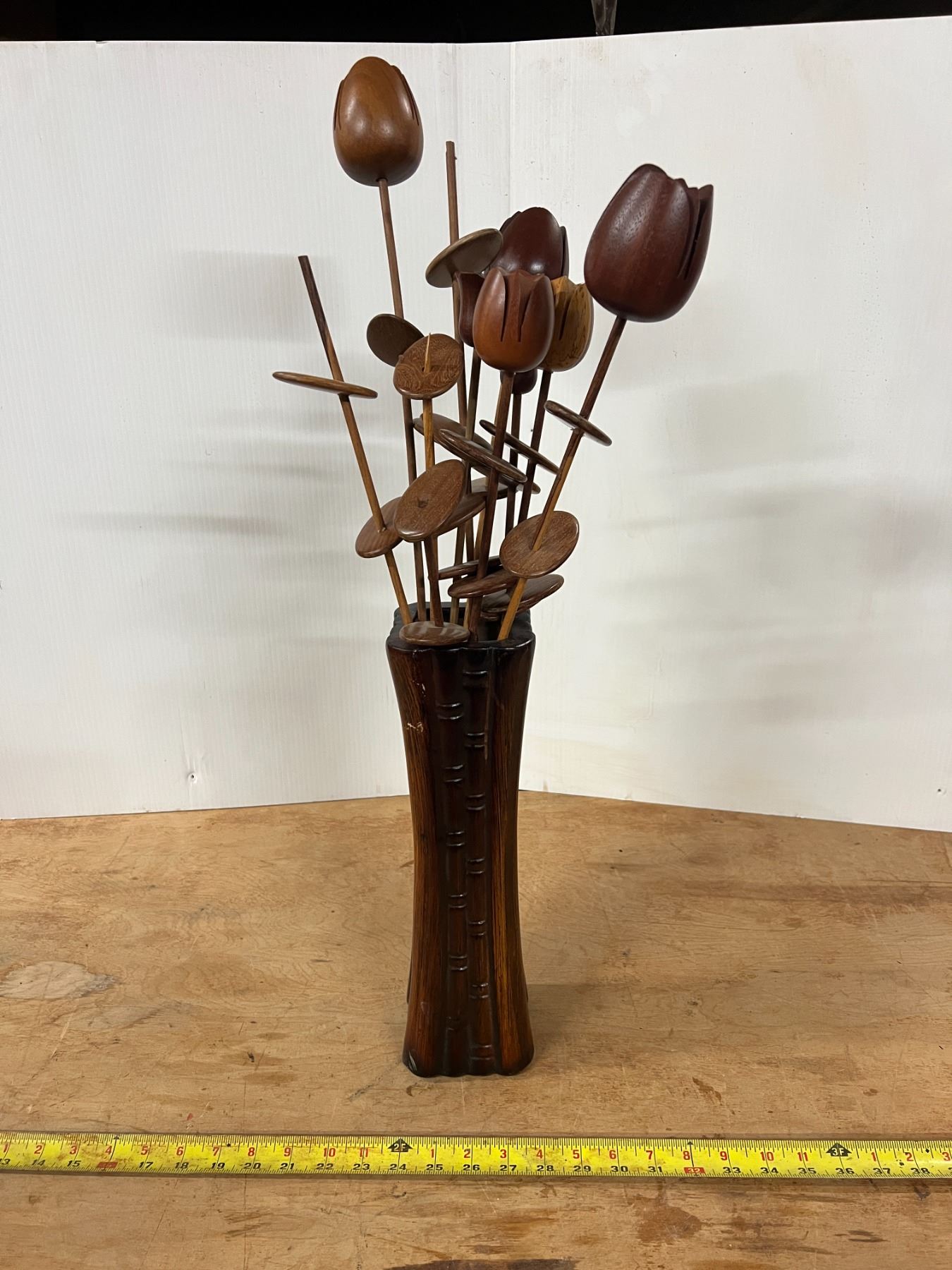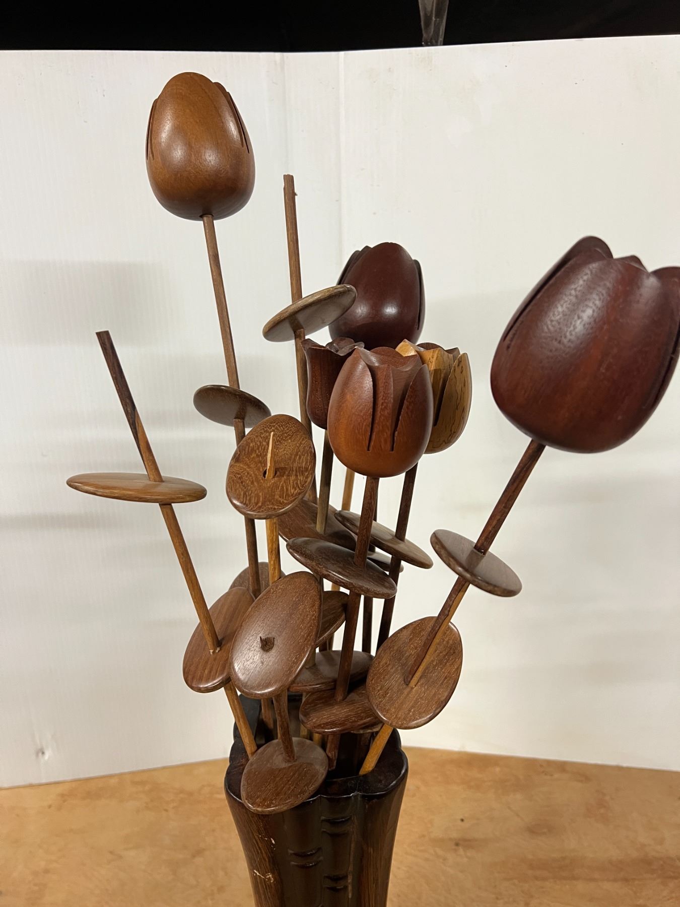 Vintage Hand Carved Monkey Pod Wood Floral Arrangement
