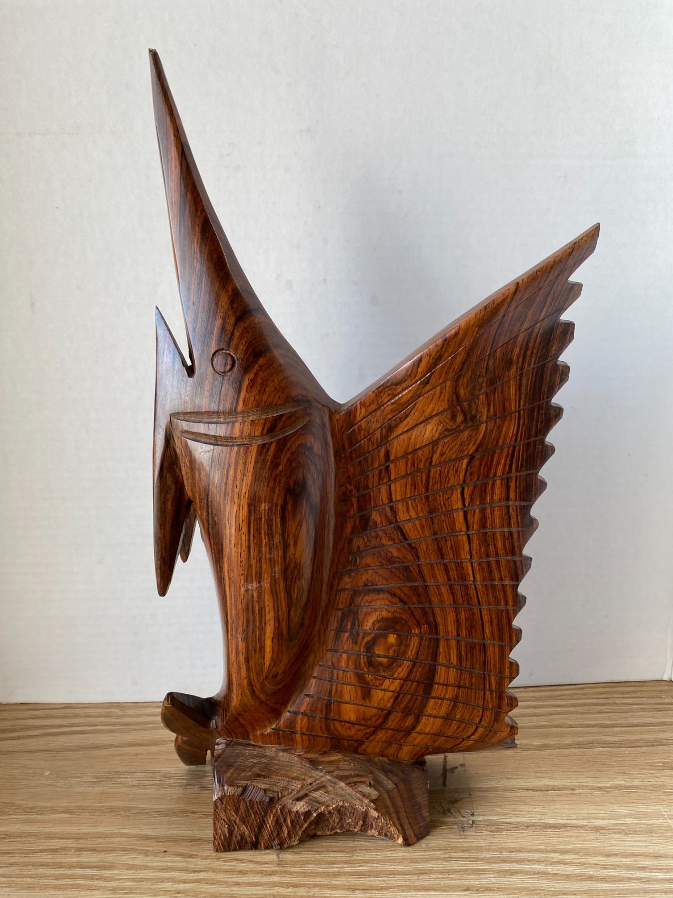Vintage Hand Carved Wooden Iron Wood Sword Fish