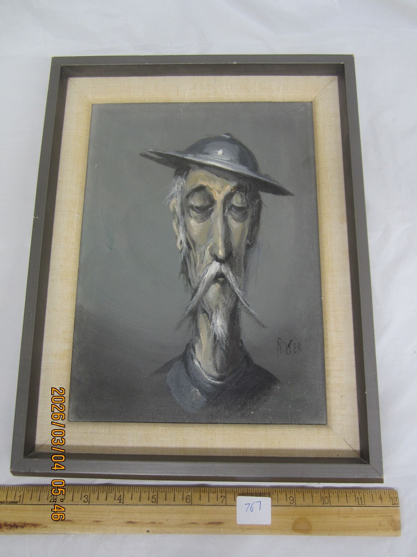 Vintage Hand Painted Portrait of a French WW1 Soldier