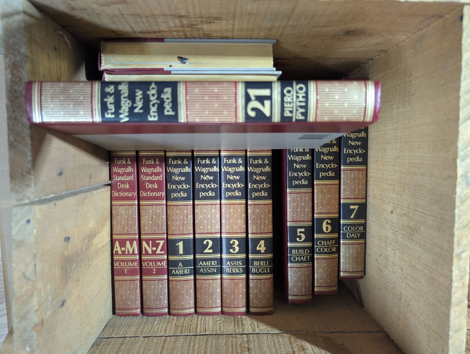 Vintage Hatching Eggs Wood Crate (27"x13"x12") w/ Vintage Funk and Wagnalls "New" Encyclopedias