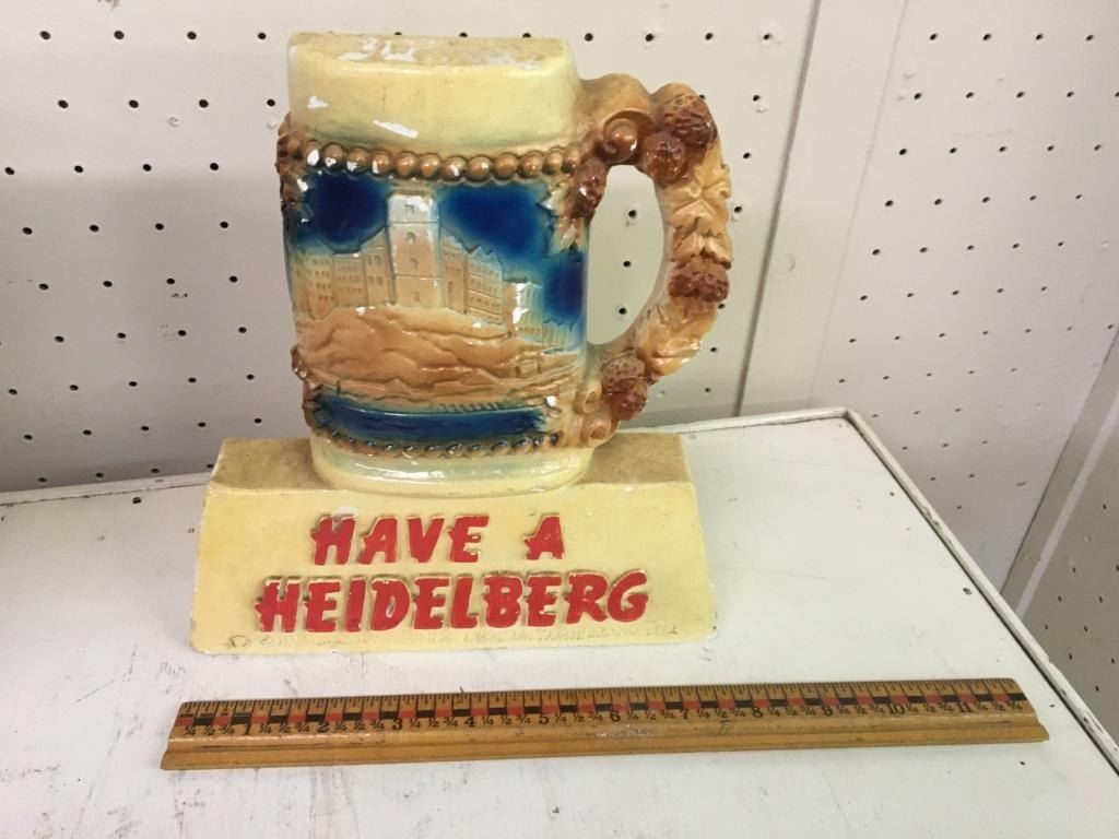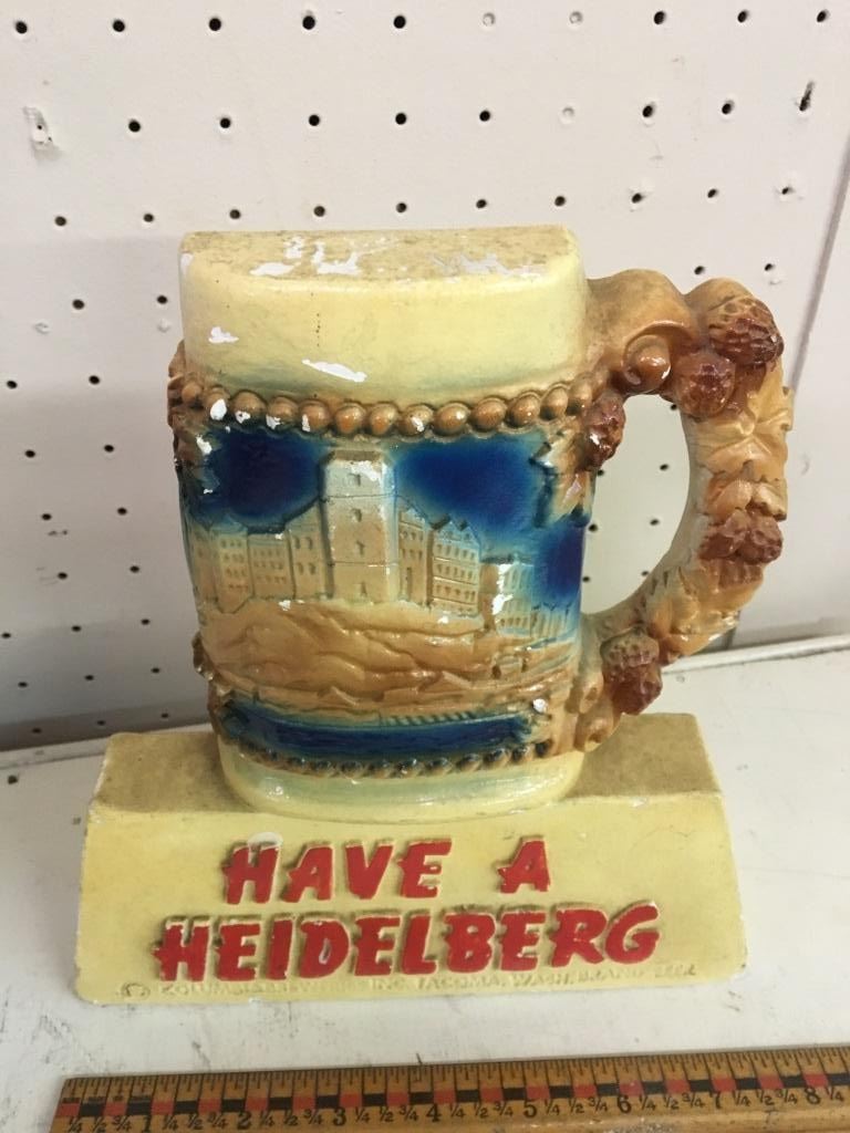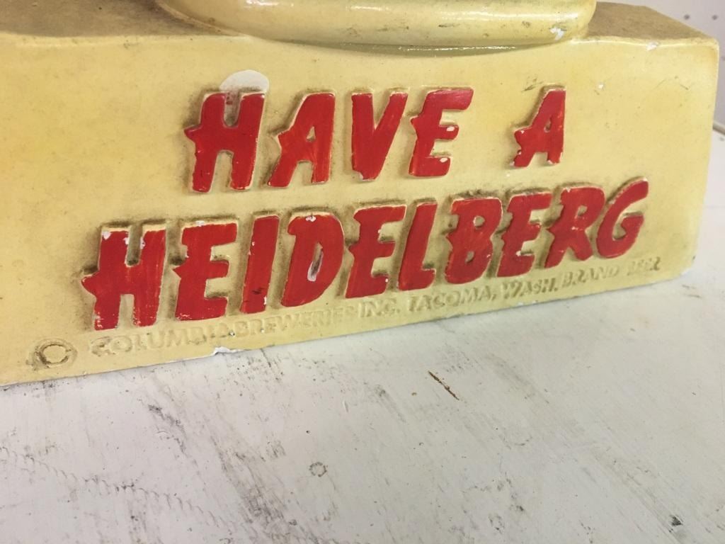 Vintage Heidelberg advertising chalkware bar top sign 8 1/2”