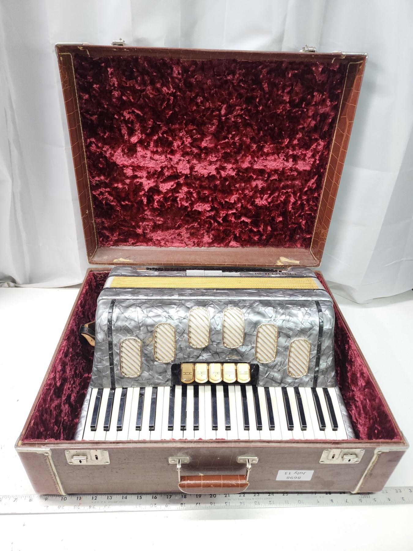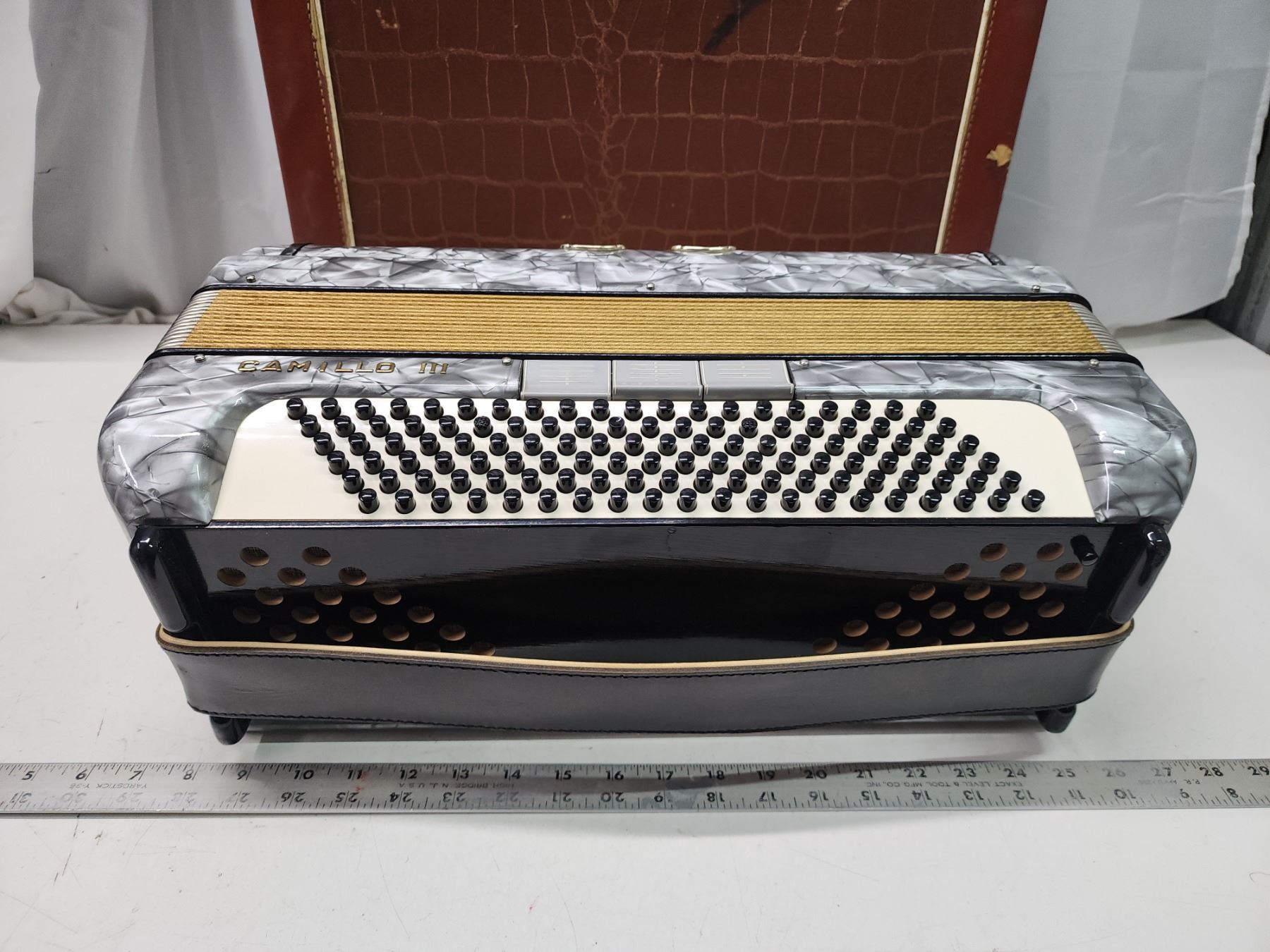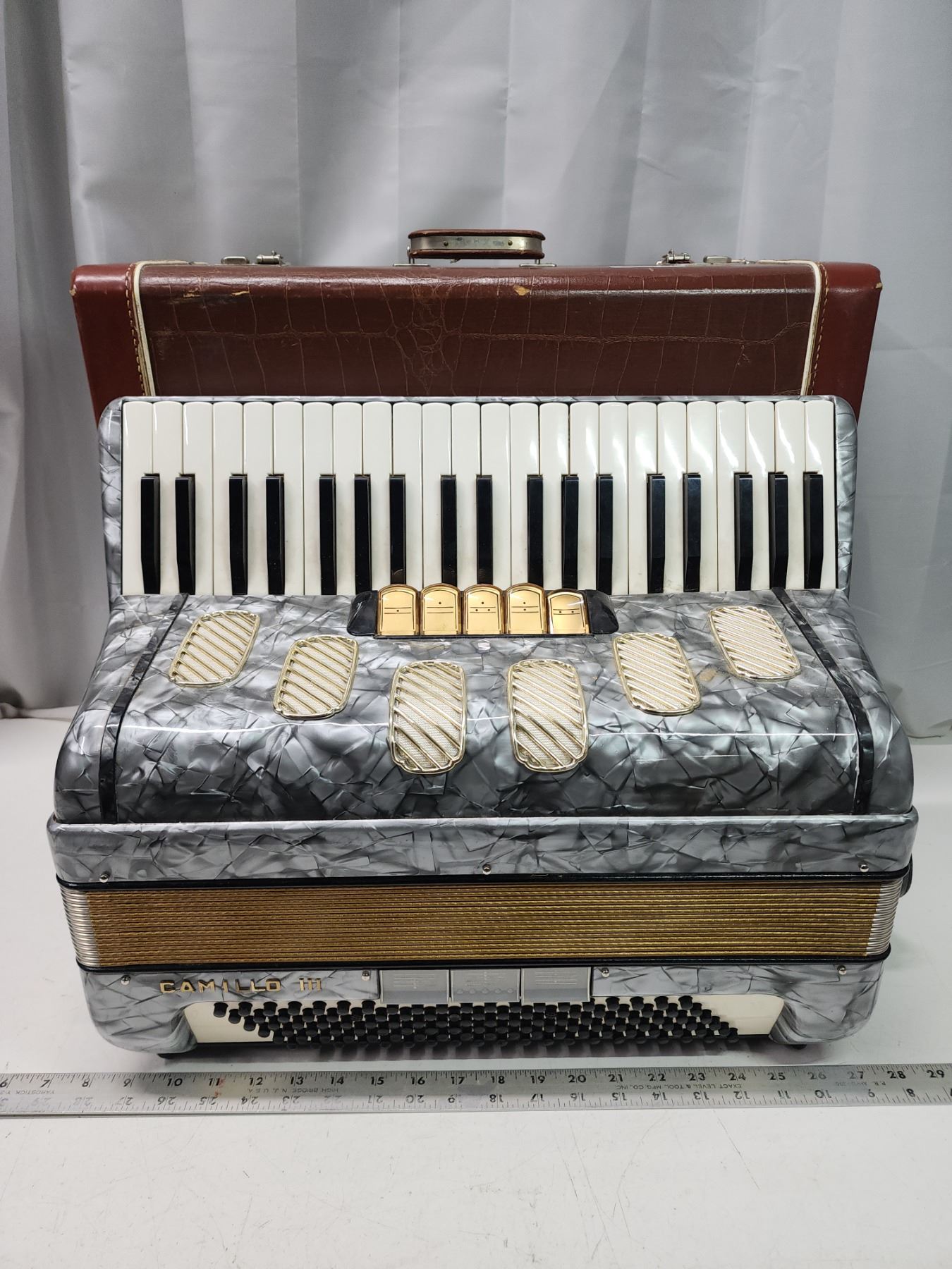 Vintage Hochner "Camillo III" silver accordion, plays beautifully - c/w carrying case