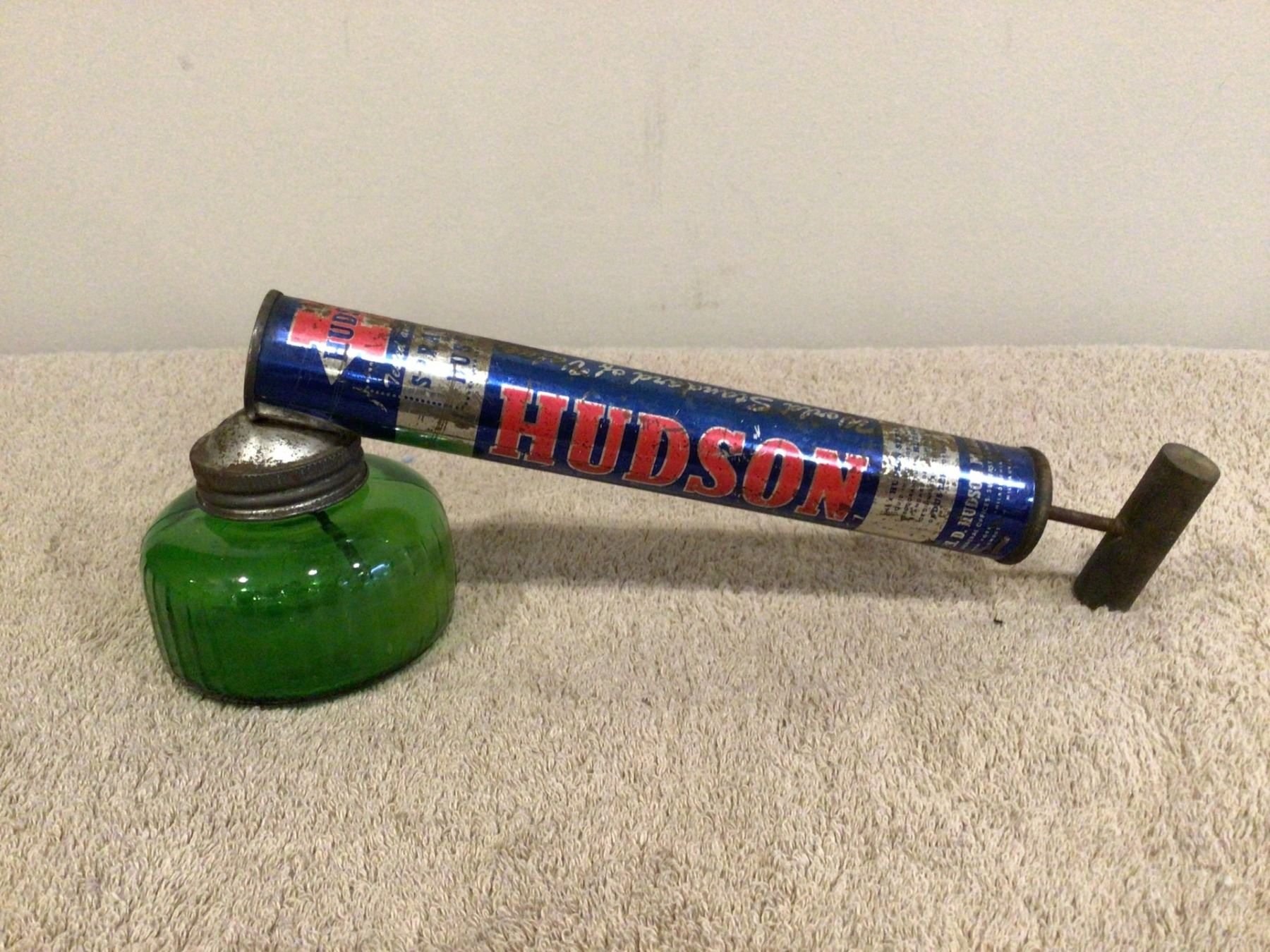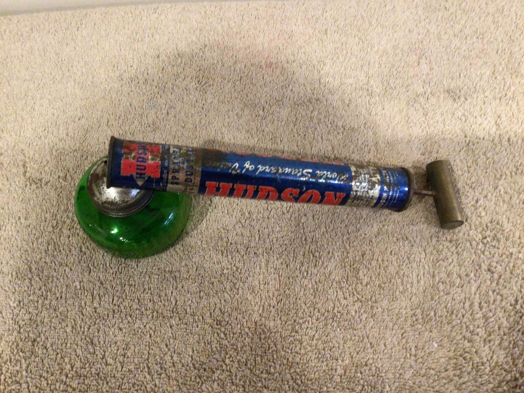 Vintage Hudson bug sprayer. Green glass w/1951 marking on glass.