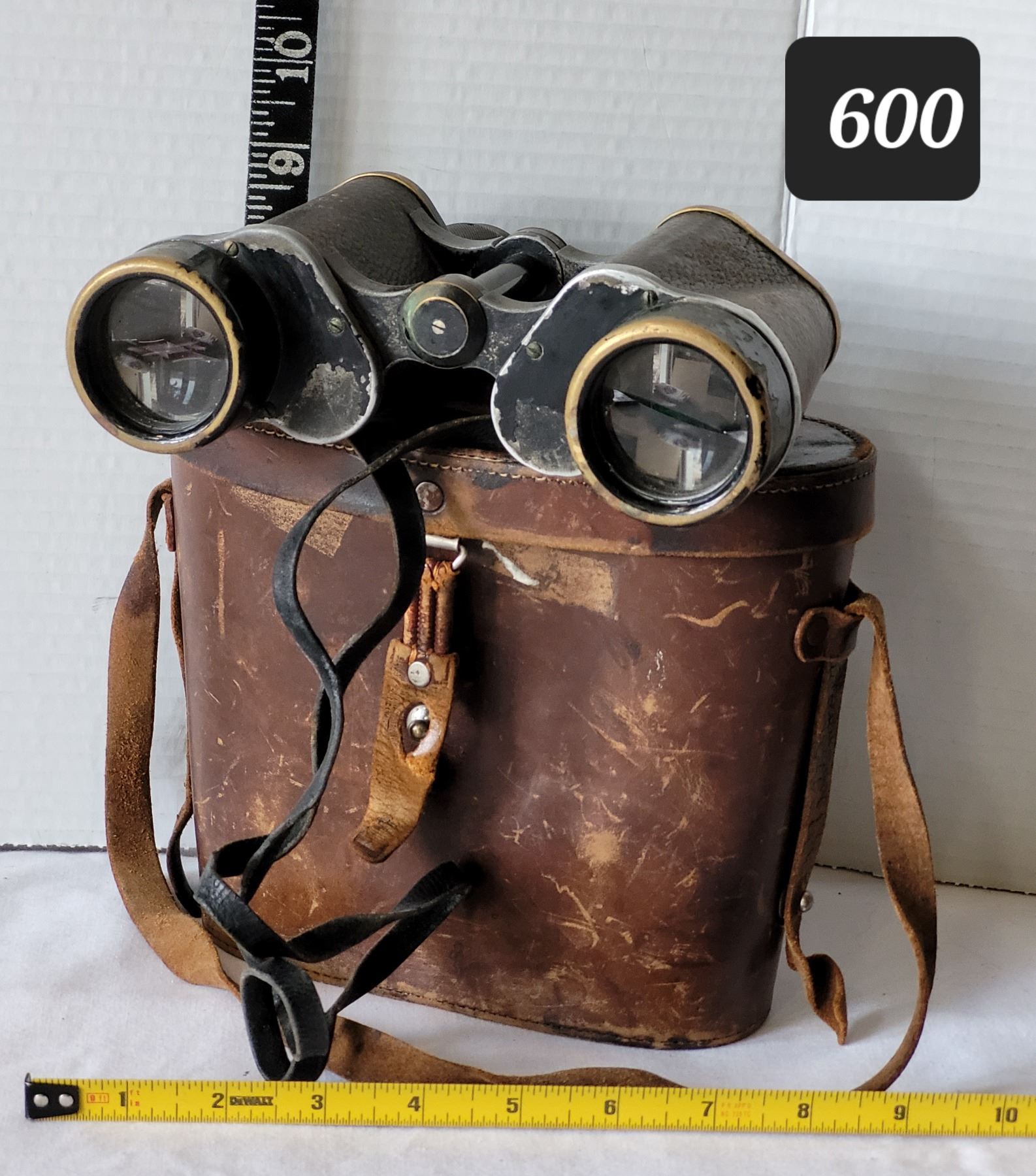 Vintage Hughes Owens Binoculars, leather case. Montreal Can.