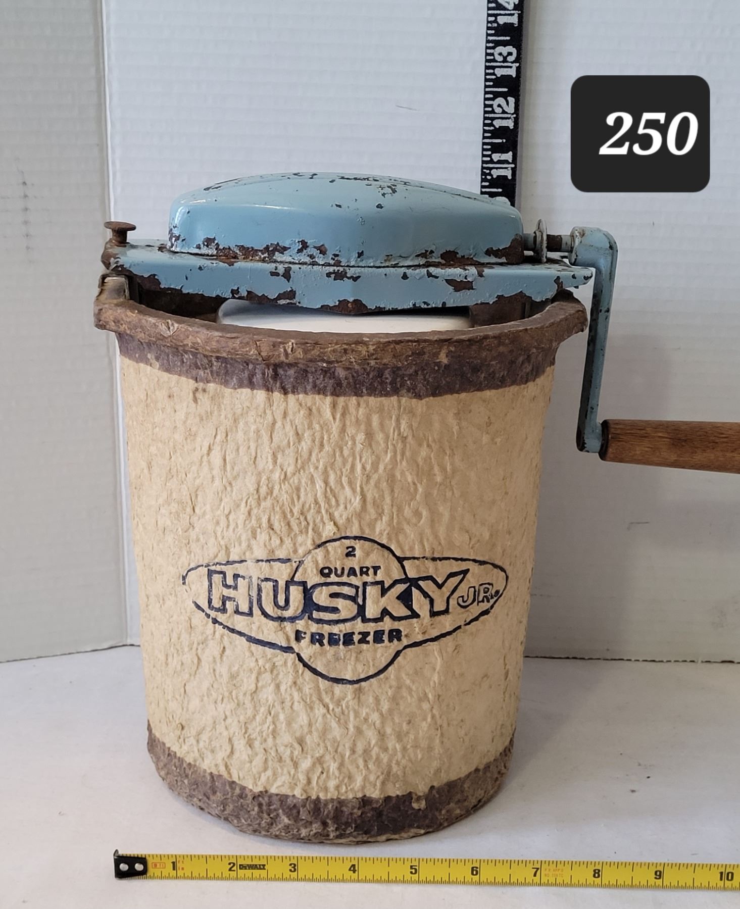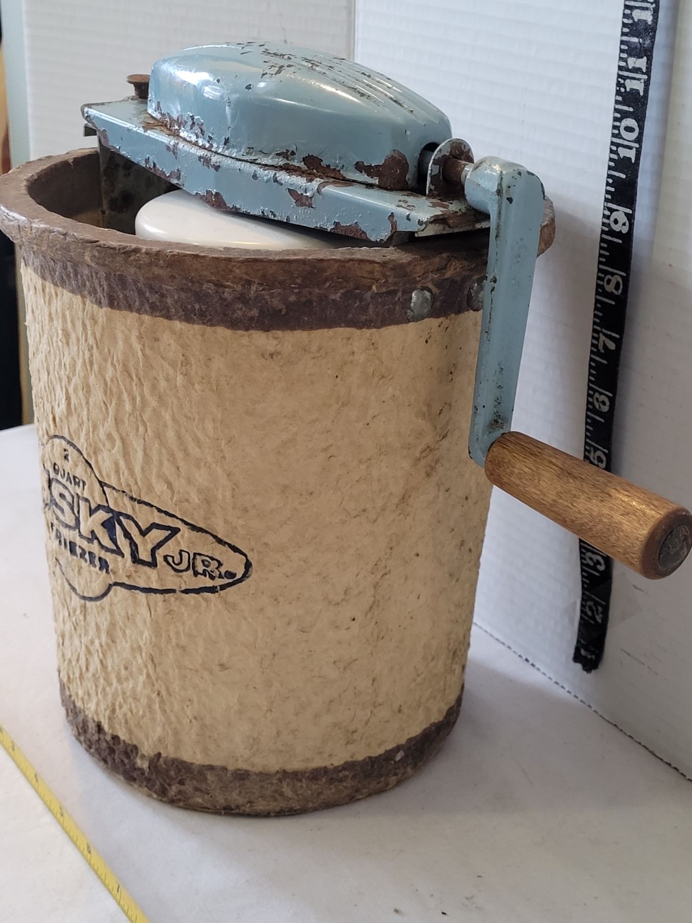 Vintage Husky Jr. 2 quart, paper mache ice cream freezer.