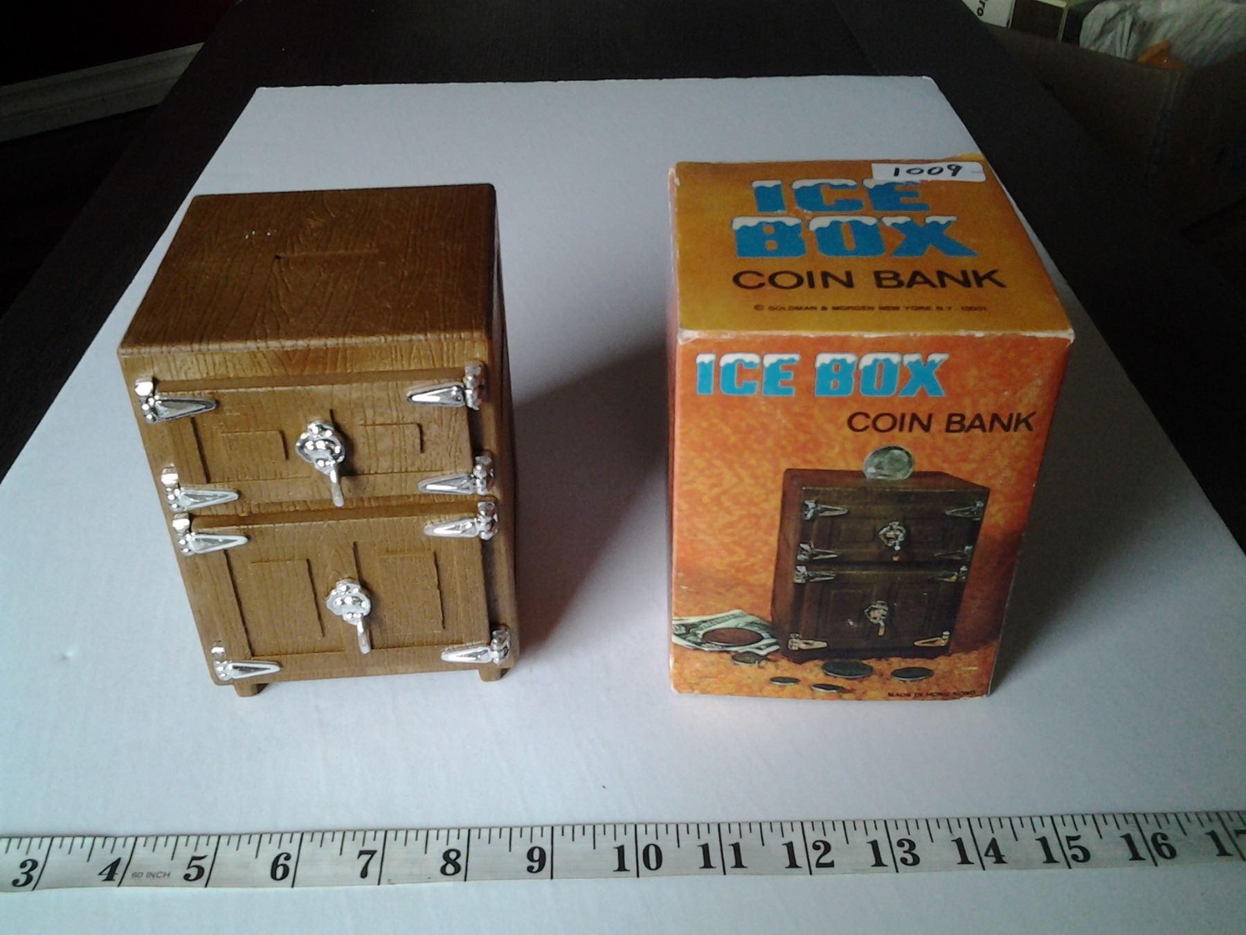 Vintage Ice Box Coin Bank, NOS Made in Hong Kong