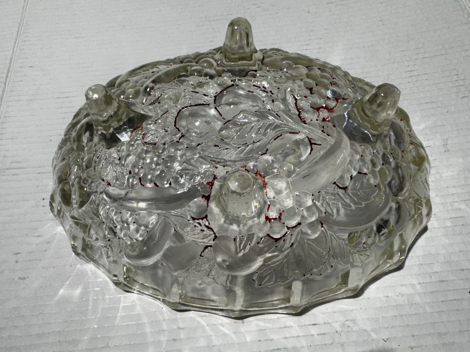Vintage Indiana Glass Clear Oval Footed Harvest Grape Fruit Bowl.