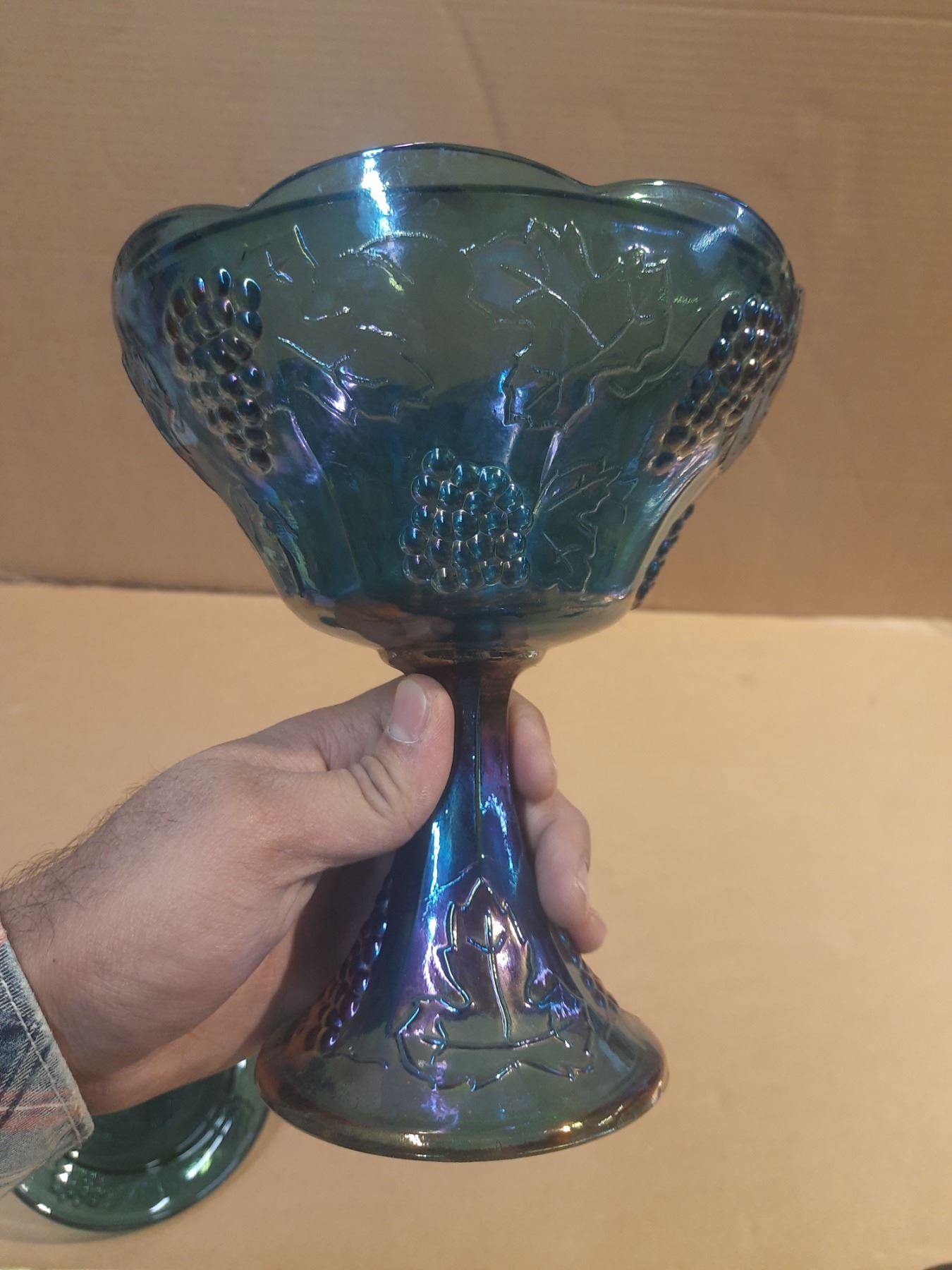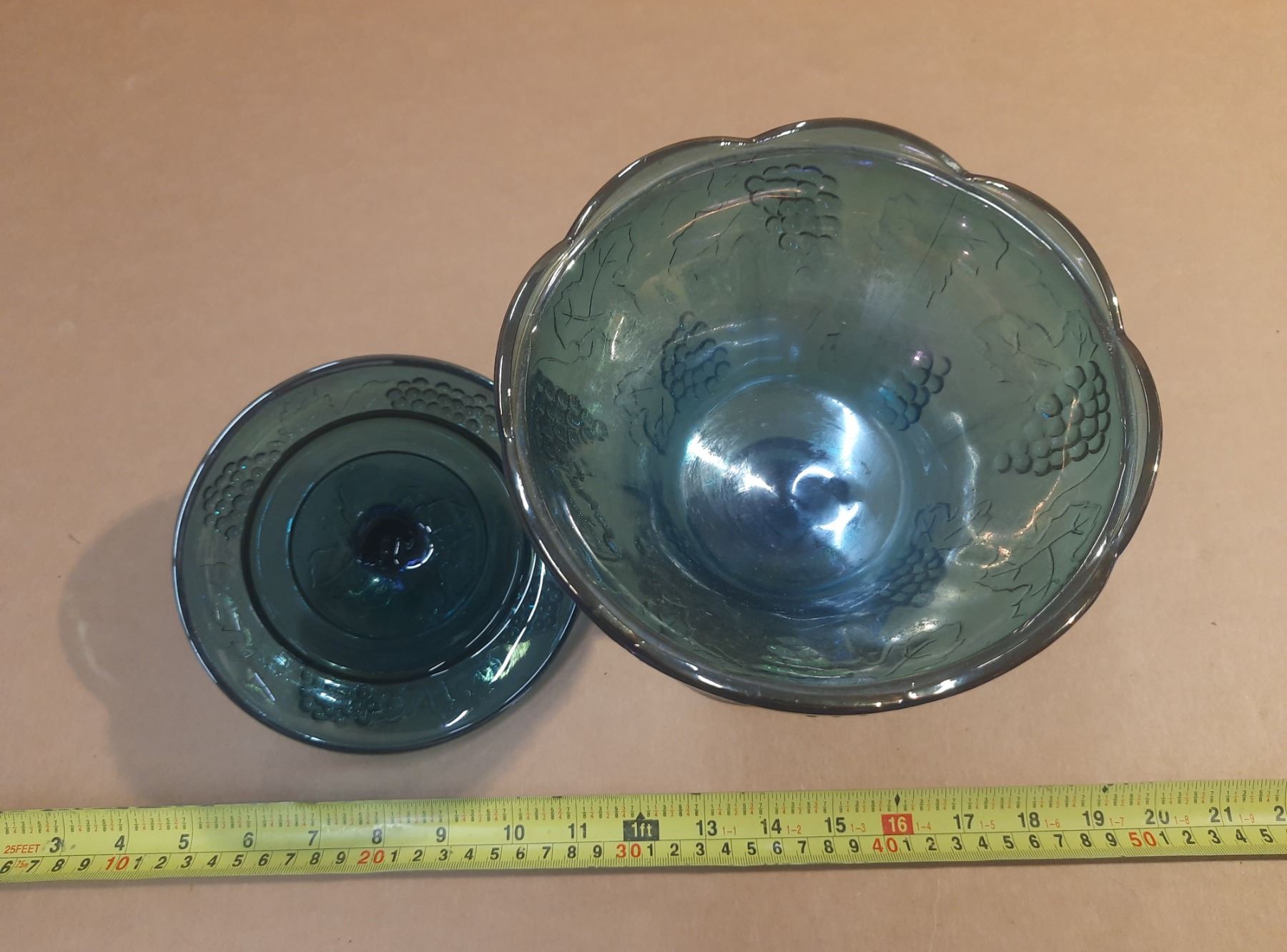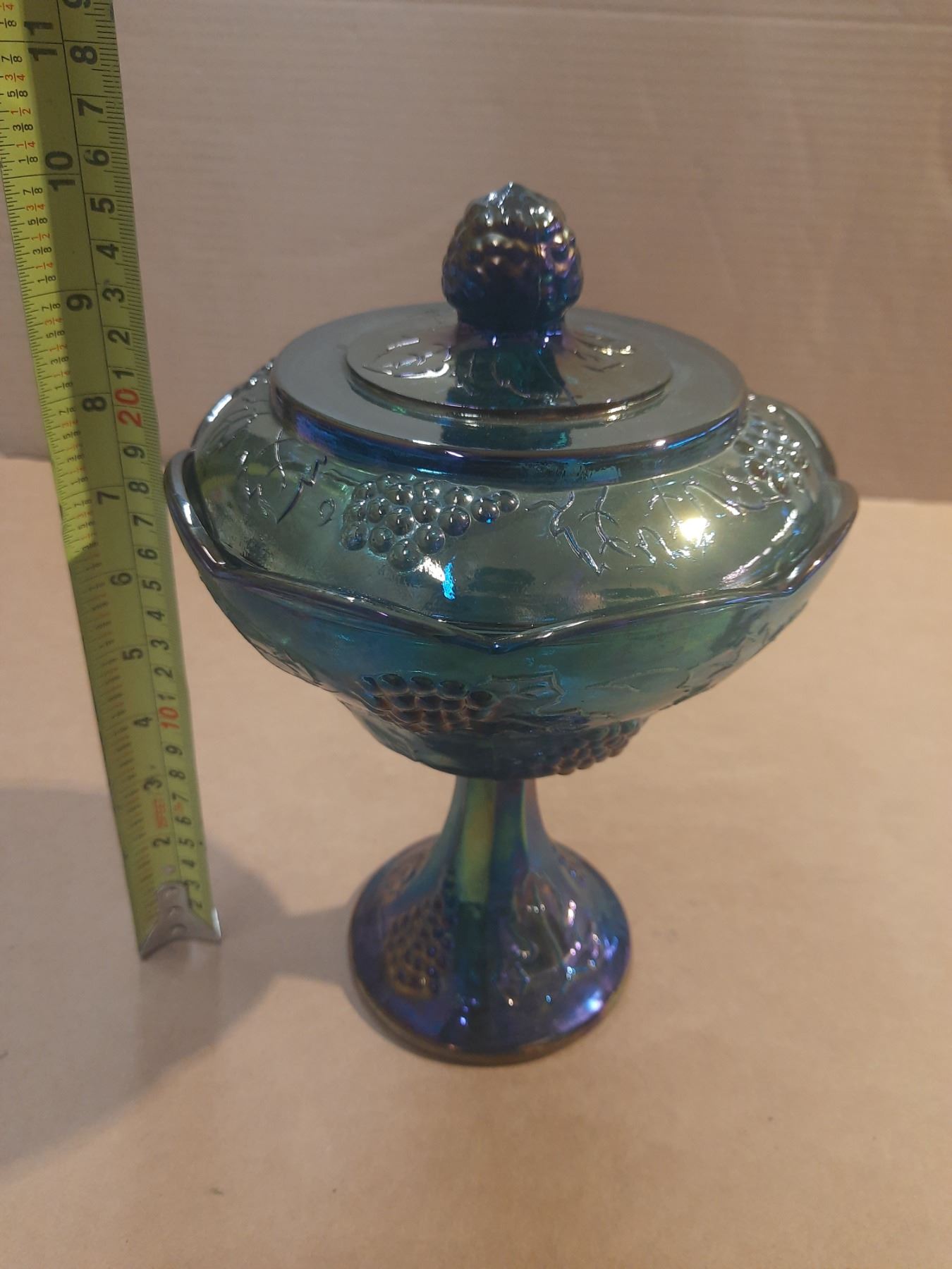 Vintage Indiana Glass Harvest Grape Blue Carnival Glass Complete with a Lid.