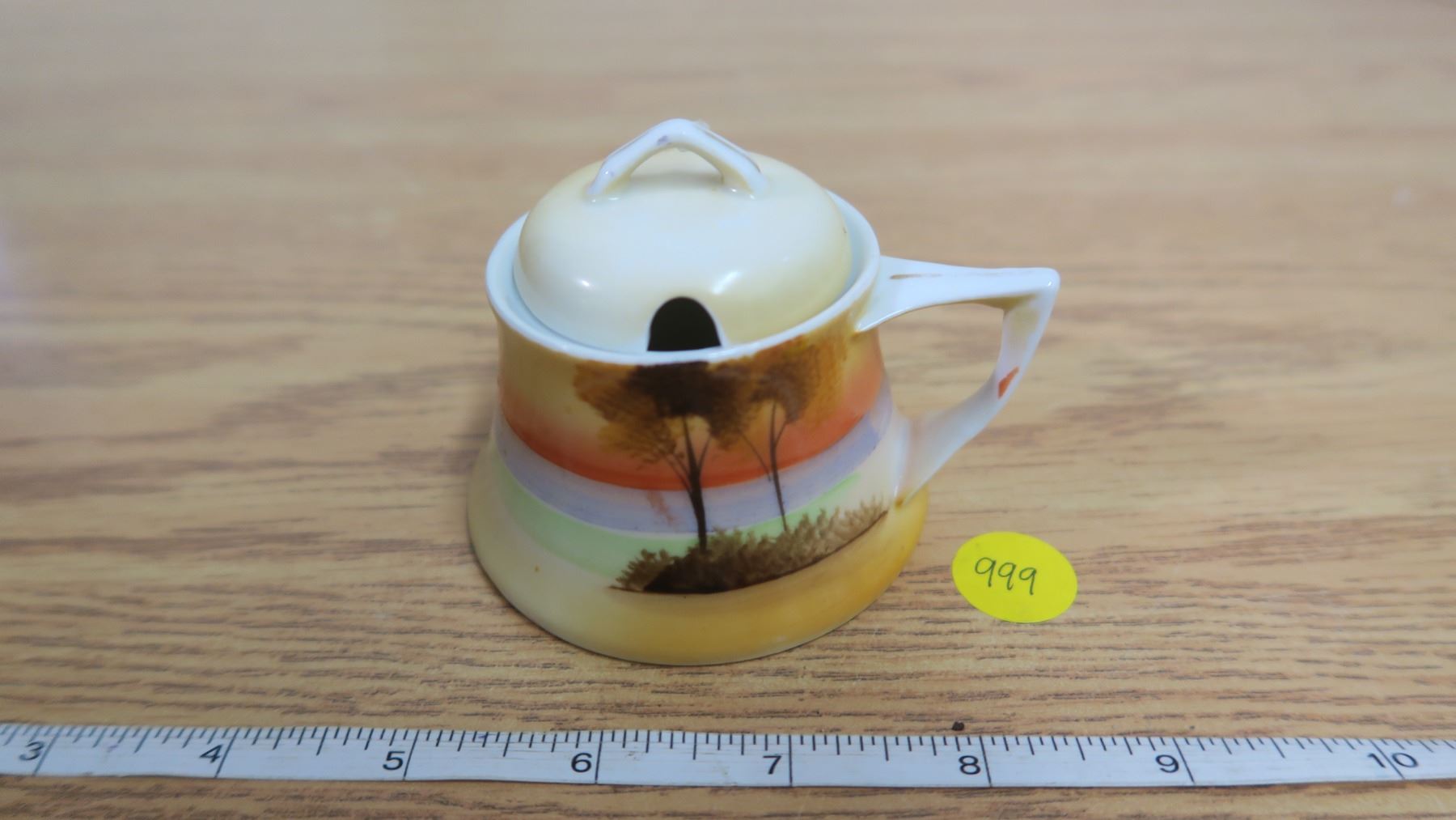 Vintage Japanese Hand-painted Mustard Pot - small chip on lid