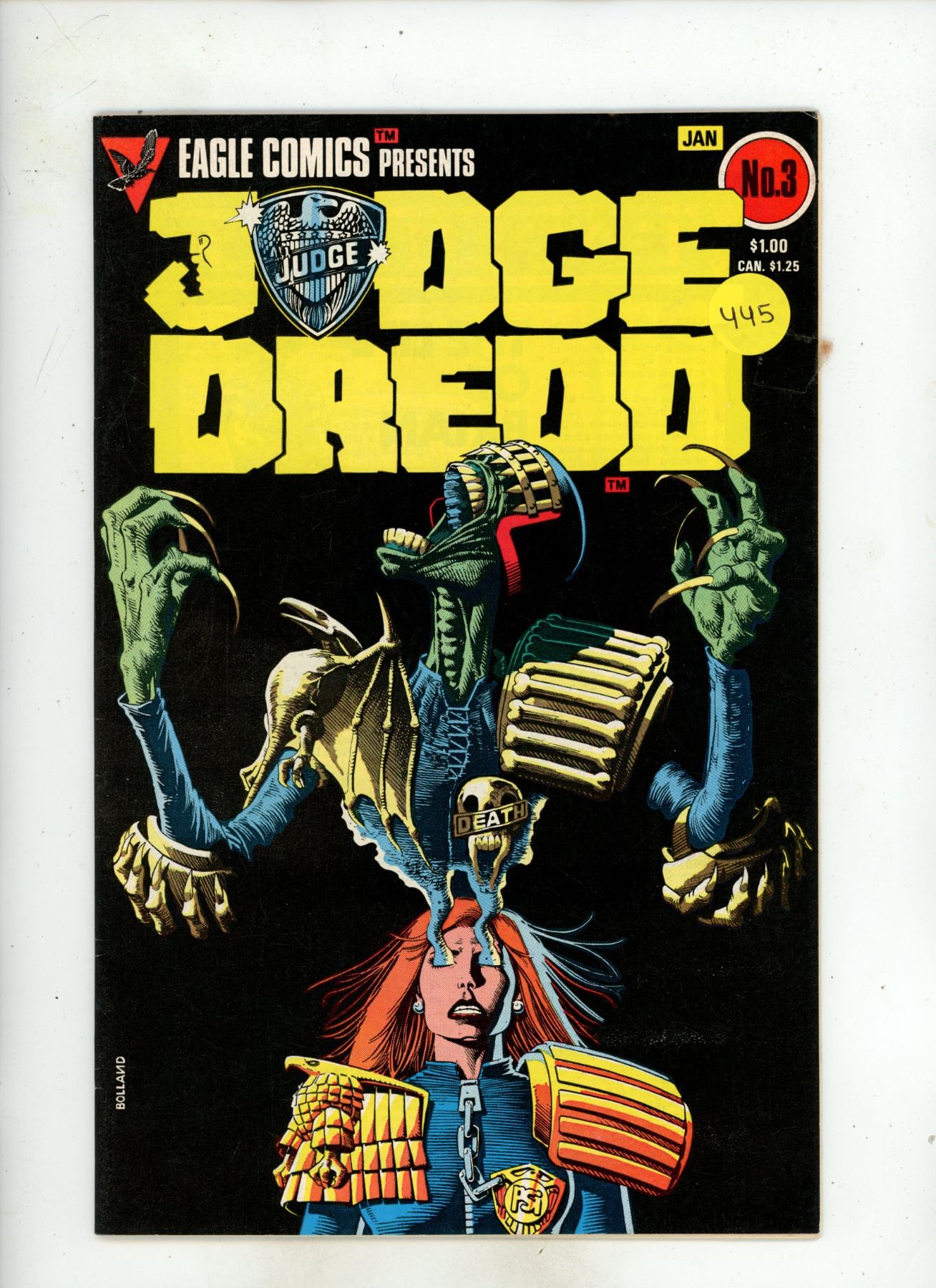 Vintage Judge Dredd #3 comic book published by Eagle Comics in January 1984, featuring a cover illustration by Brian Bolland.