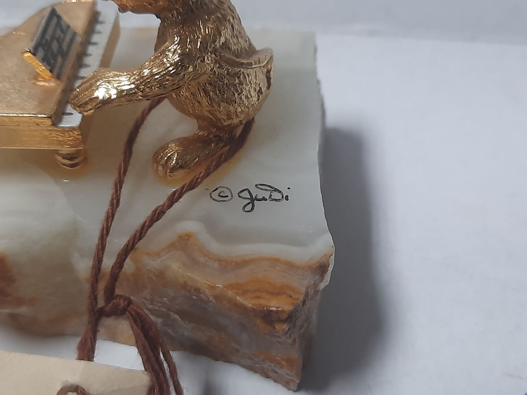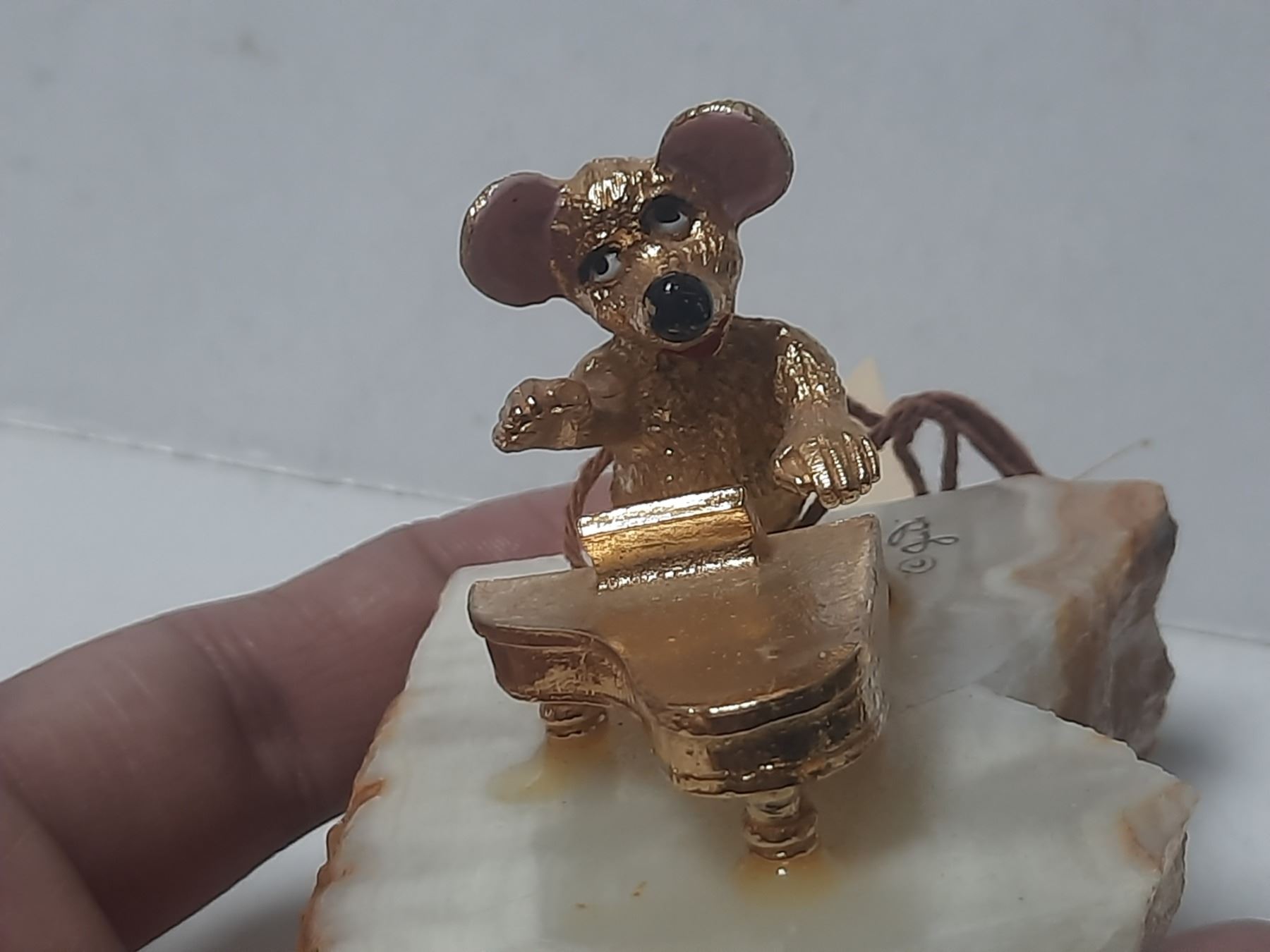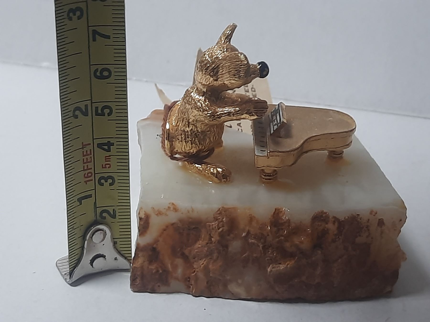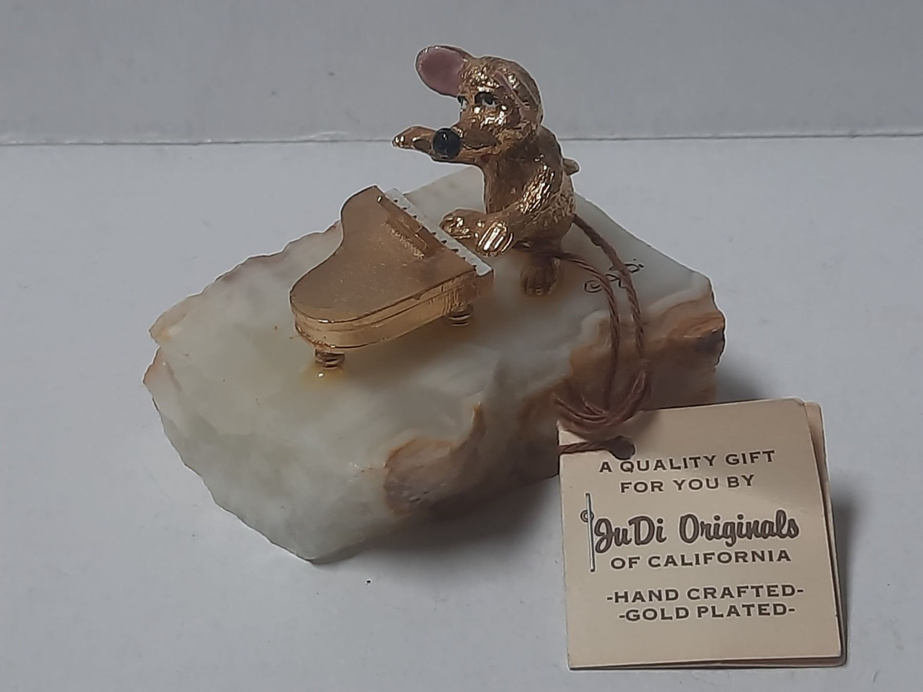 Vintage Judi Originals of California Figurine a Gold- Plated Mouse Playing a Piano on a Marble Base.