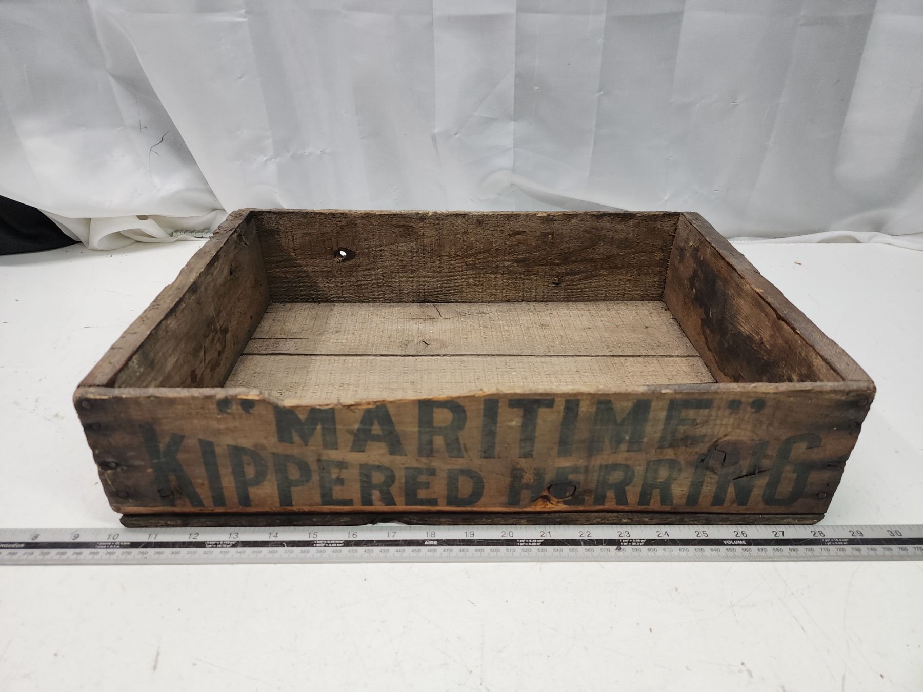 Vintage Kippered herring wooden crate - 18x12.5x4.5"H