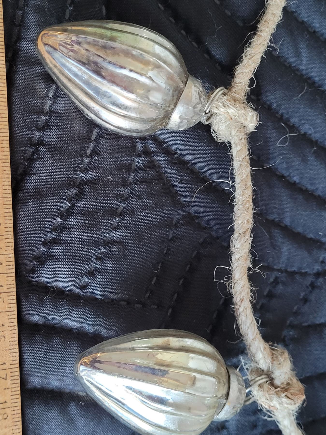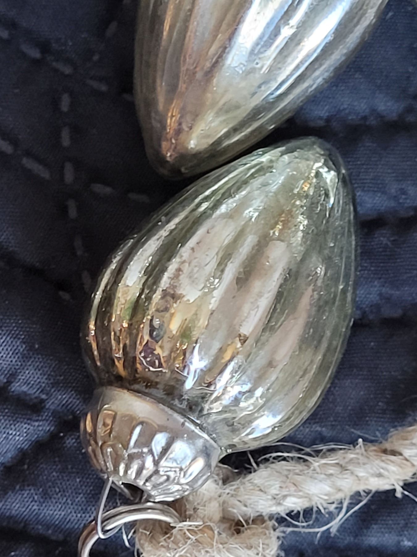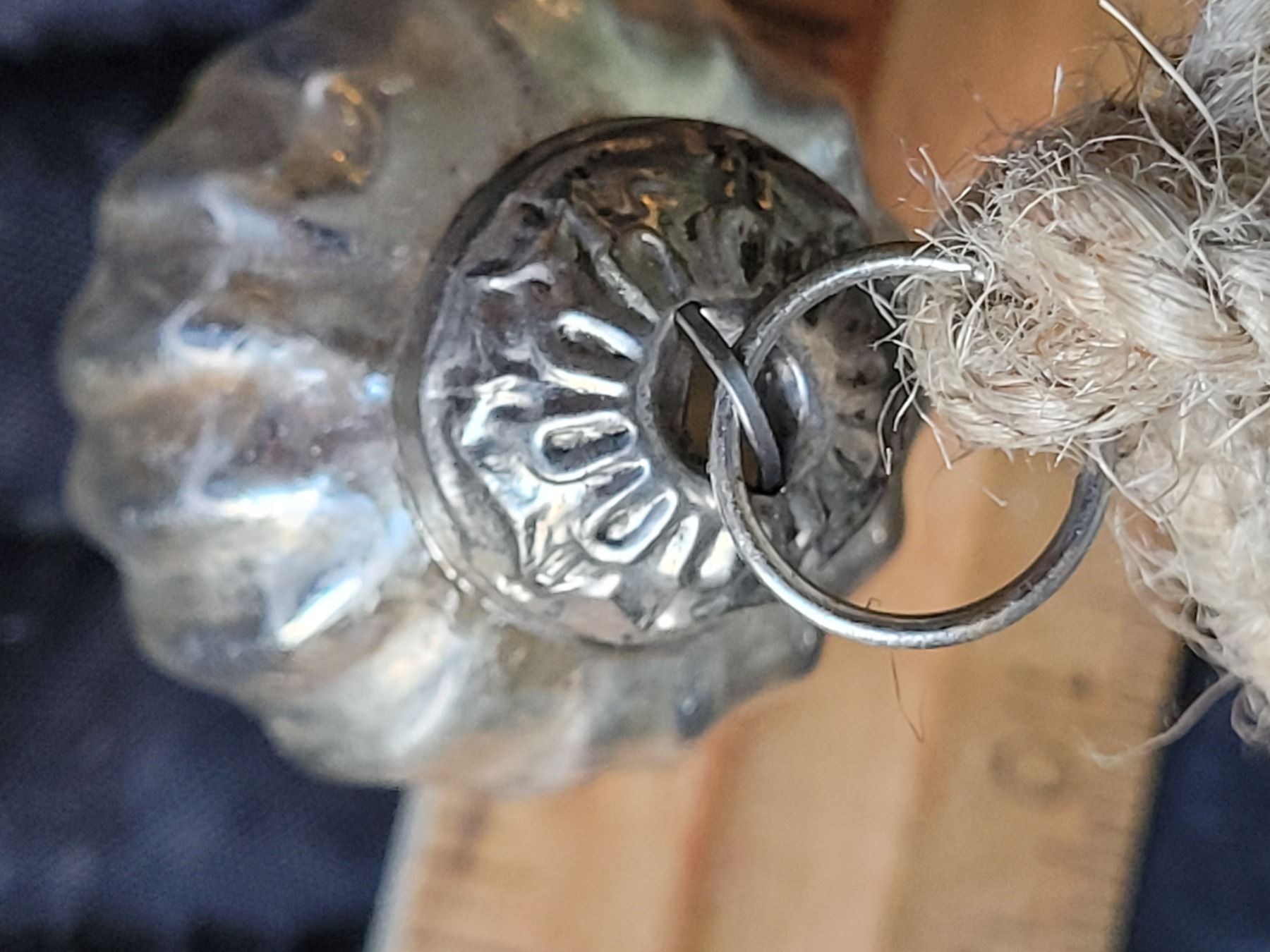 Vintage Kugel style bulb garland features individually tied bulbs on a rope.