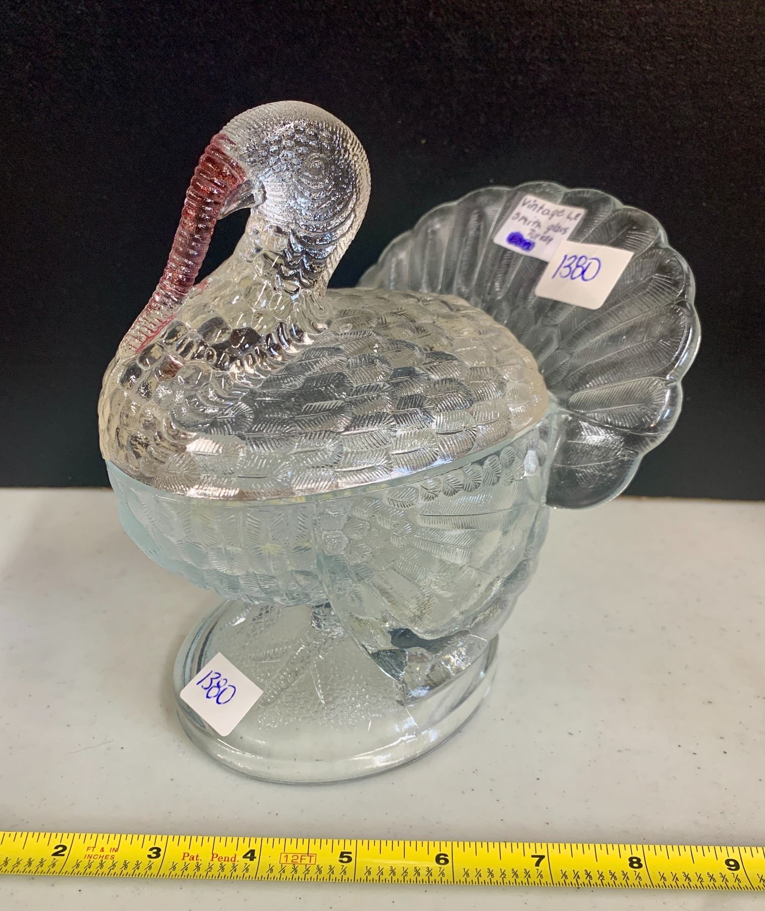 Vintage LE Smith 1940’s Clear Pressed Glass Lidded TURKEY