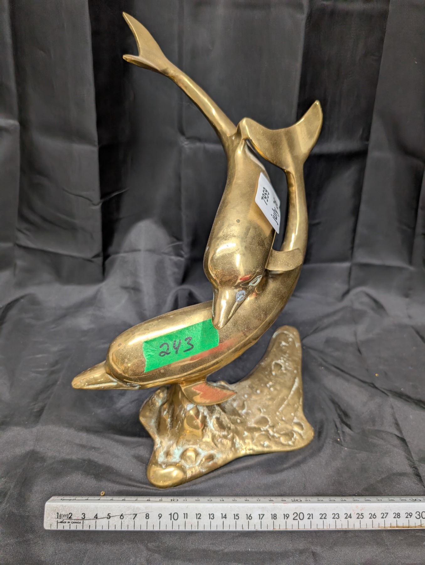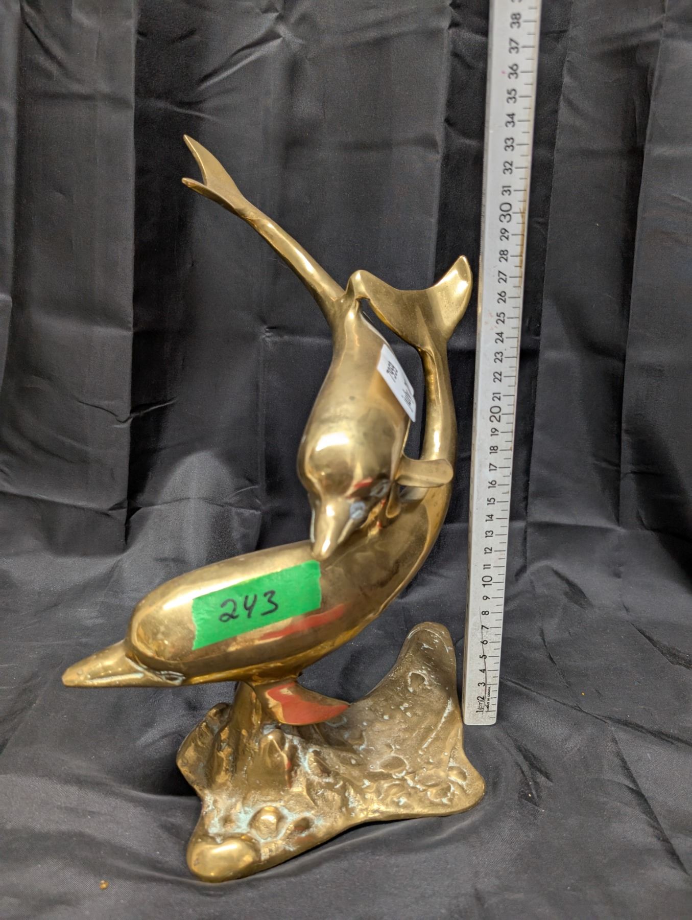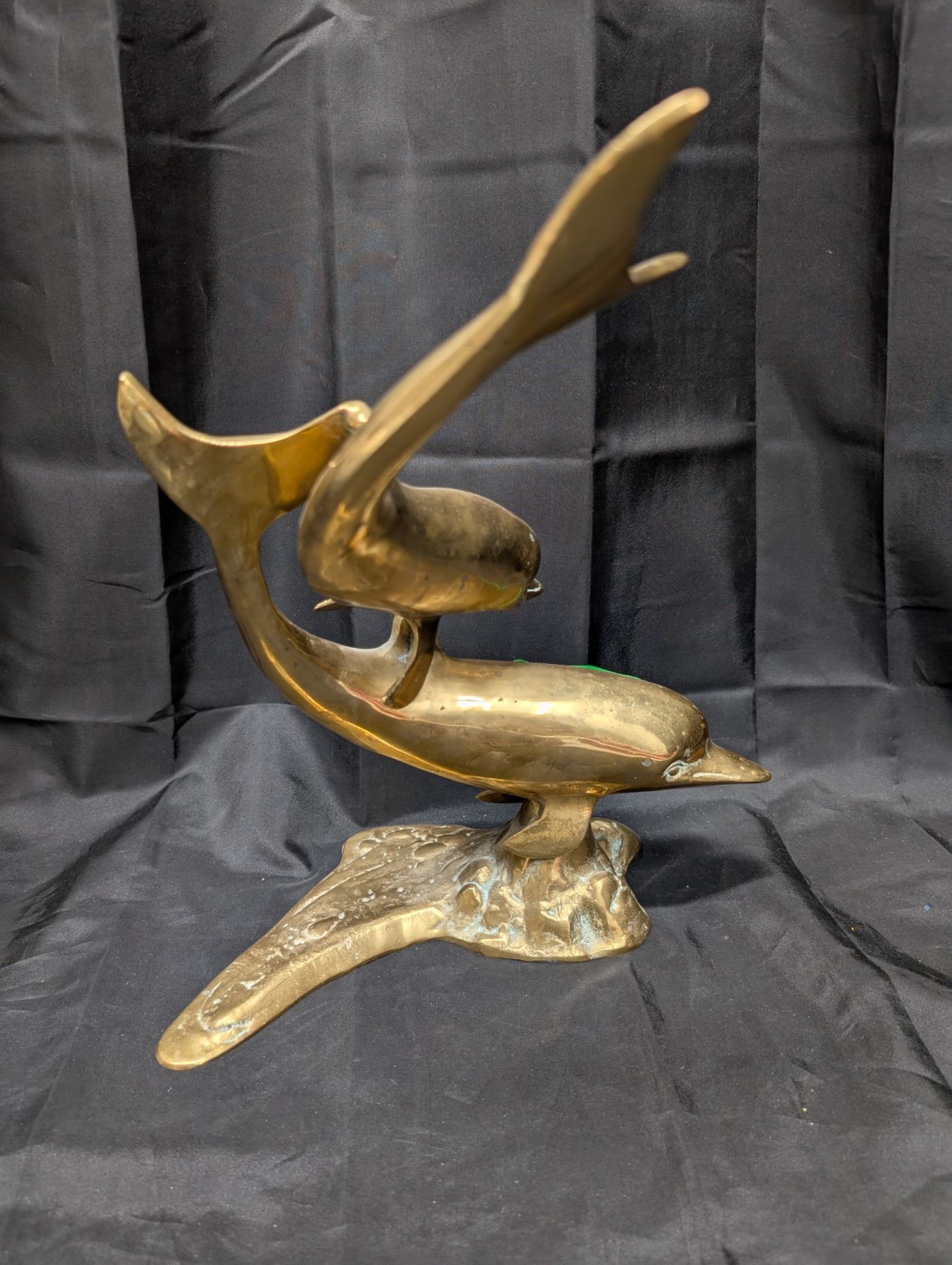 Vintage Large 14" Brass Dolphins Swimming Statue