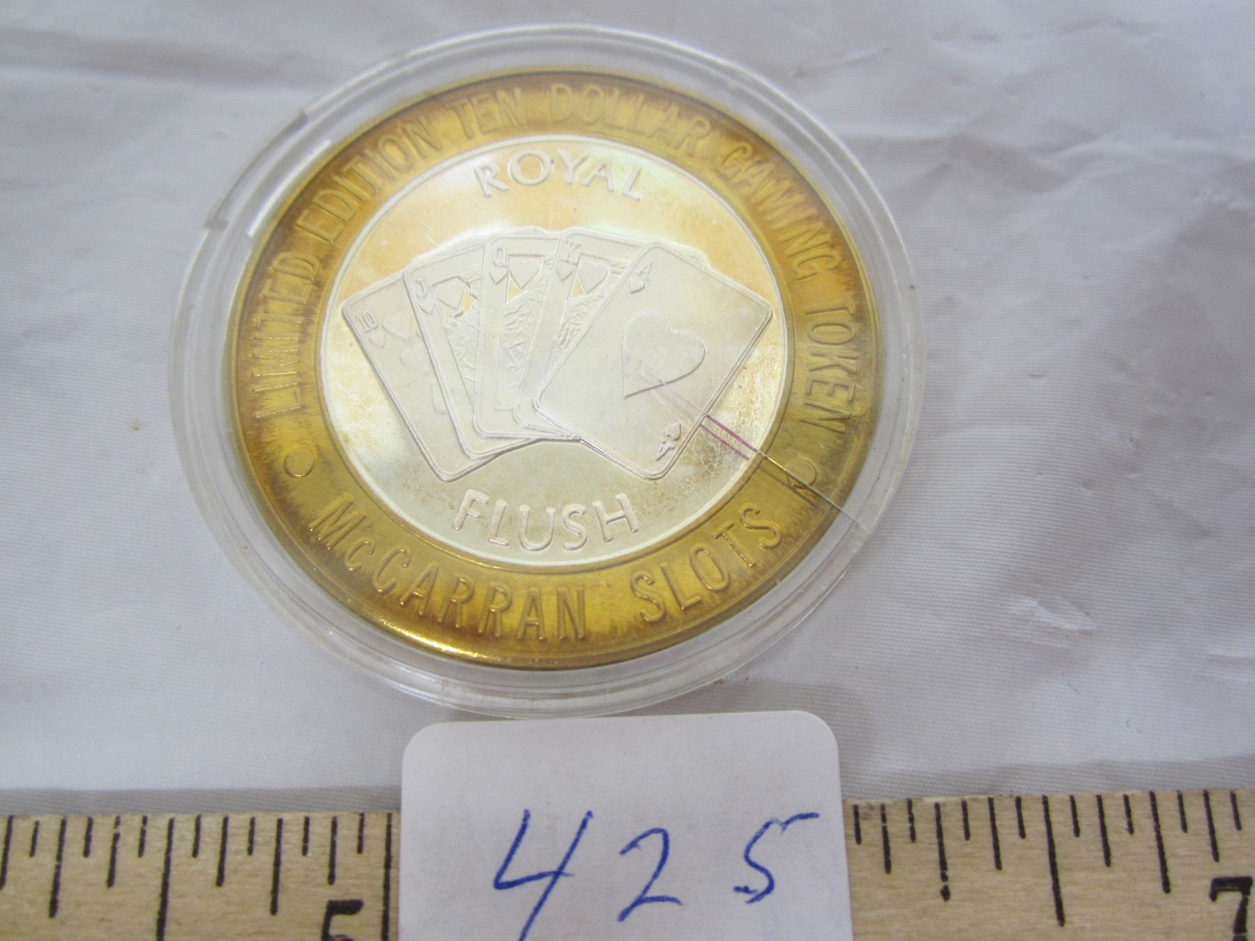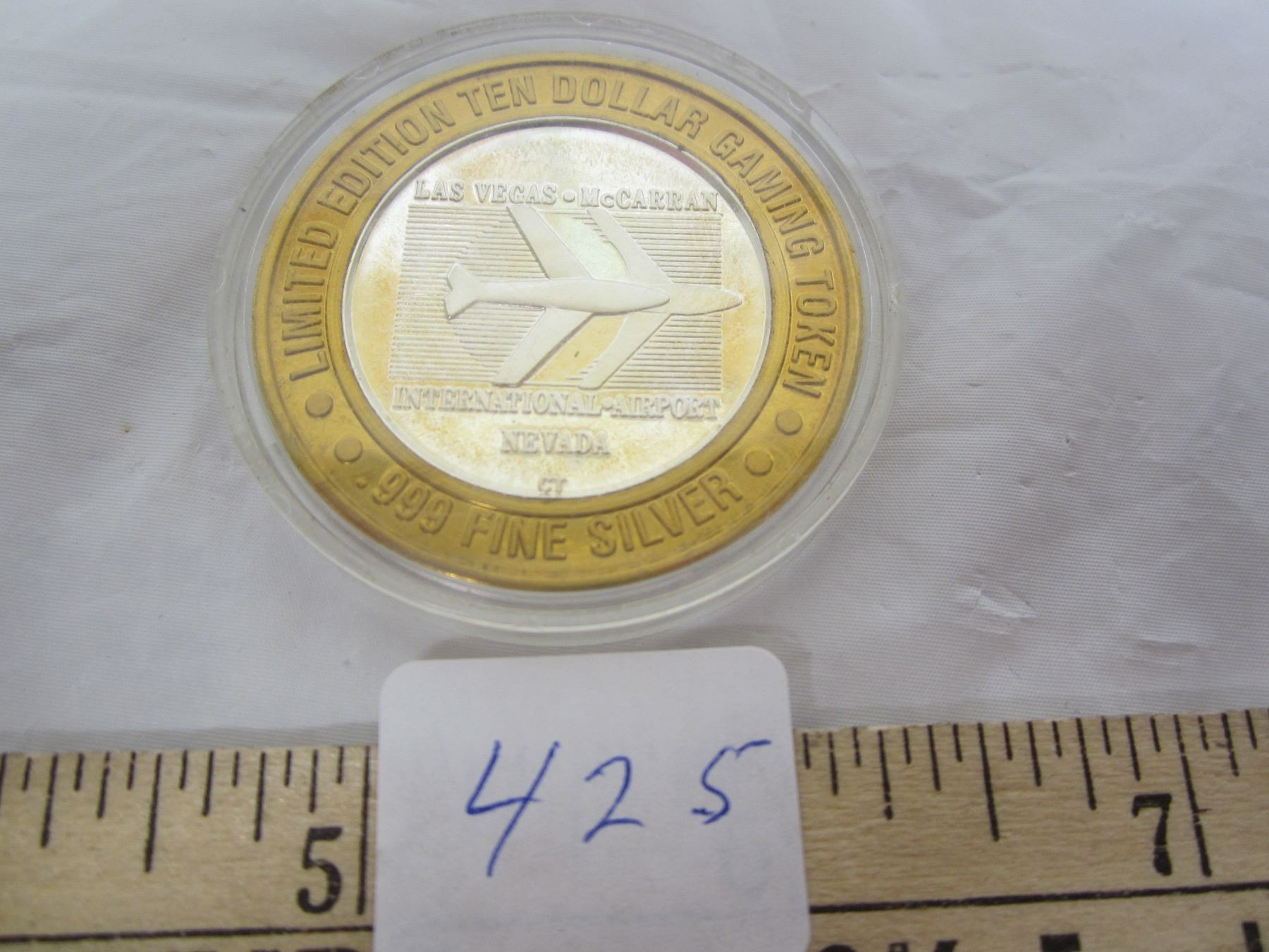 Vintage Las Vegas 10 Dollar Token 99.99 Silver Centre
