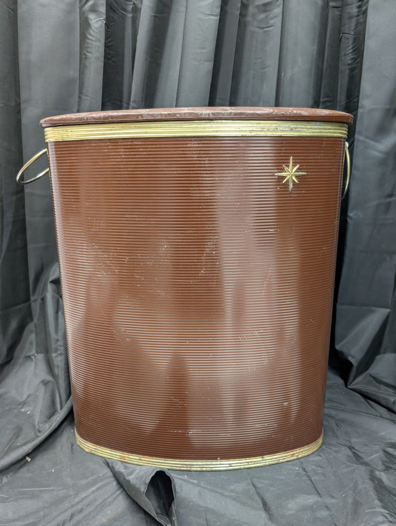 Vintage Laundry Hamper Vinyl, Metal, with Lid 25" Tall