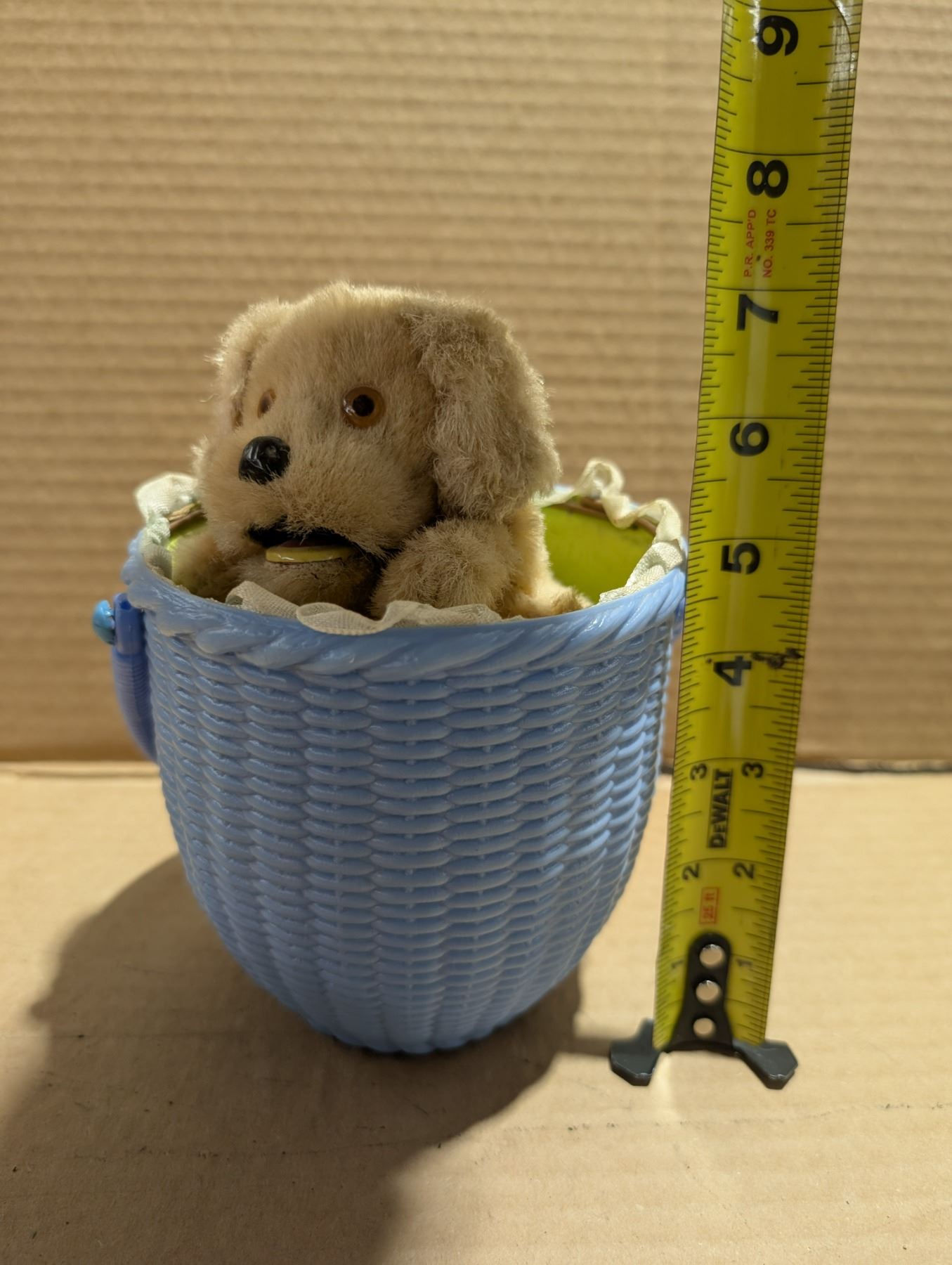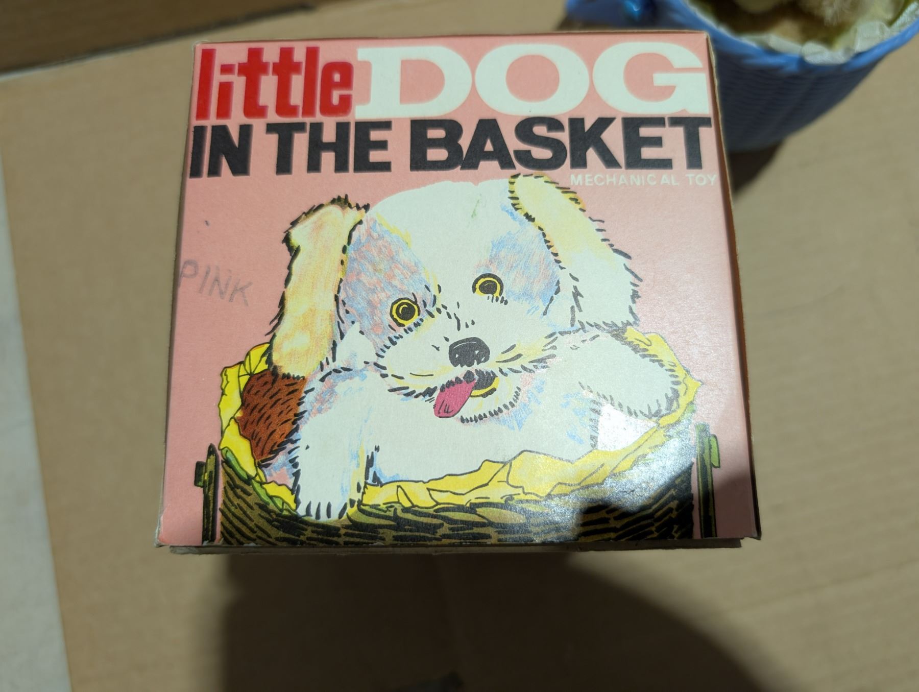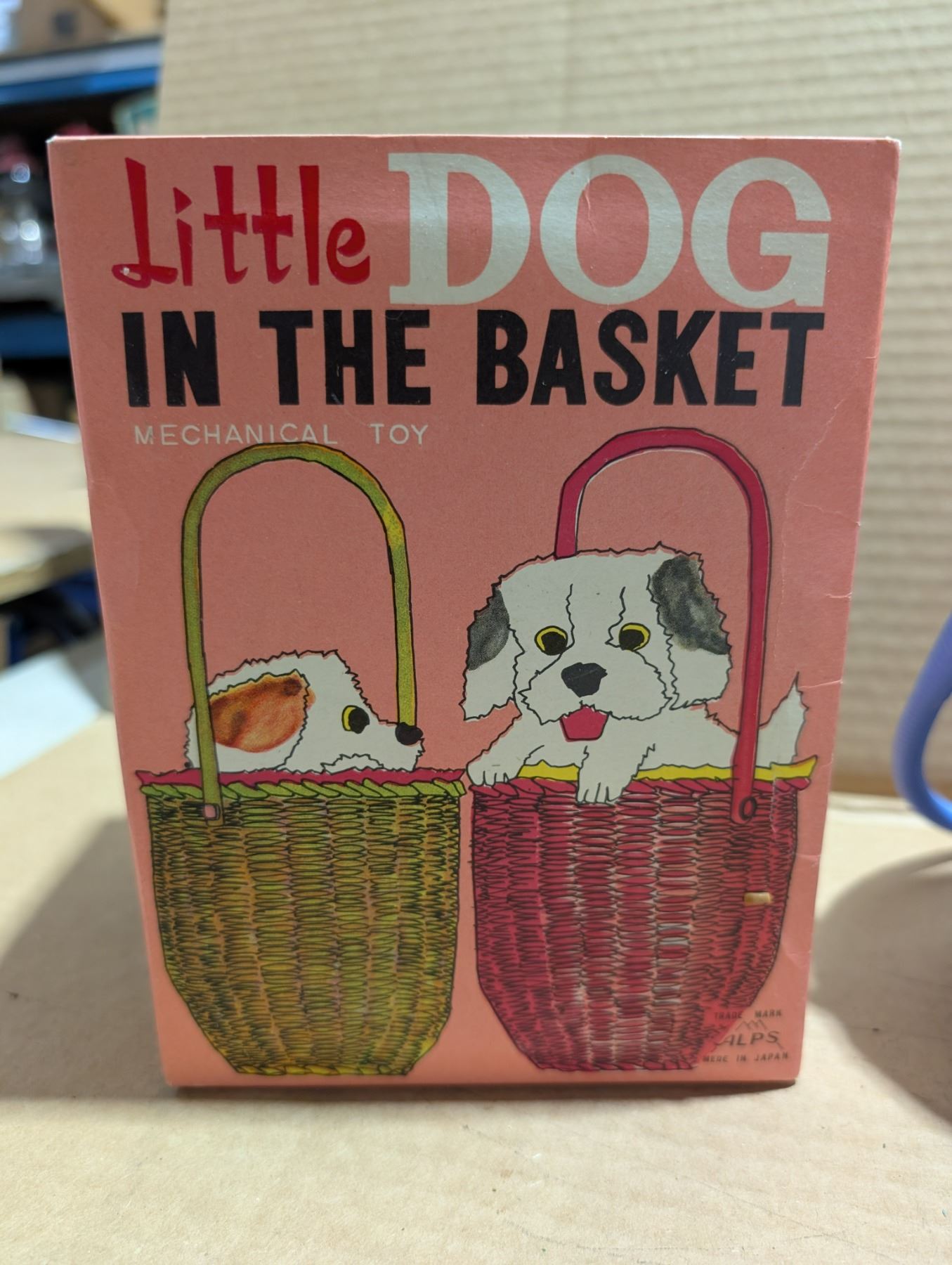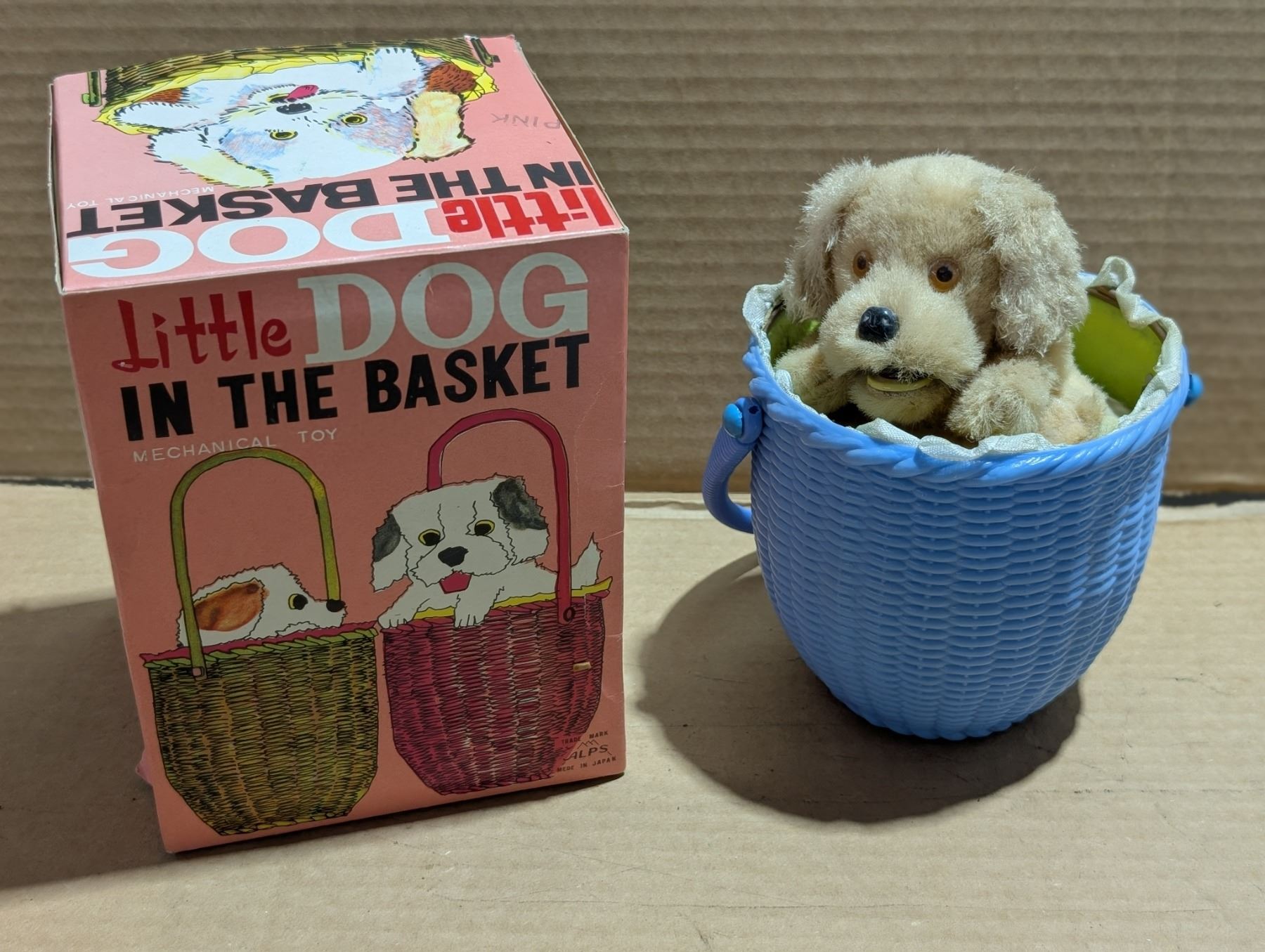 Vintage "Little Dog in Basket" Mechanical toy W/ Original Box (Works)