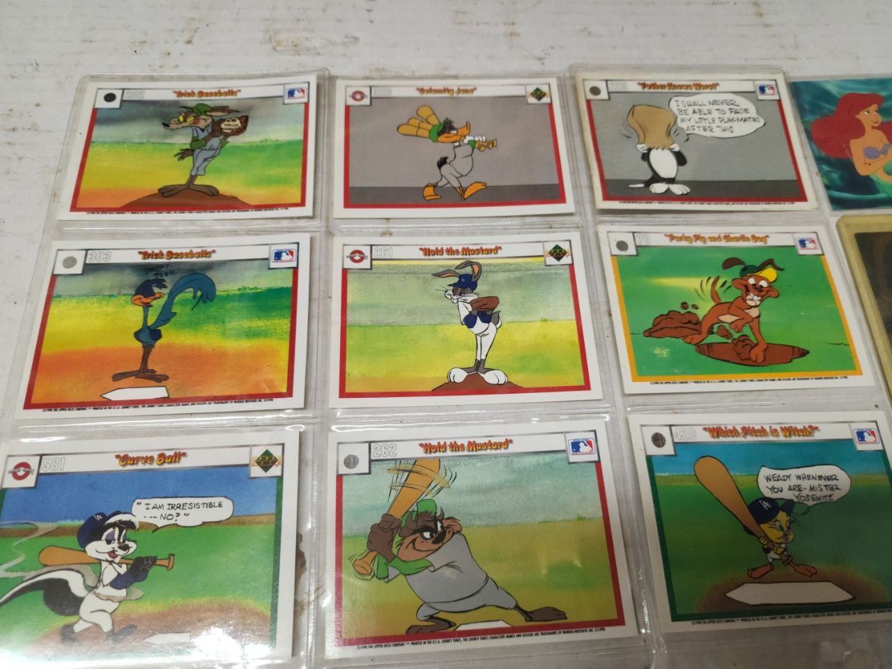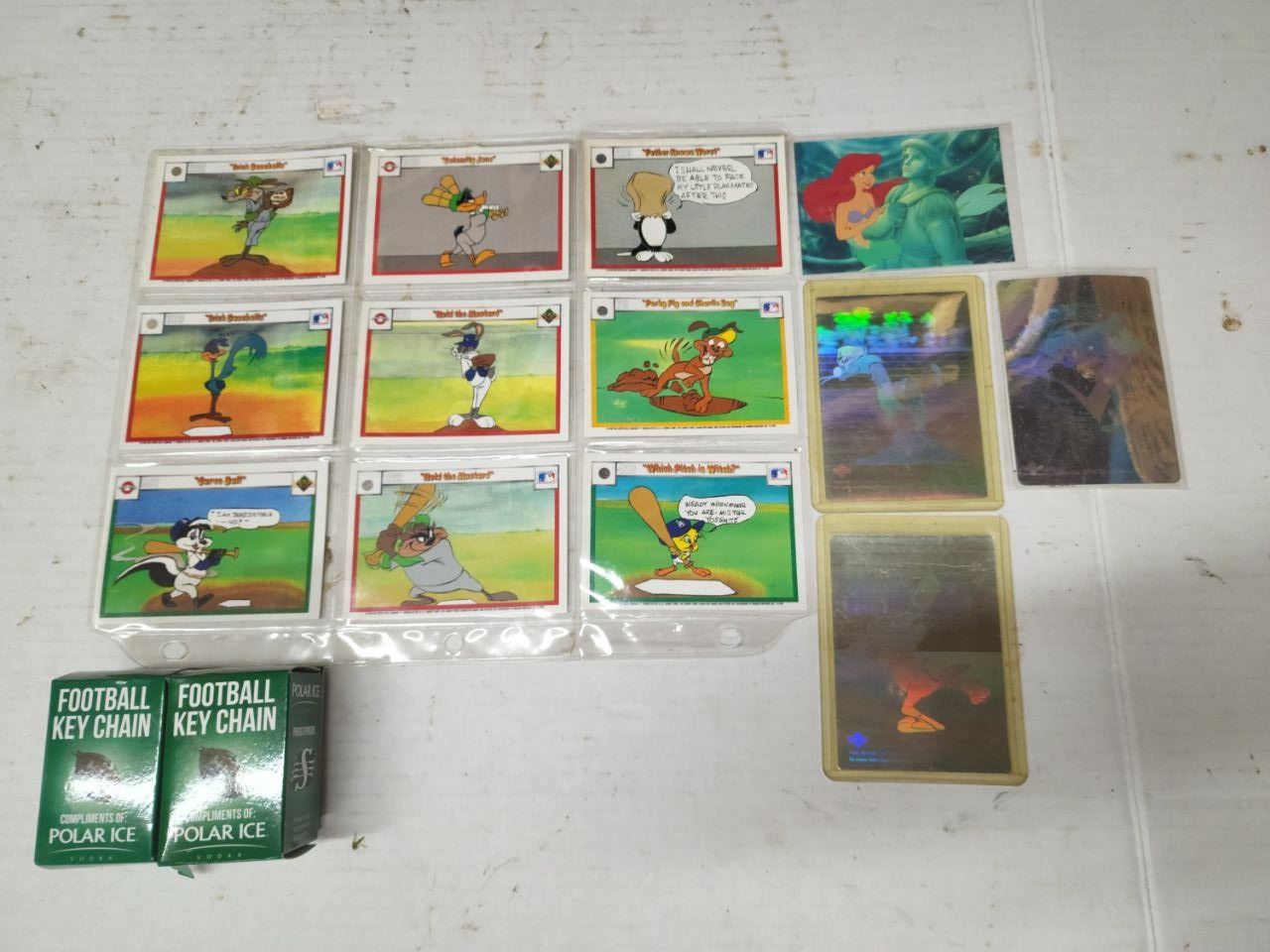 Vintage "Looney Tunes" Baseball cards, Football keychains and Little Mermaid card