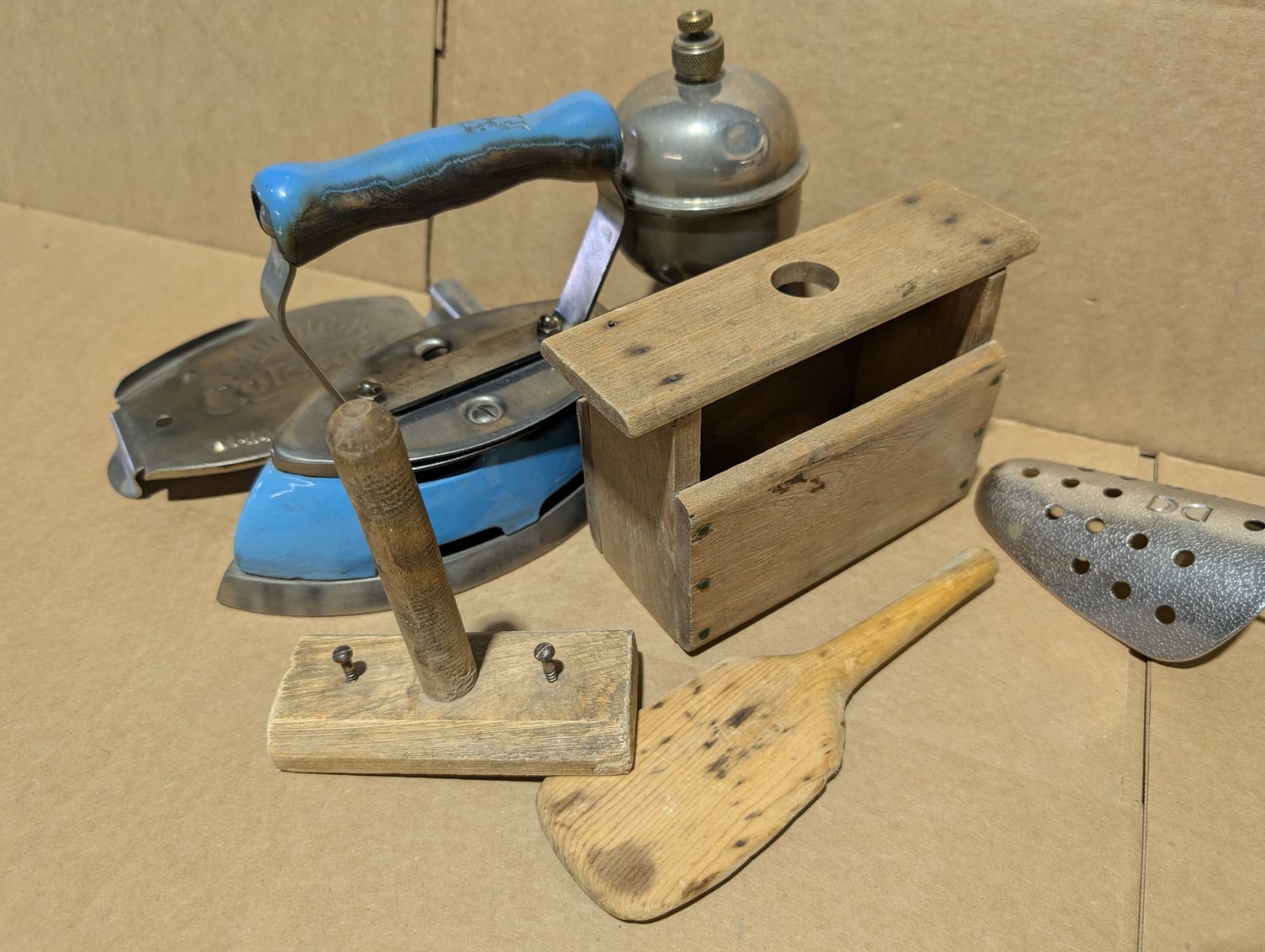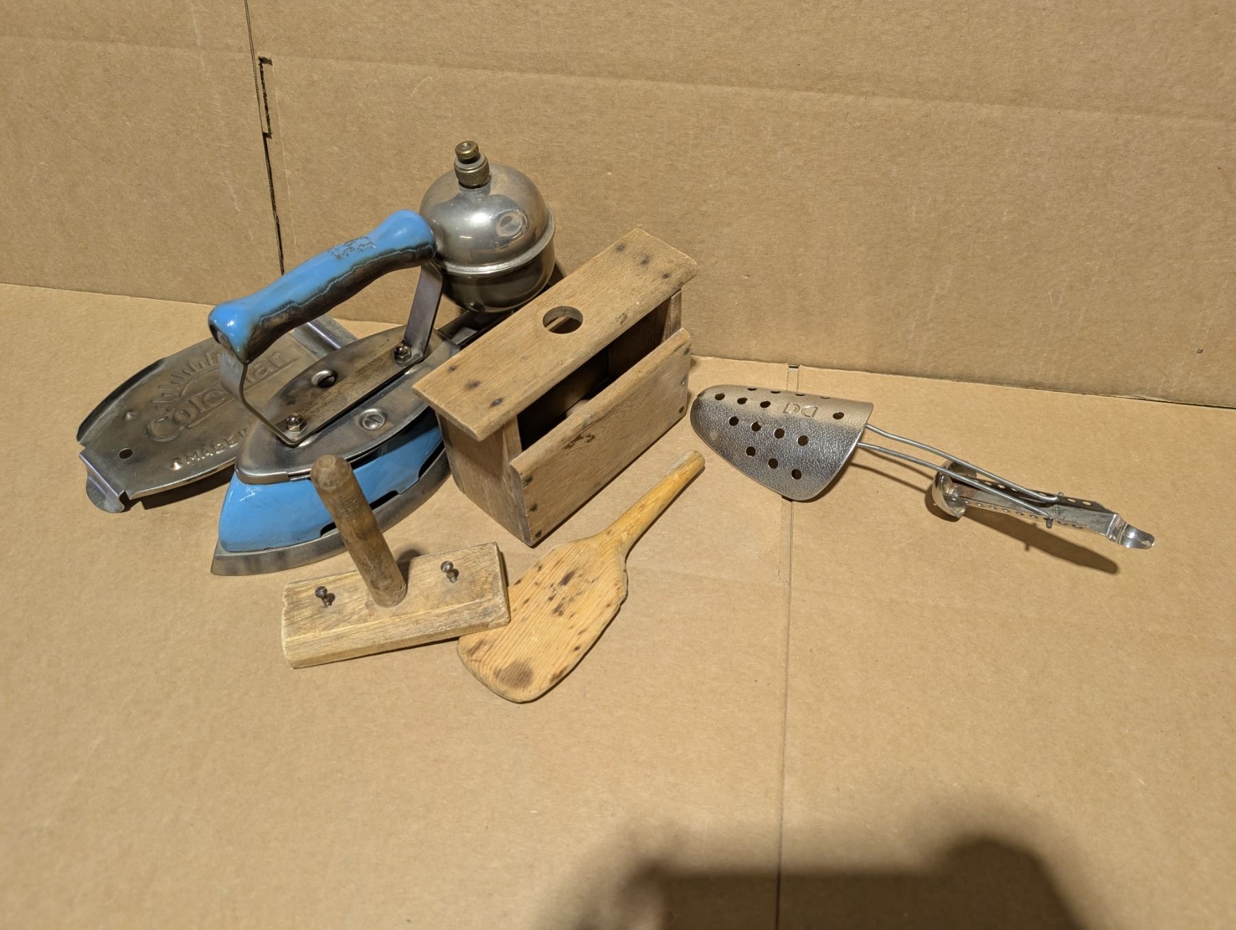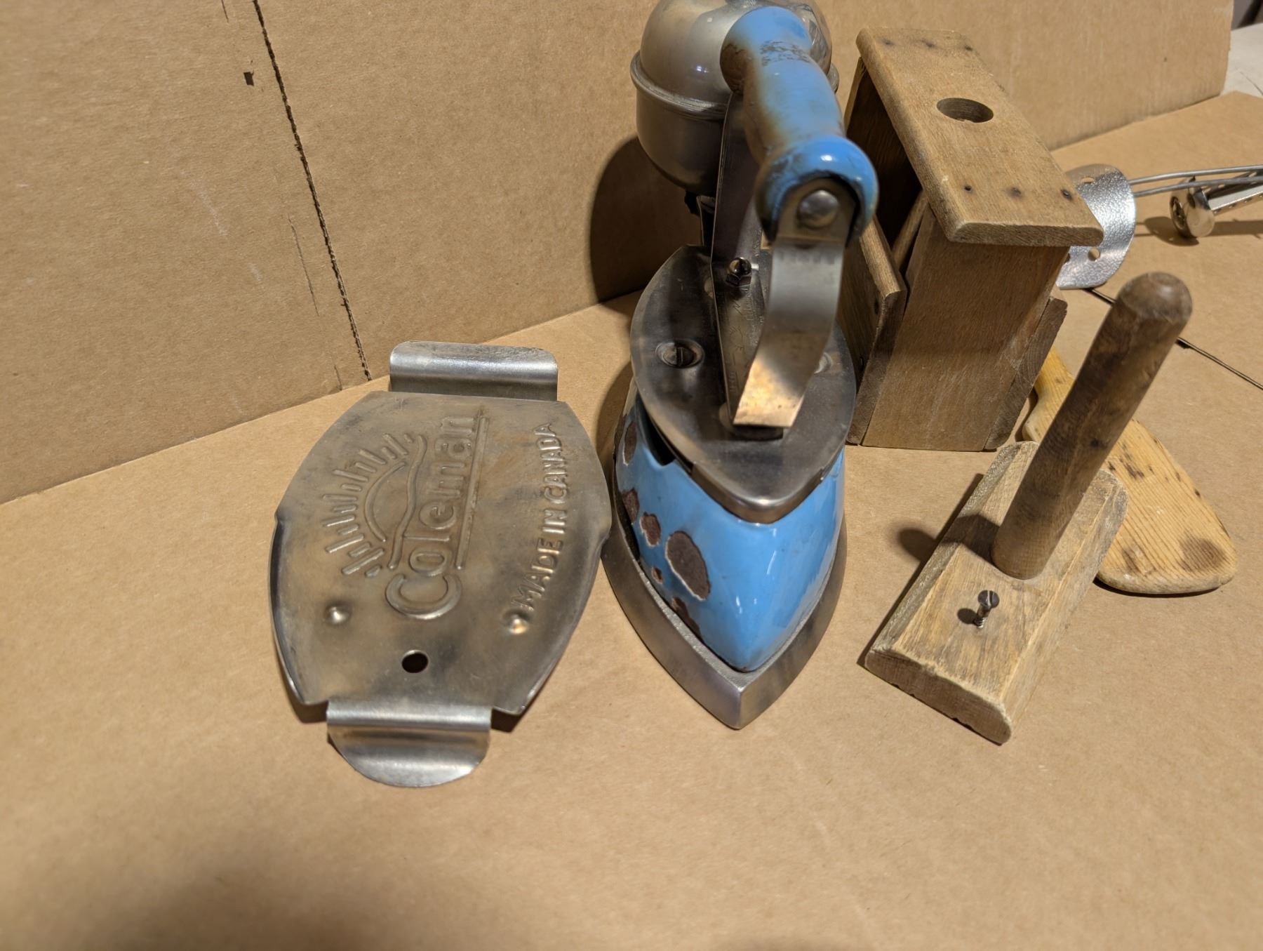 Vintage Lot (Vintage Coleman, Iron, Vintage Wood Items, and etc.)