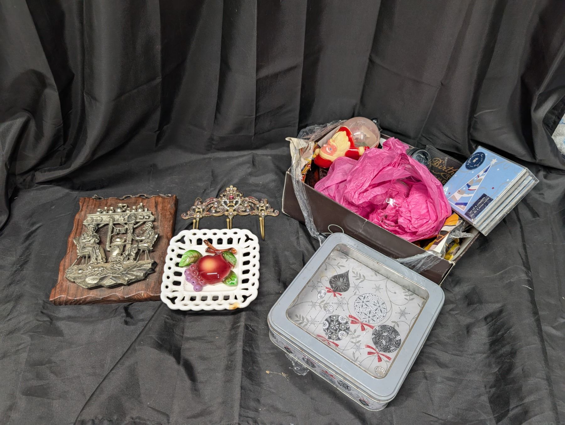 Vintage MCM Wood Wall Hanging Metal Hanger Plastic Man and woman and etc. Decor and mics.