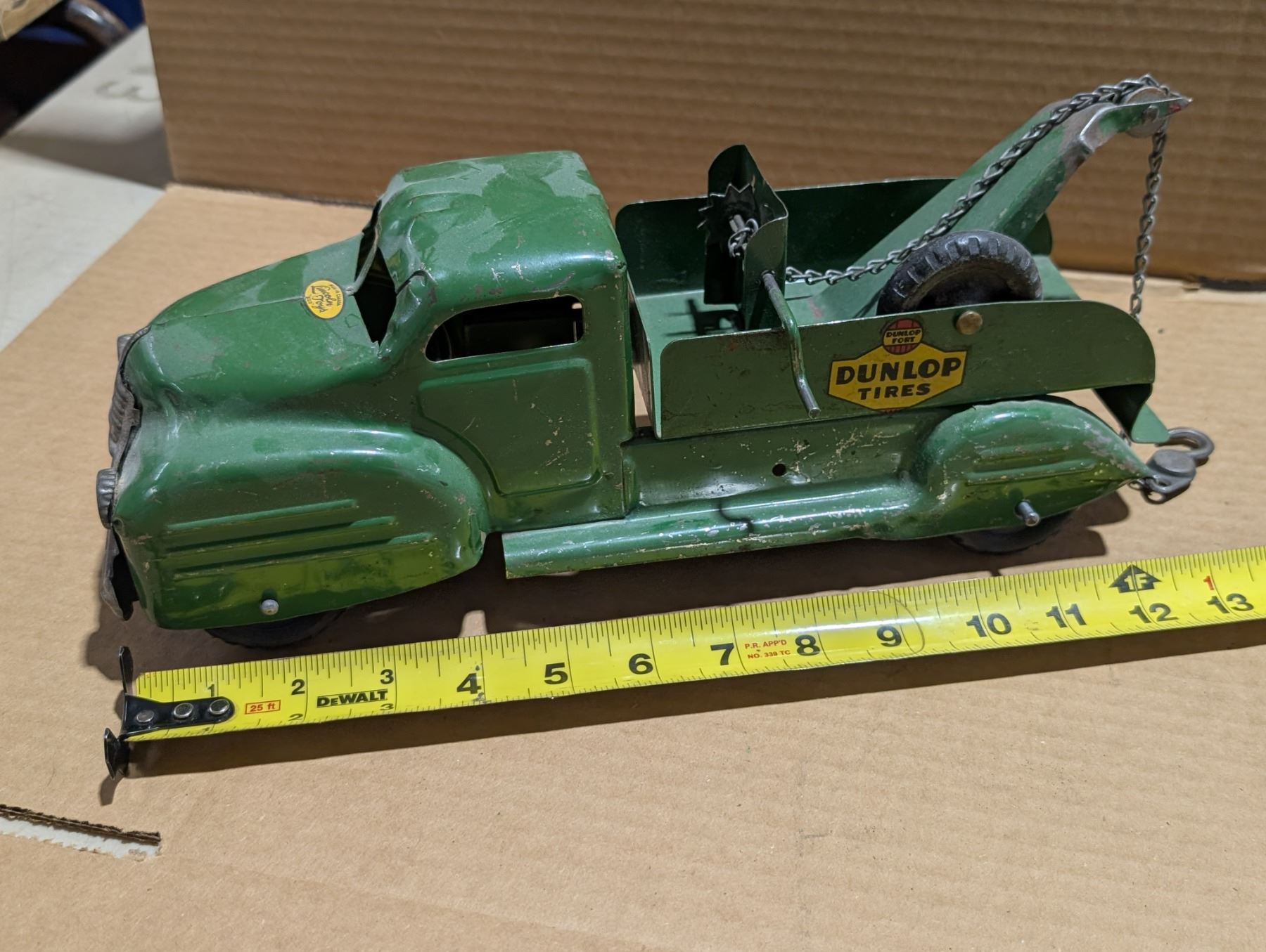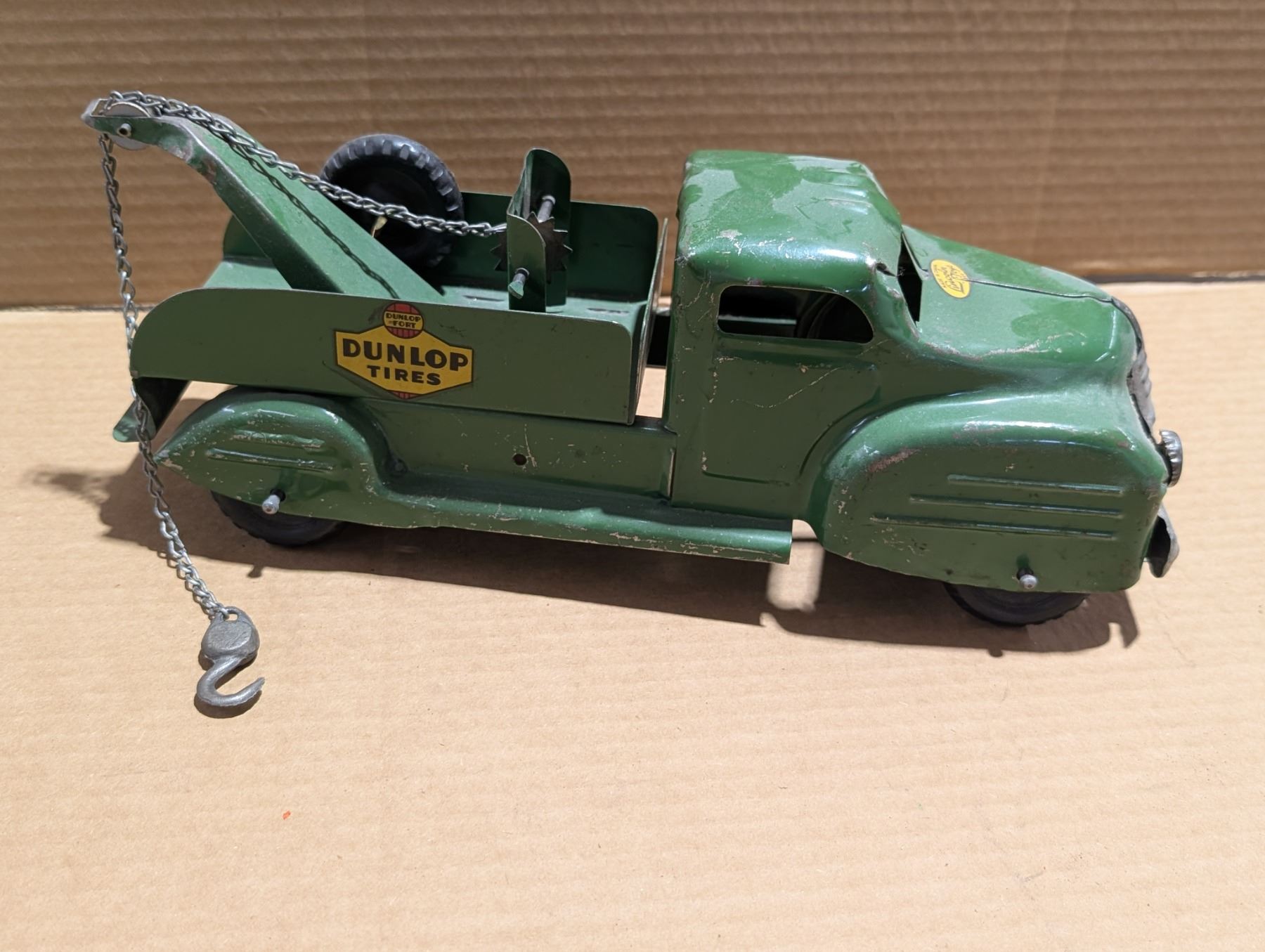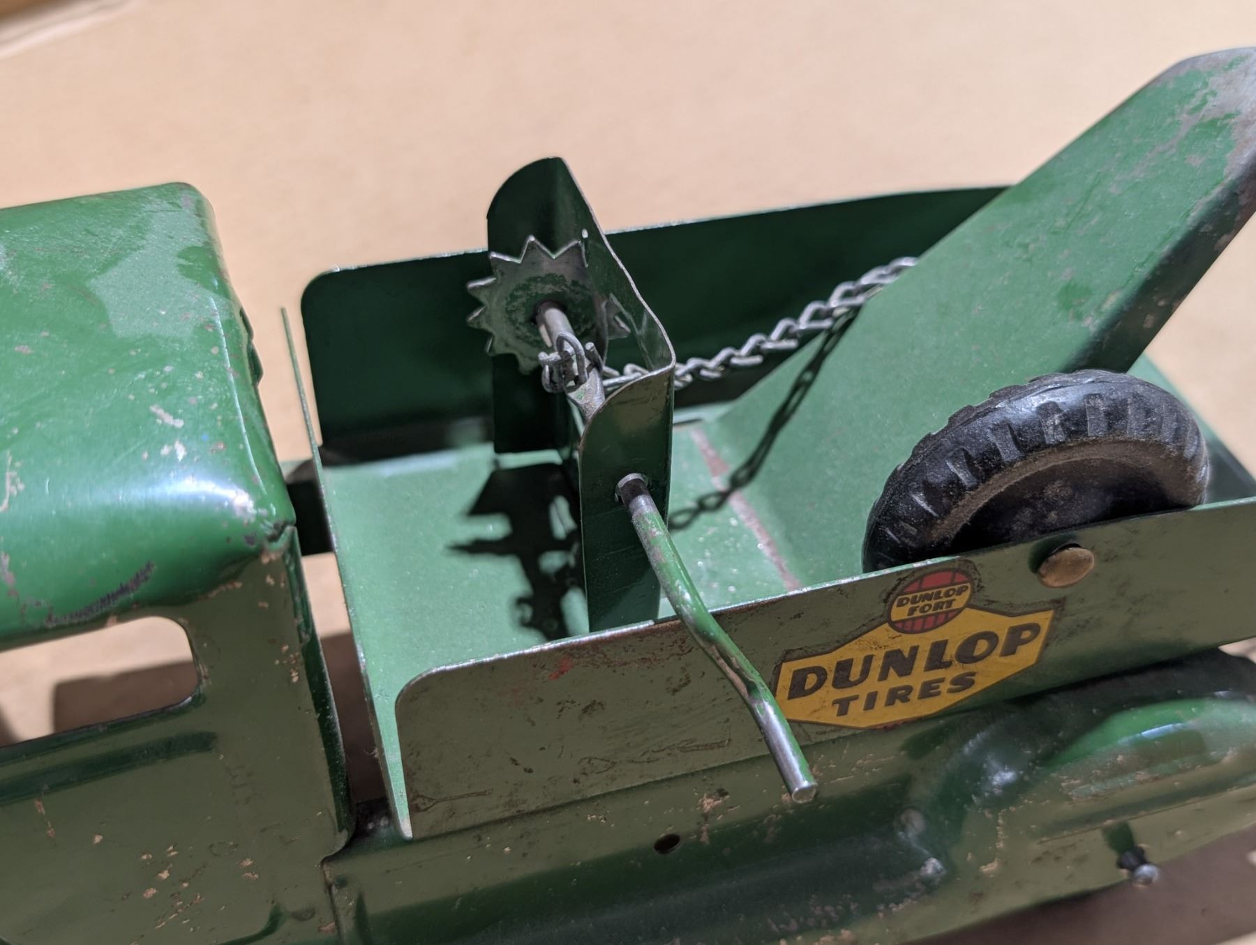 Vintage Made in Canada/Lincoln Toys/Dunlop Tires Tow Truck w/ Hand Crank Chain