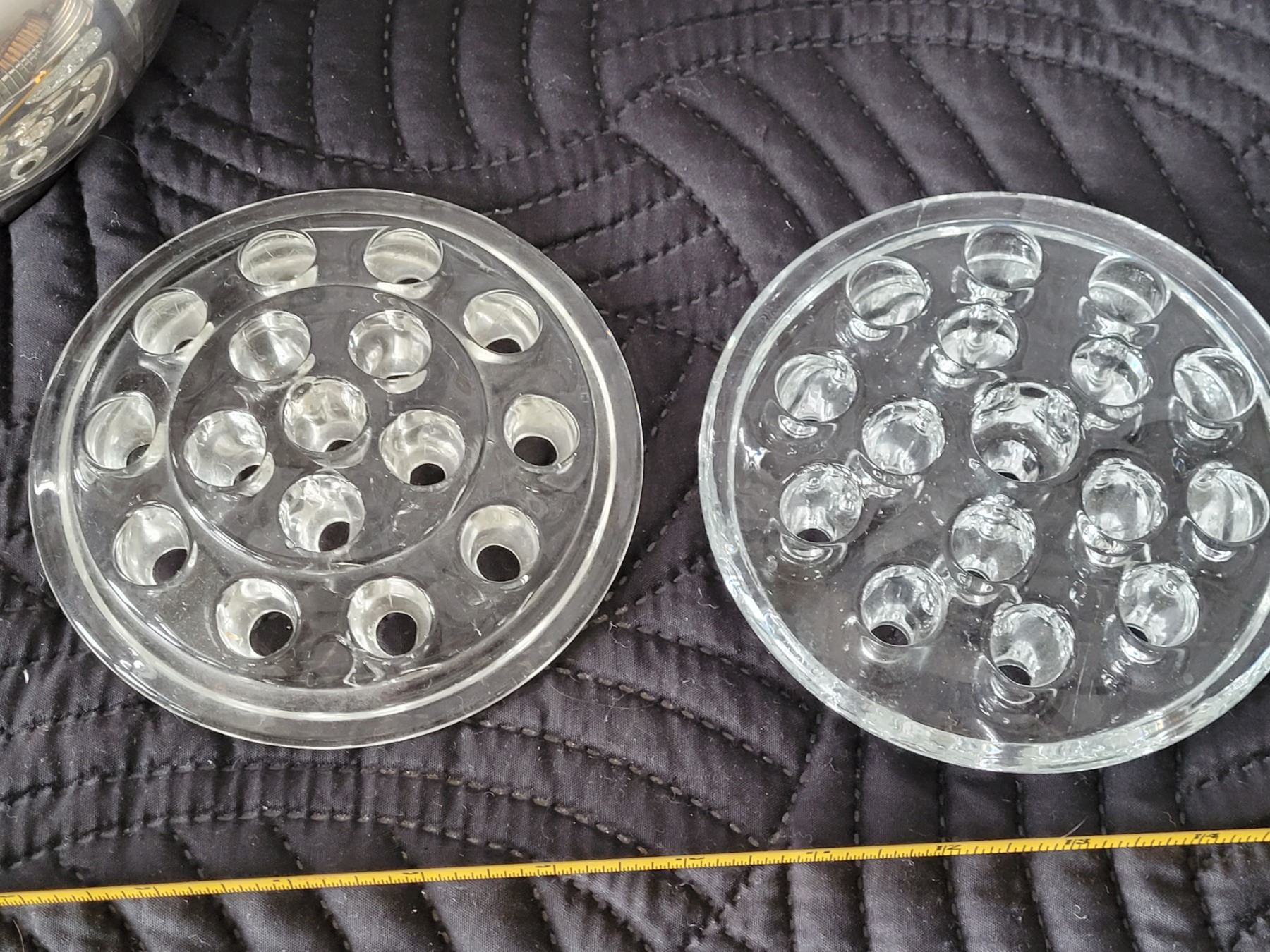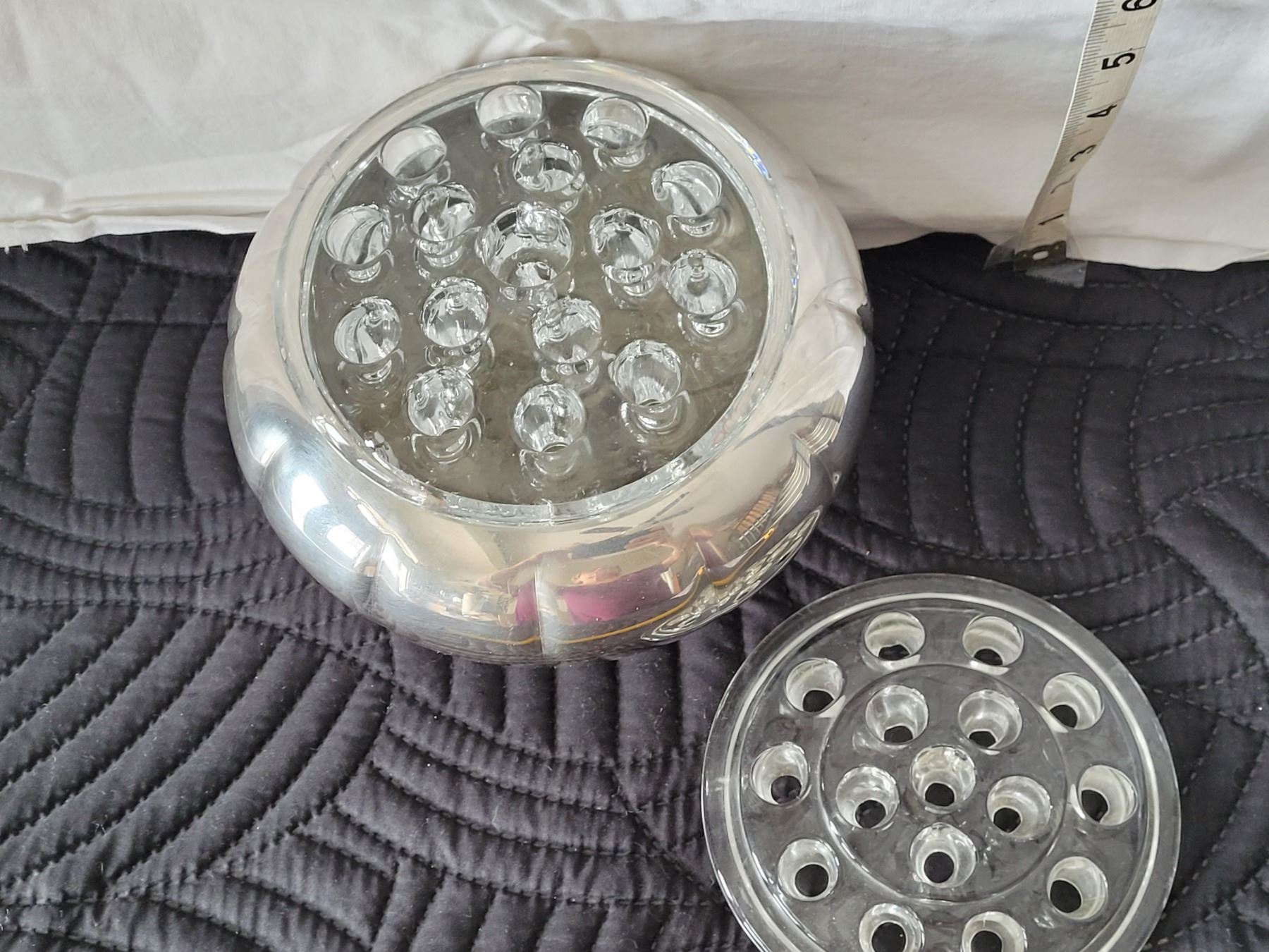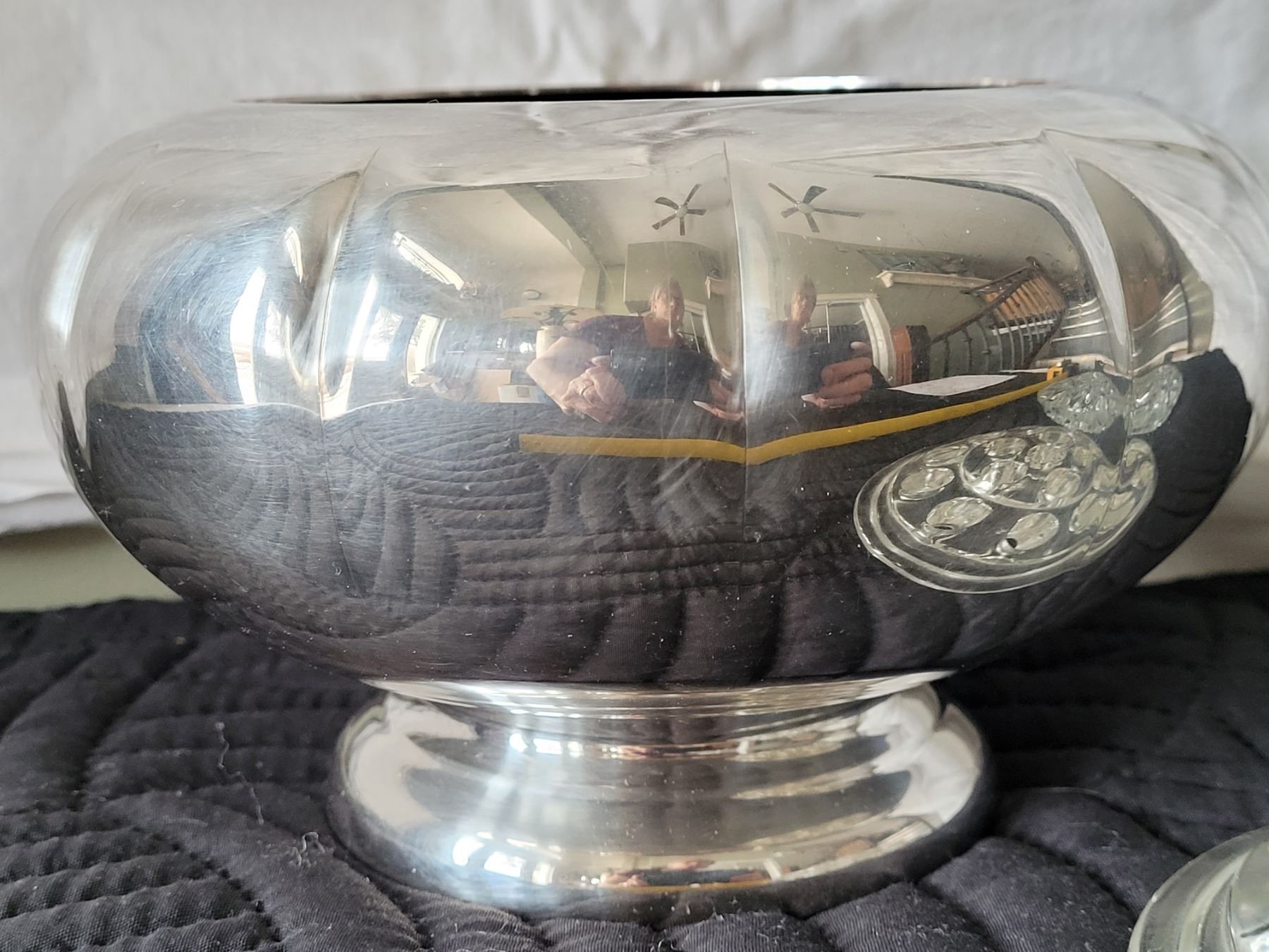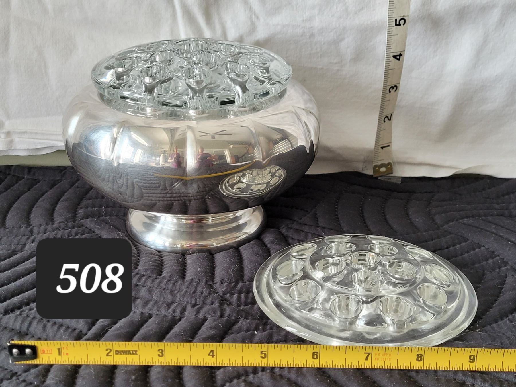 Vintage Marlboro silver plate copper bowl (Canada) & 3 flower frogs.