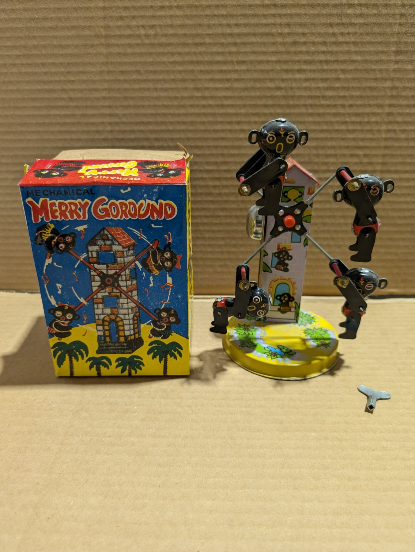 Vintage Mechanical Merry Go Round w/ Original Box (Works)