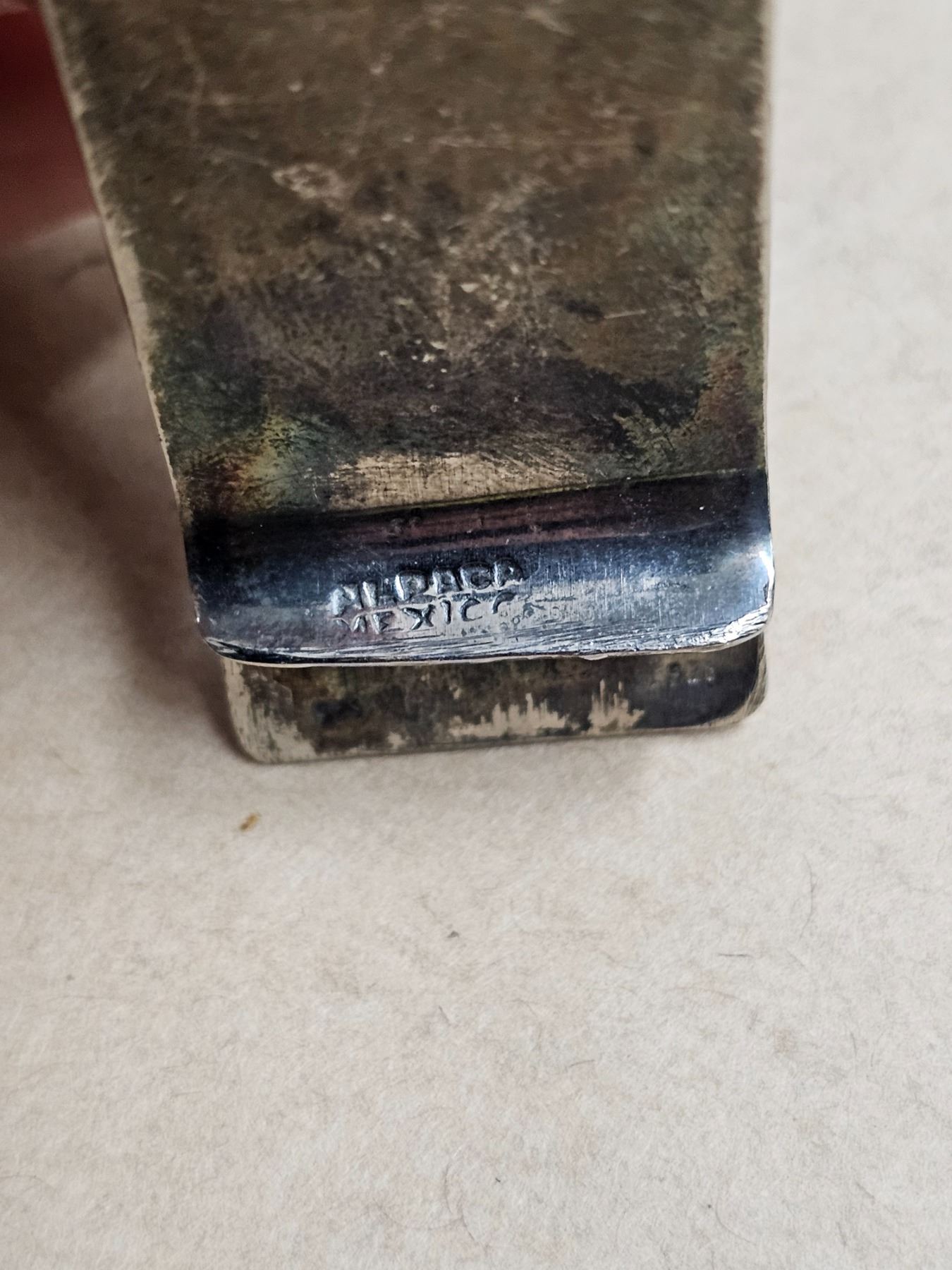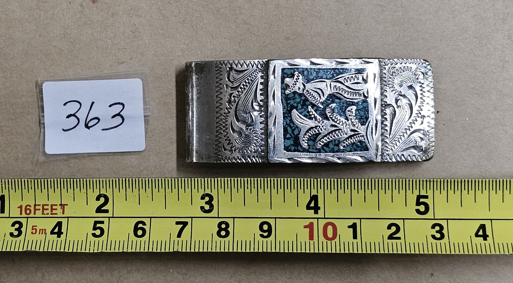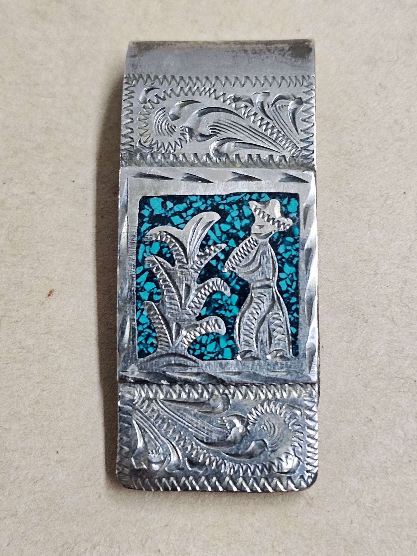 Vintage Mexico money clip - Alpaca, inlaid torquoise