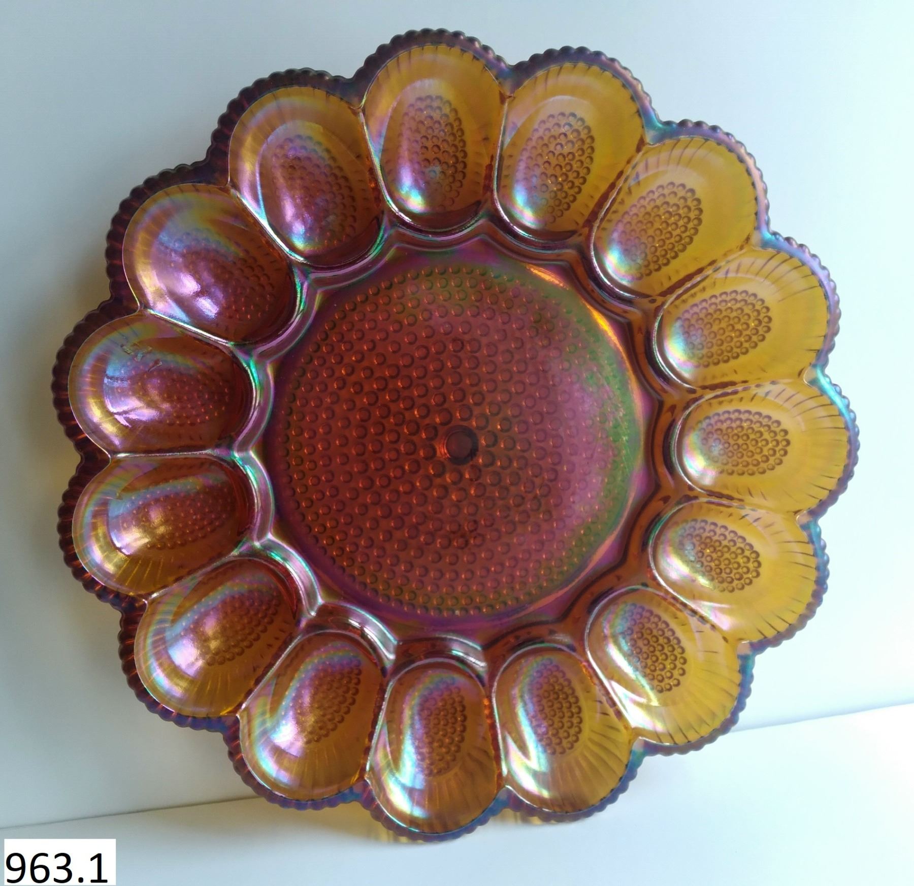 Vintage Mid-Century Modern Indiana Glass Carnival Amber Deviled Egg Plate, no chips or cracks