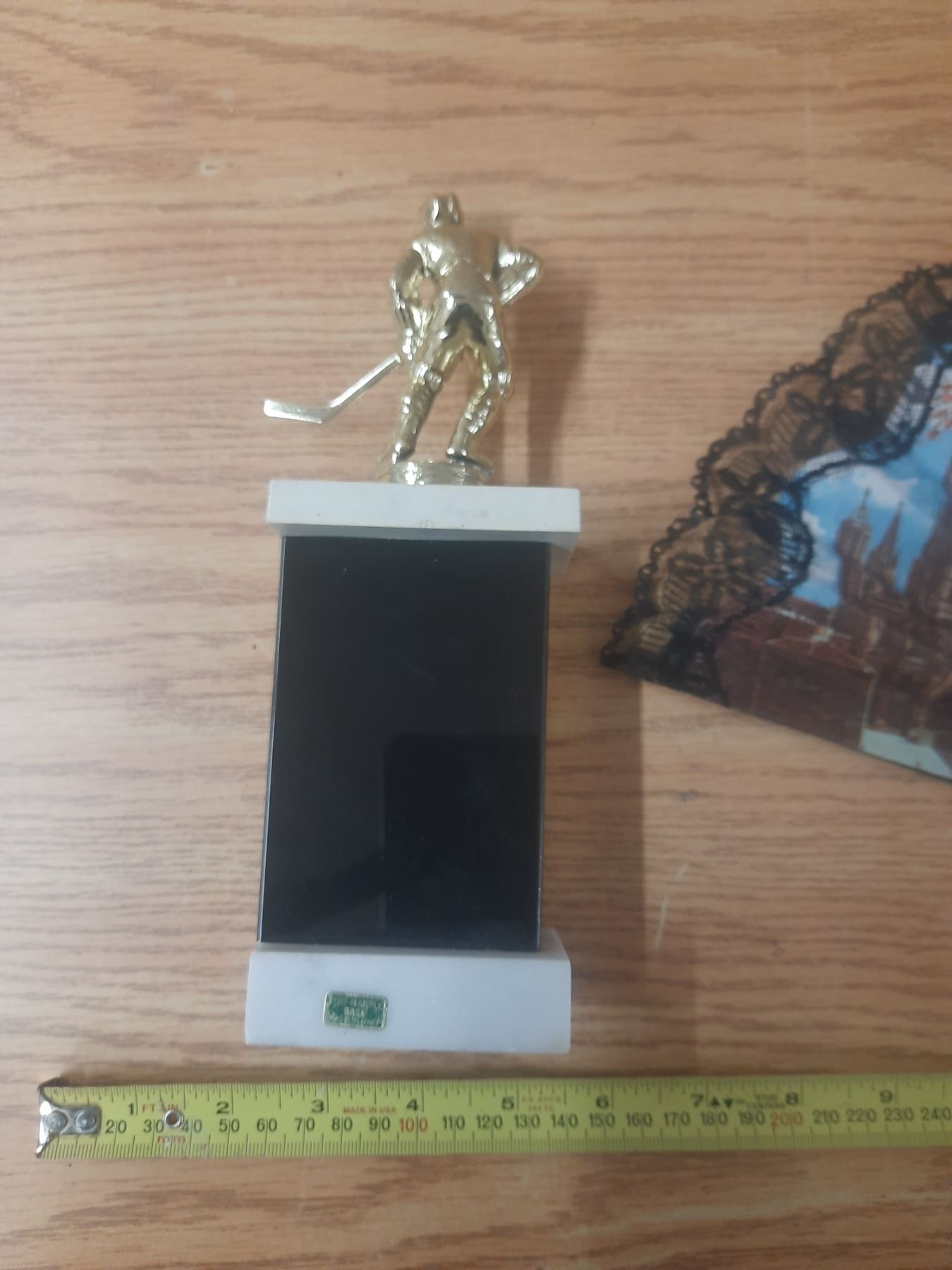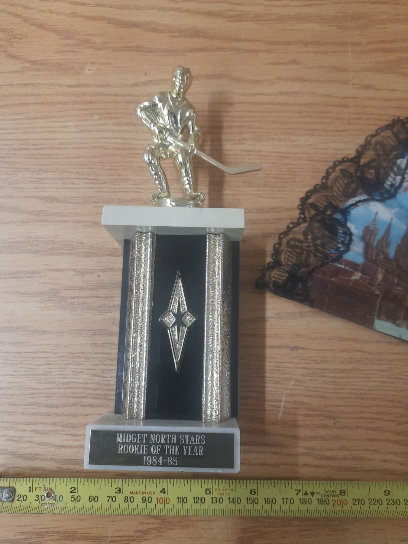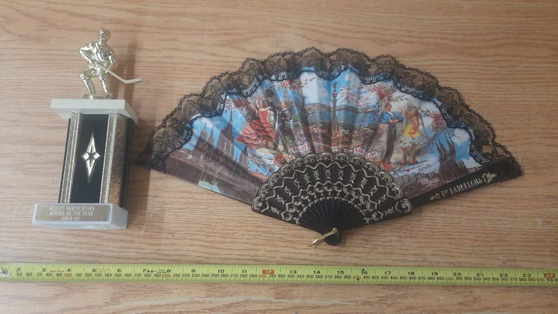 Vintage Midget North Stars Rookie of the Year Hockey Trophy and Vintage Spanish Hand Fan.