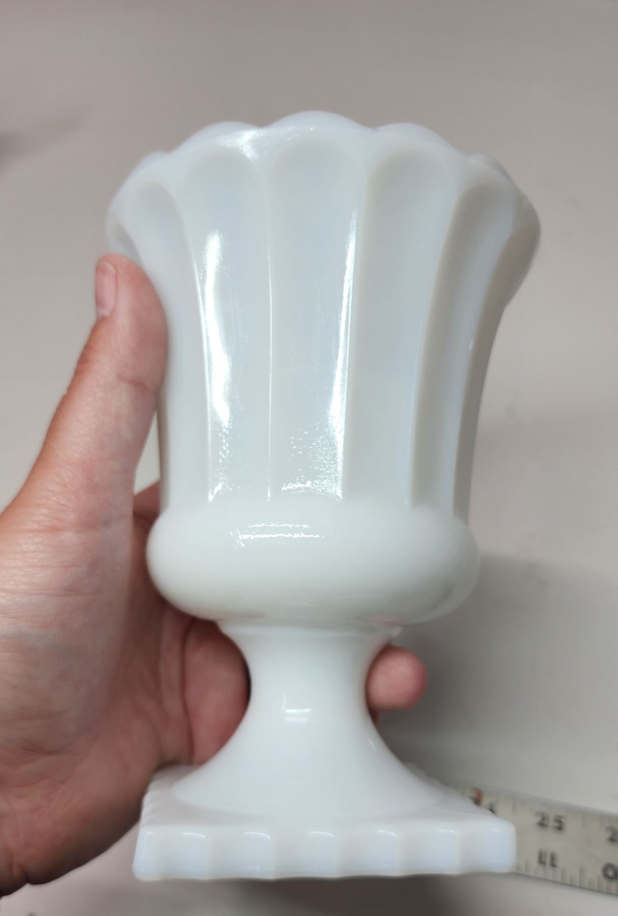Vintage Milk Glass Pedestal Compote - Fluted 1950's Pristine