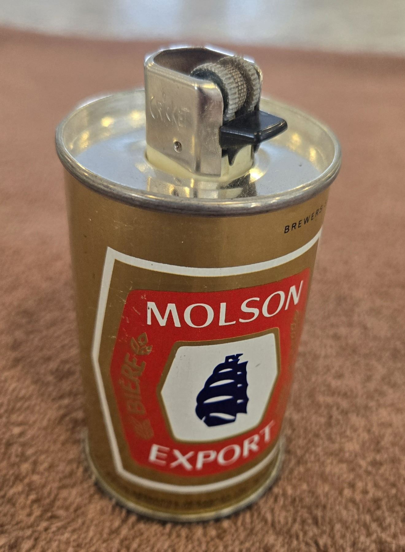 Vintage Molson Export beer can lighter from the 1970s. 3 1/2" tall. Great condition.
