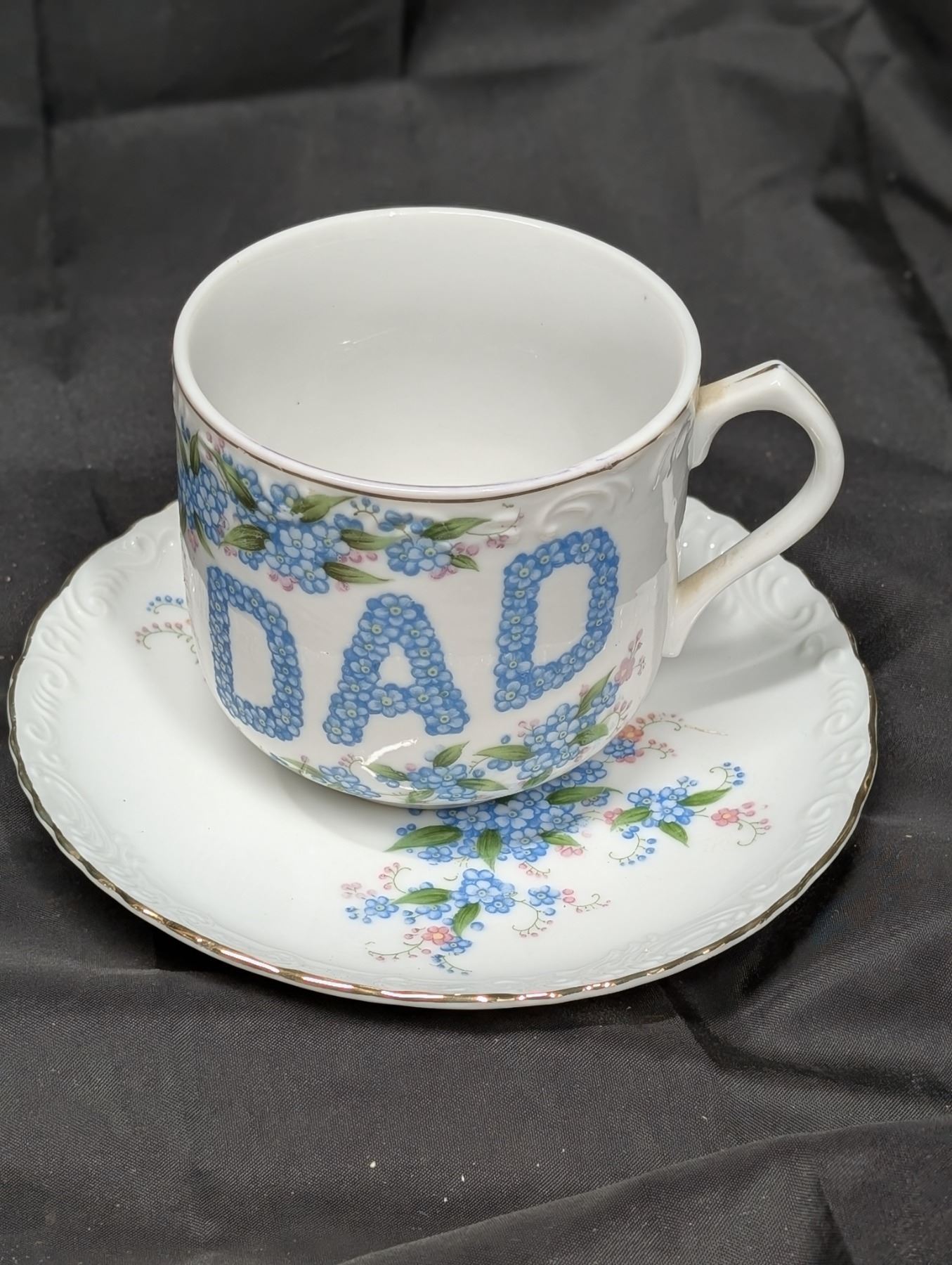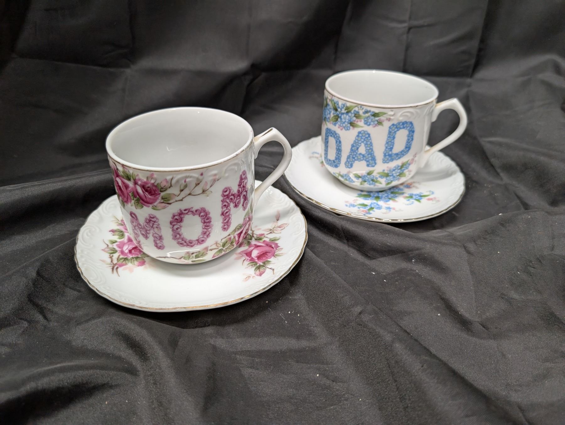 Vintage "Mom" and "Dad" Lefton Franz Anton Royal Cup and Saucer
